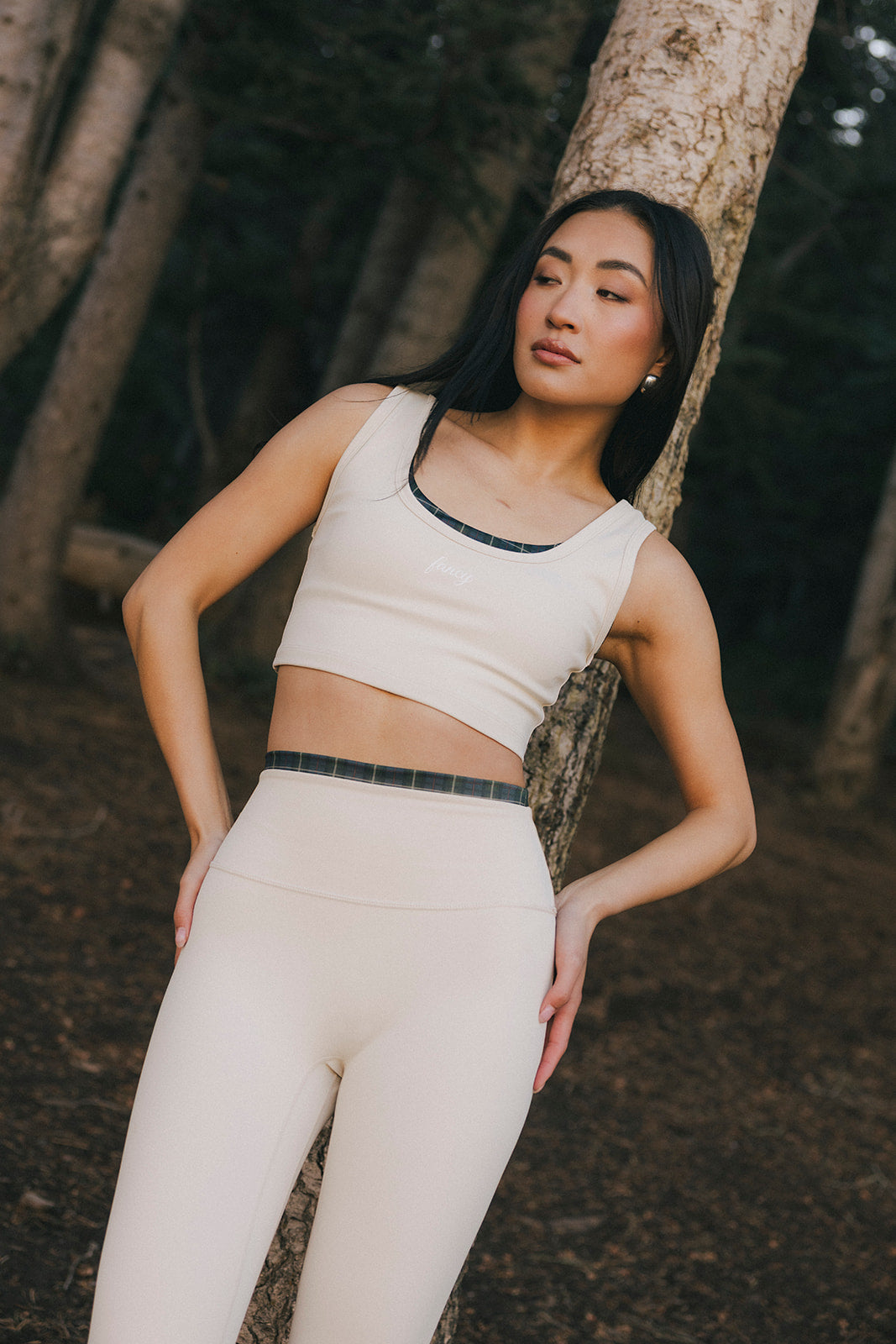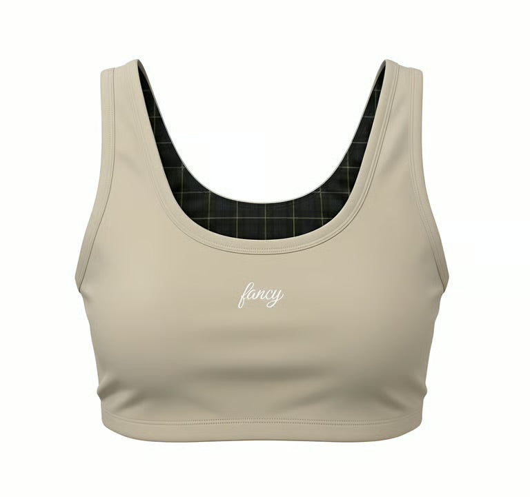 Fancy FitFlow Performance Bra Top - Cream/Plaid