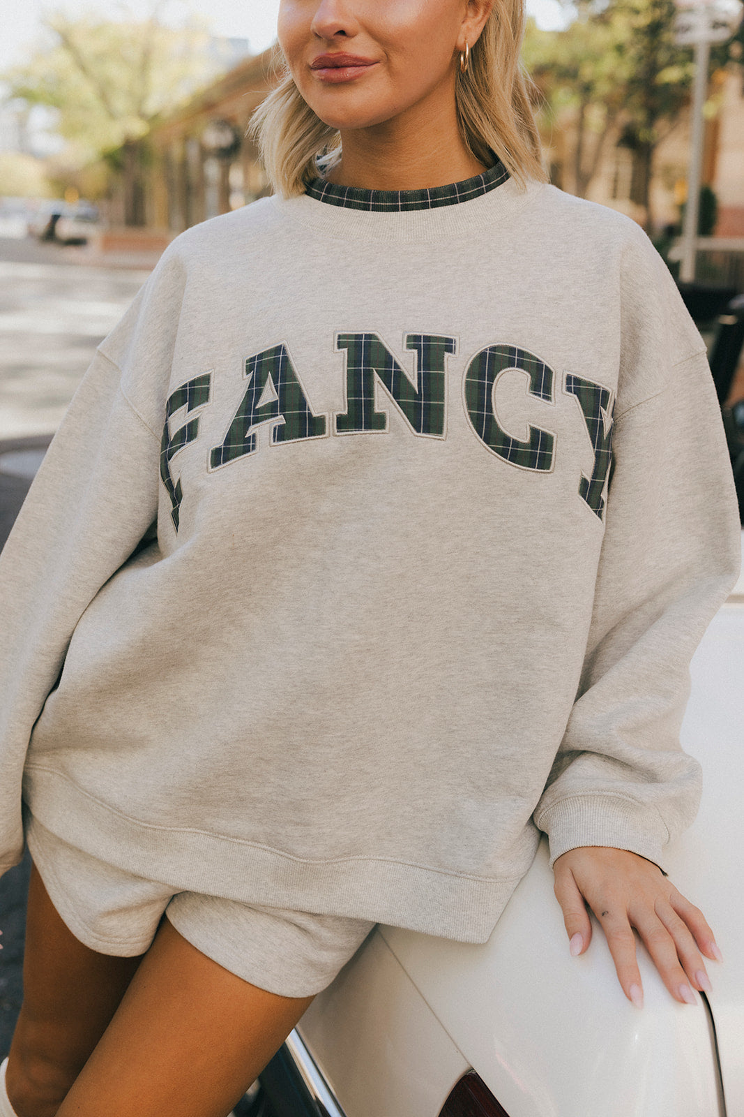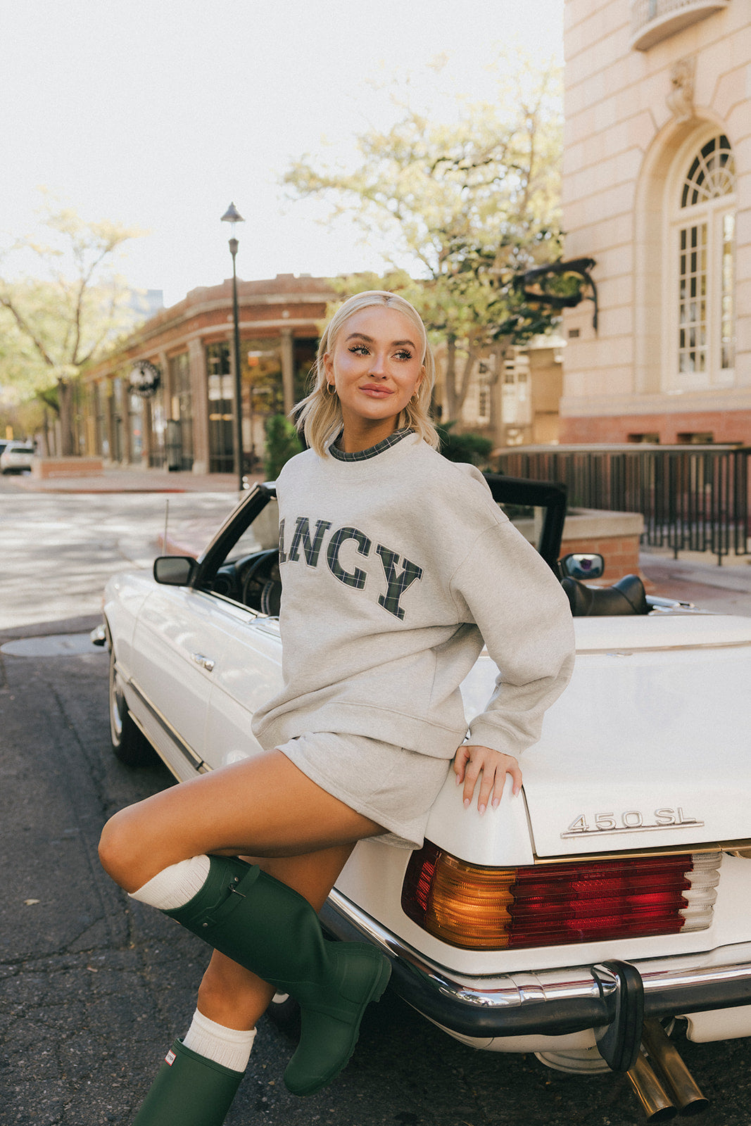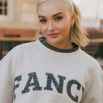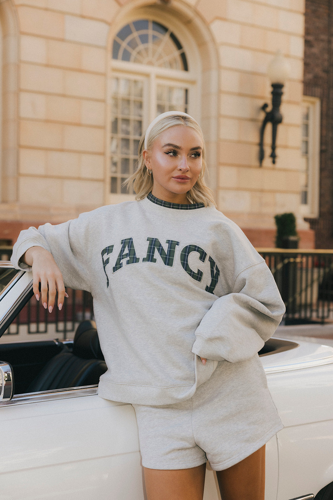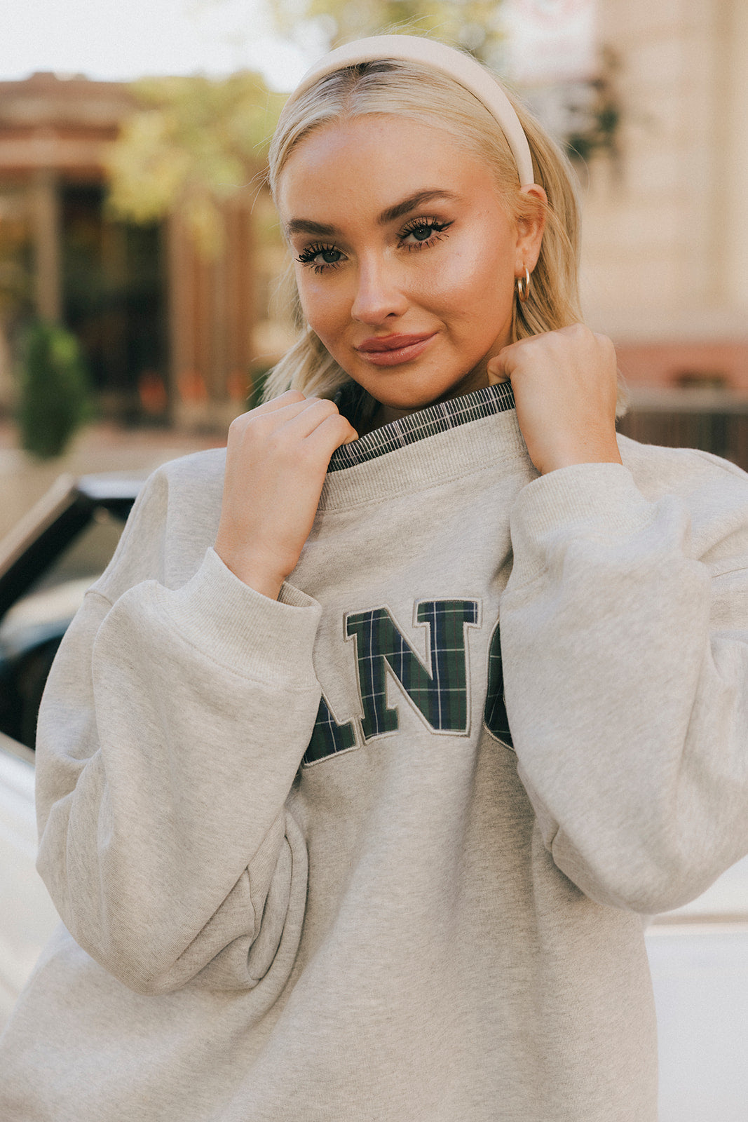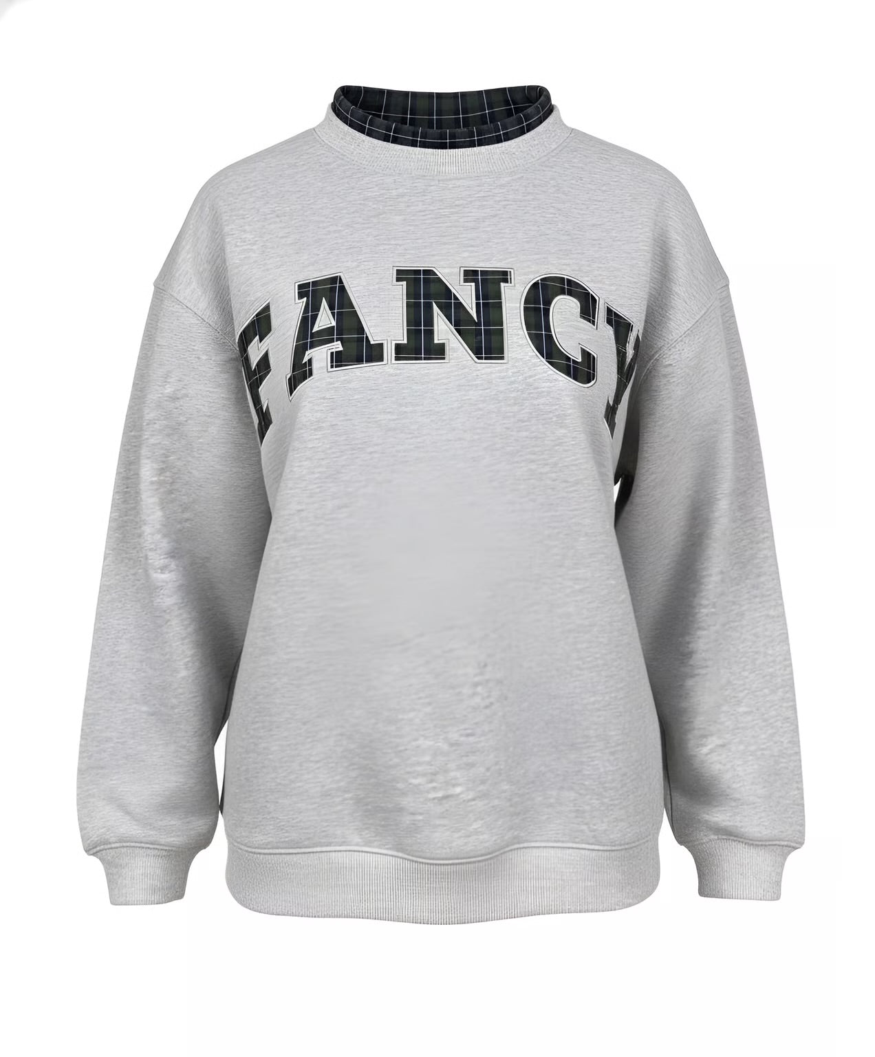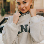 Fancy Oversized Fleece Plaid Collar Mockneck - Heather Grey/Plaid (PREORDER)