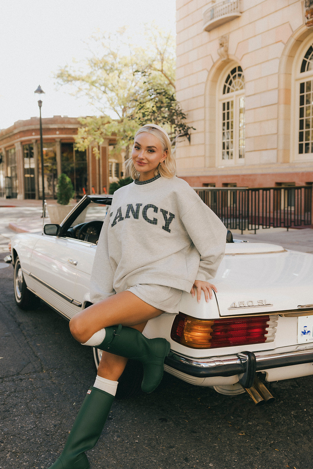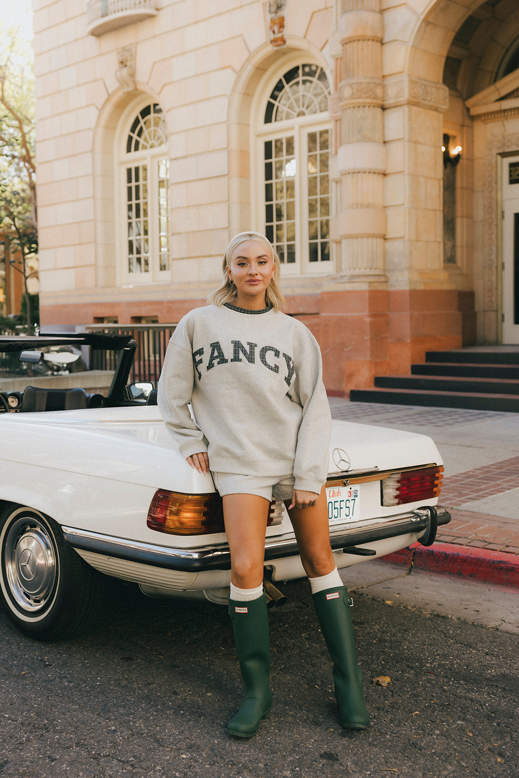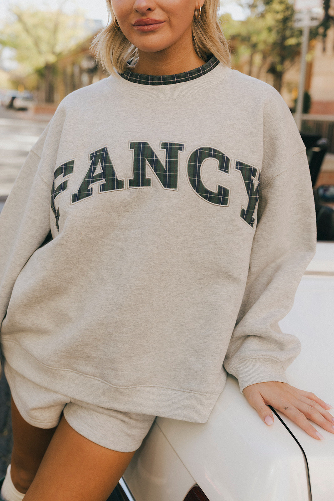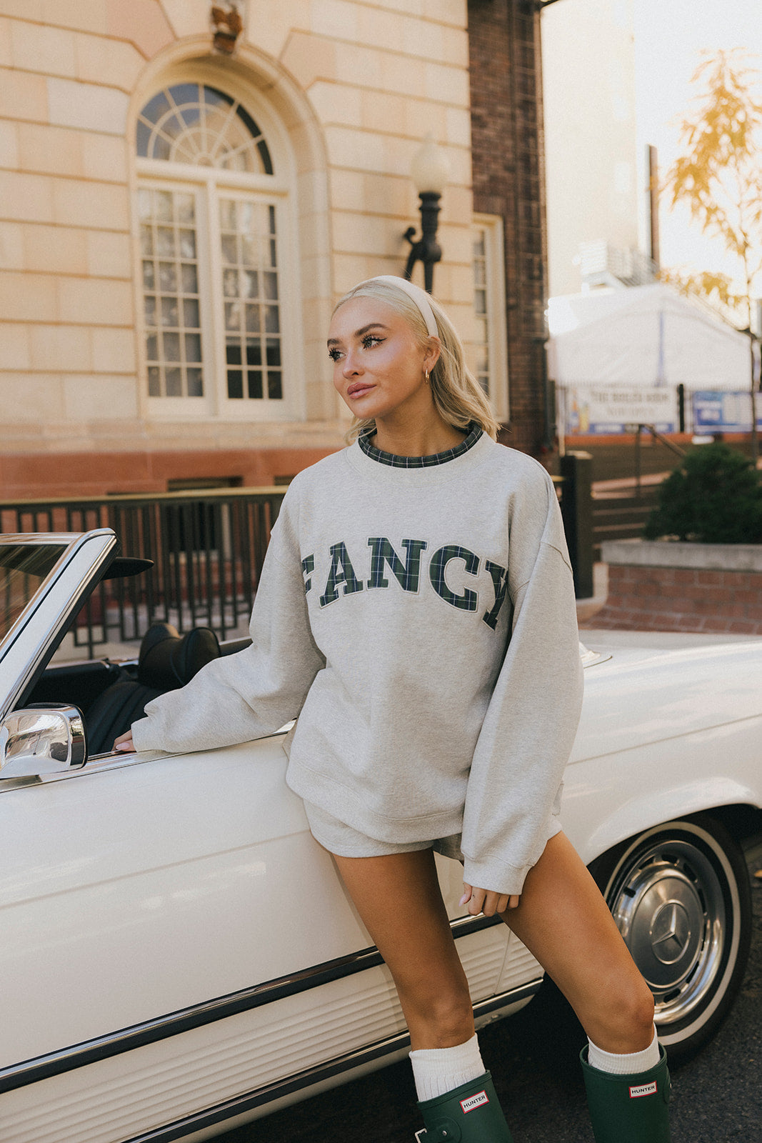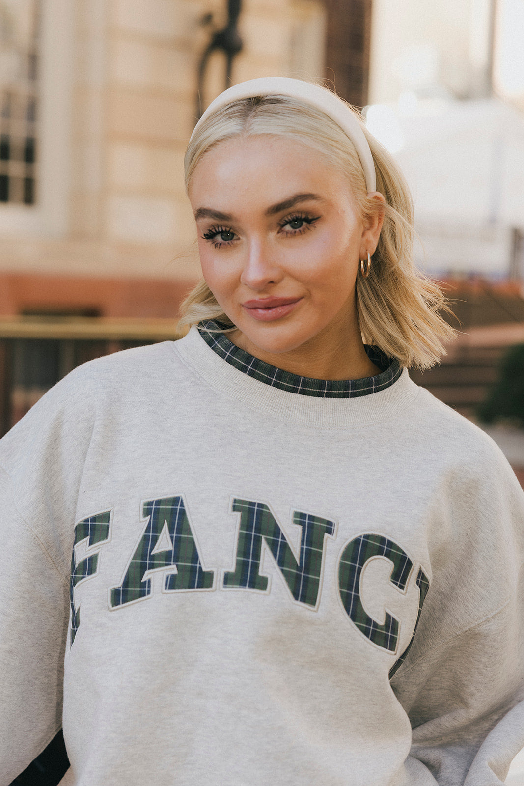 Fancy Oversized Fleece Plaid Collar Mockneck - Heather Grey/Plaid (PREORDER)