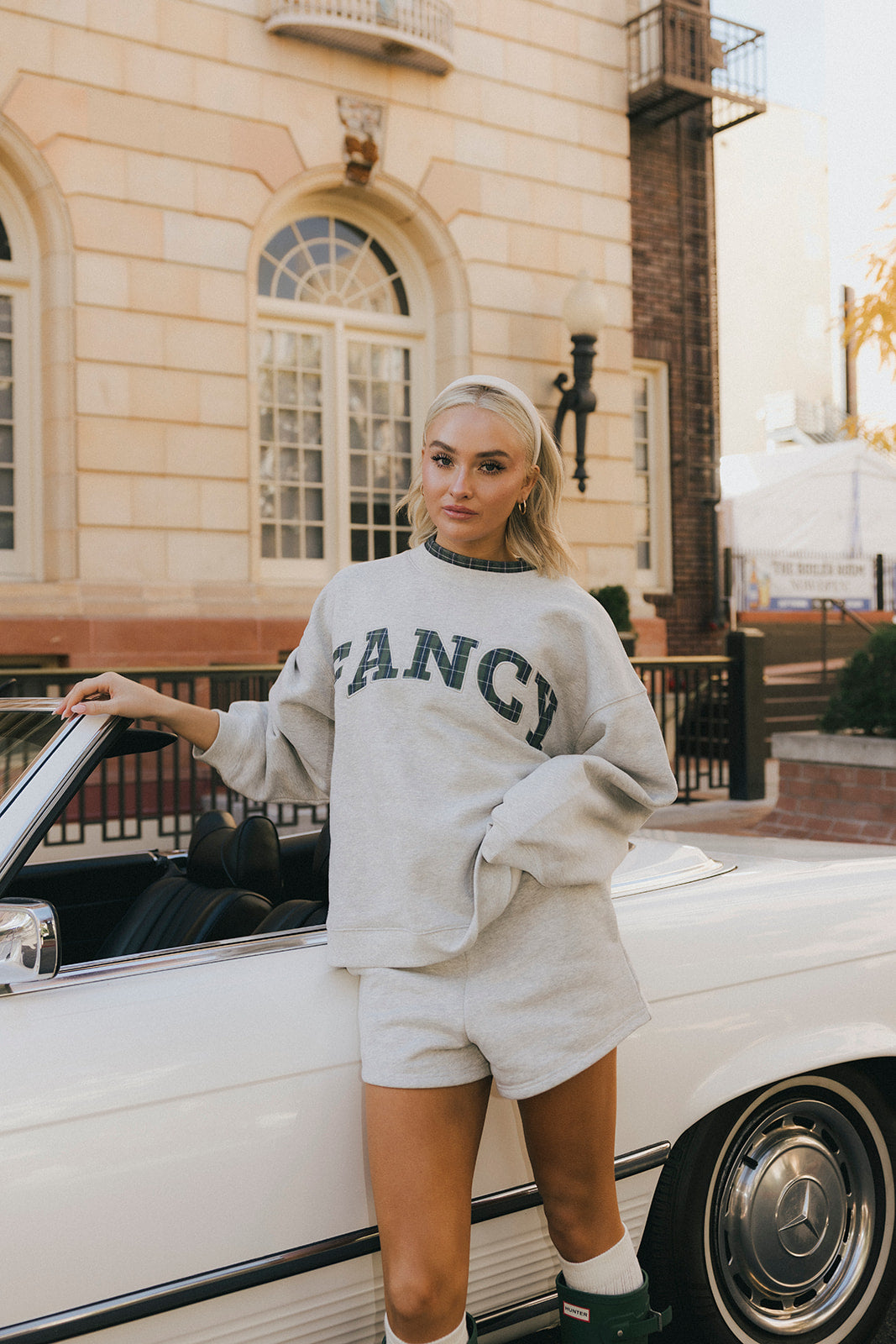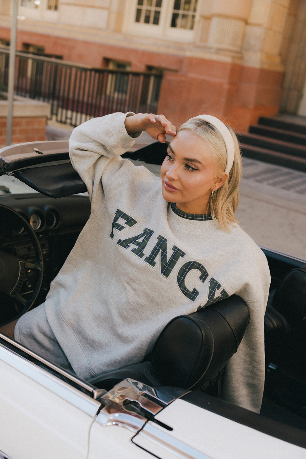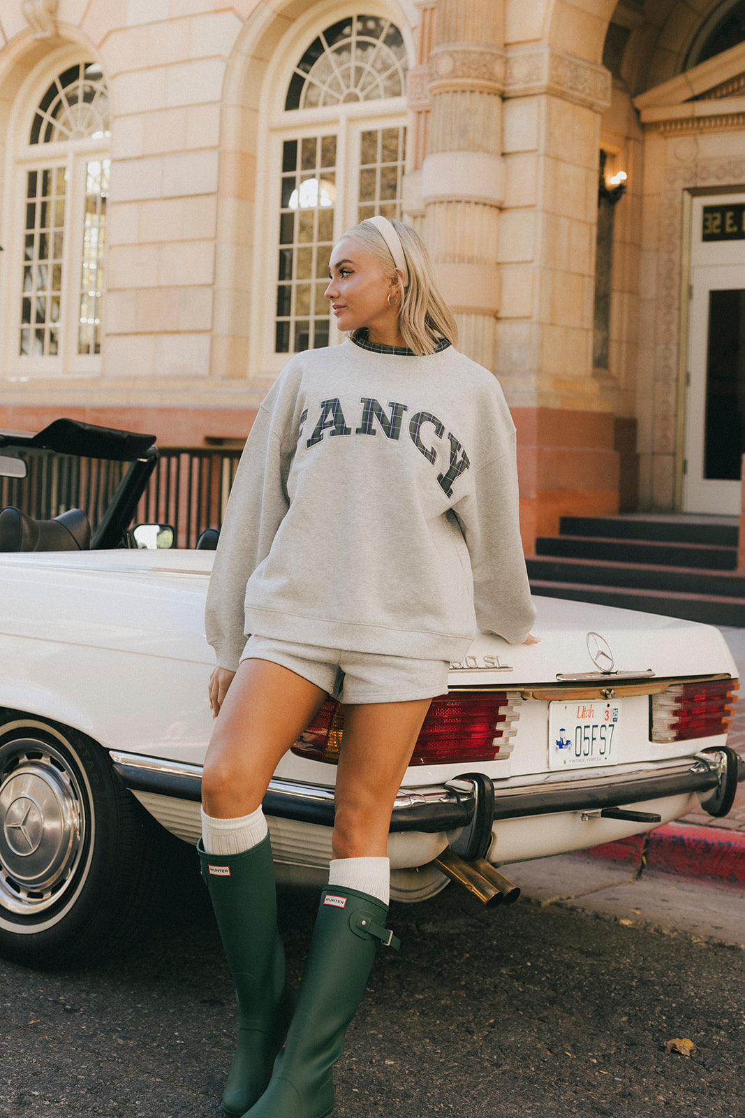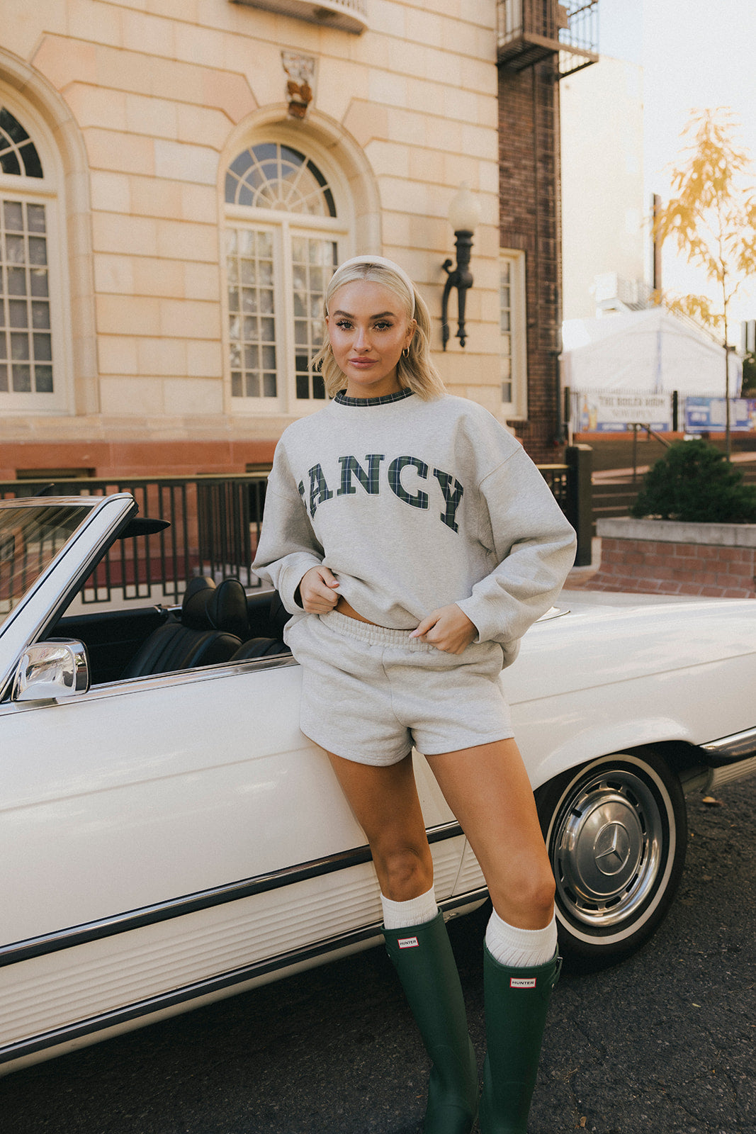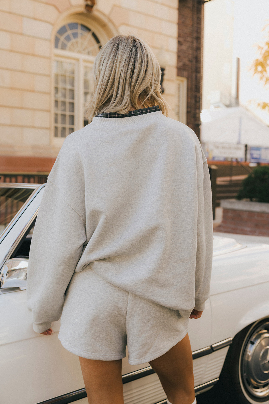 Fancy Oversized Fleece Plaid Collar Mockneck - Heather Grey/Plaid (PREORDER)