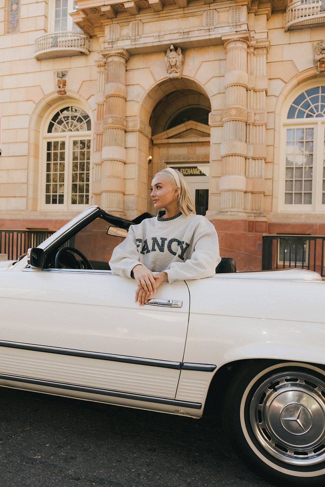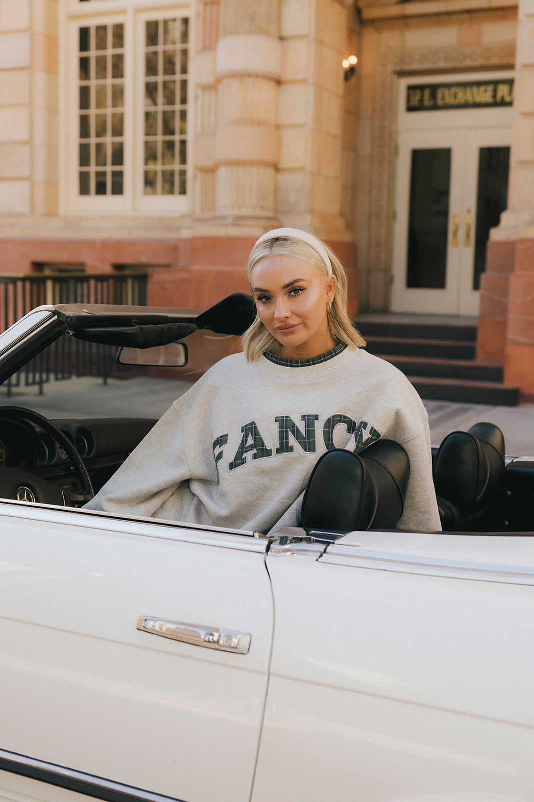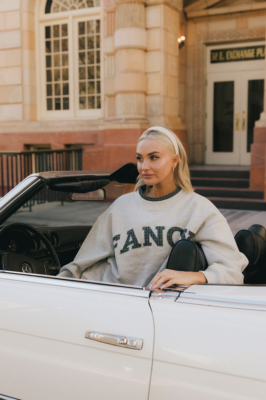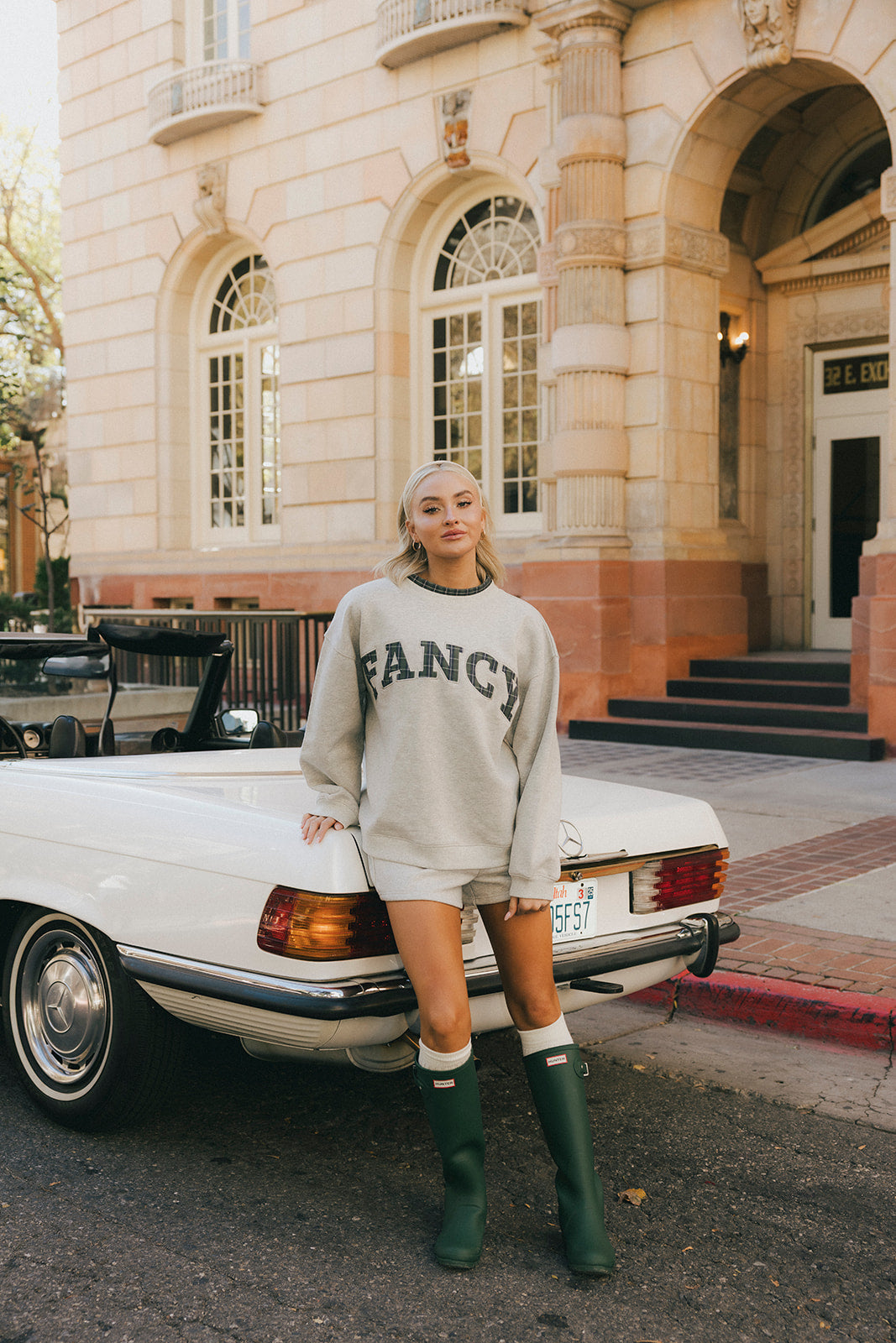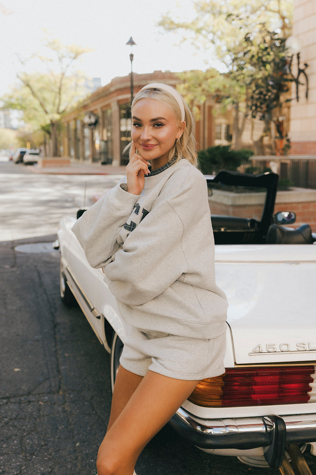 Fancy Oversized Fleece Plaid Collar Mockneck - Heather Grey/Plaid (PREORDER)