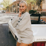 This fleece lined mock neck features an oversized fit for a relaxed, cozy vibe. Crafted with soft, lightweight fleece, it's perfect for lounging, study days, or casual coffee runs, ideal for easing into colder weather.