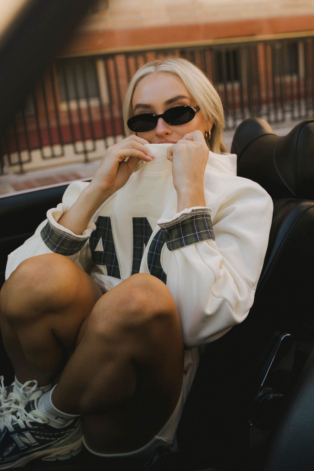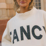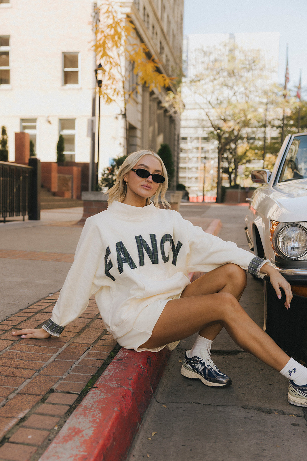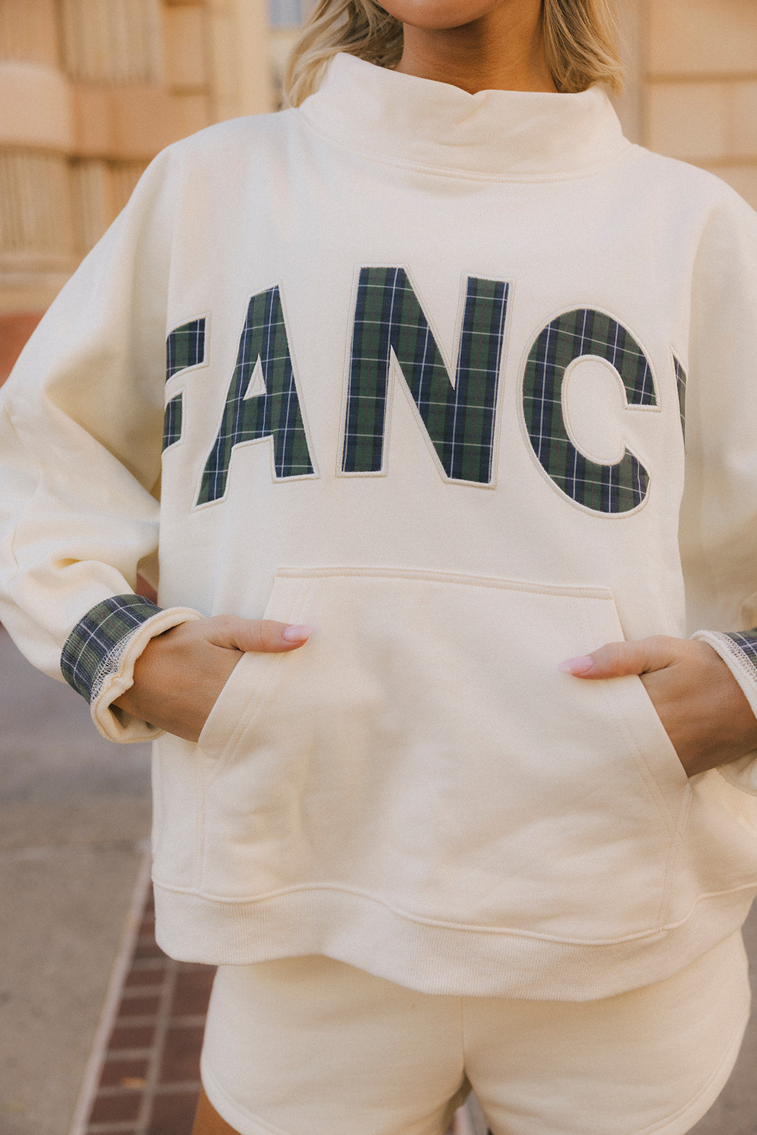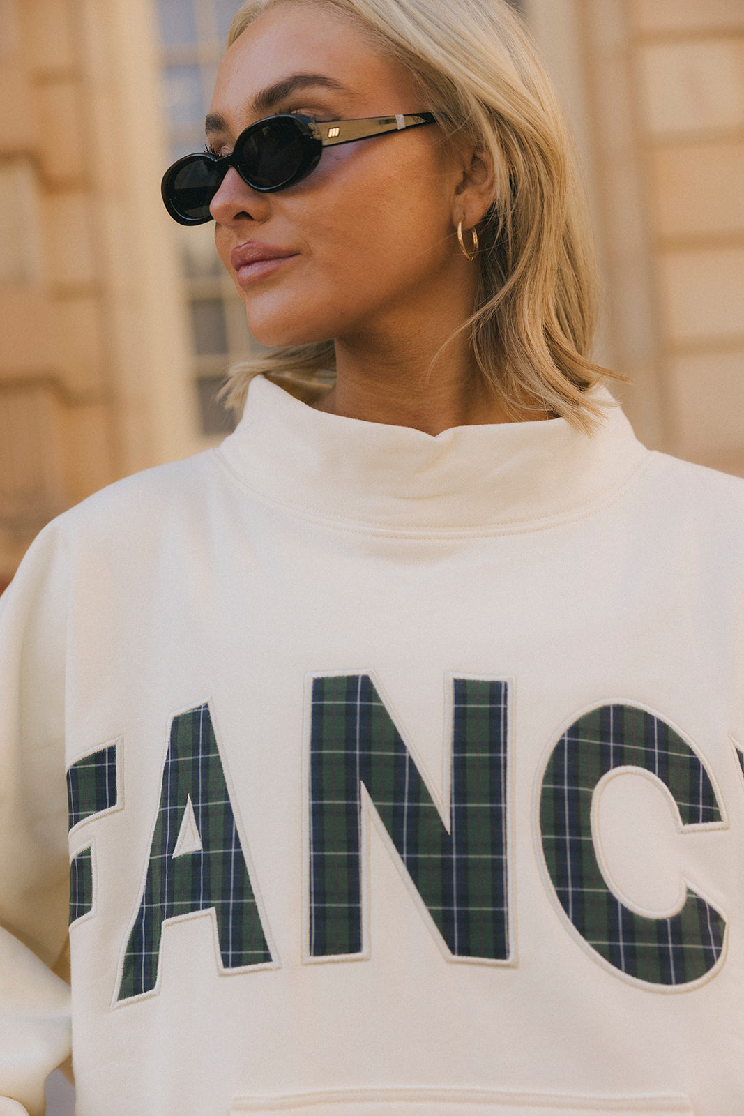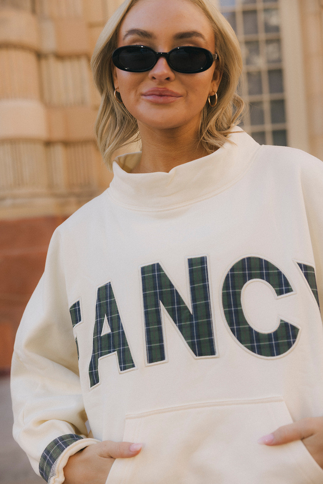 Fancy Oversized Fleece PocketCloud Mockneck - Cream/Plaid (PREORDER)