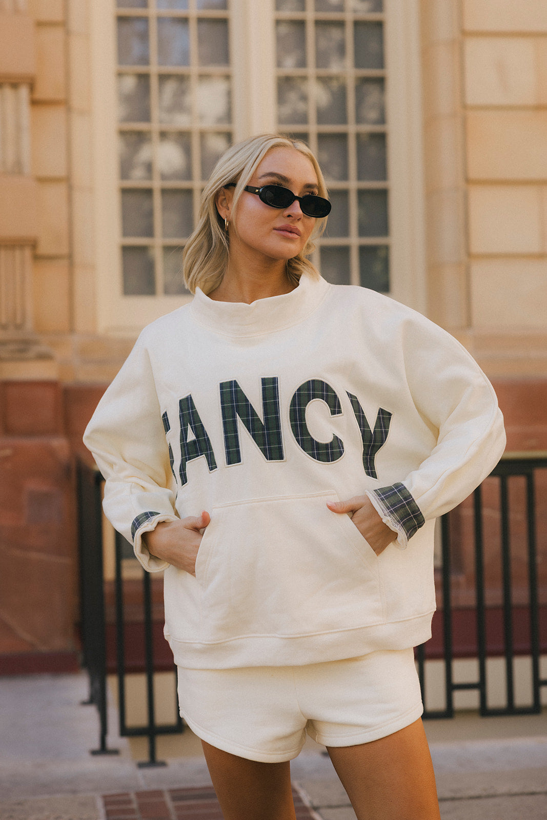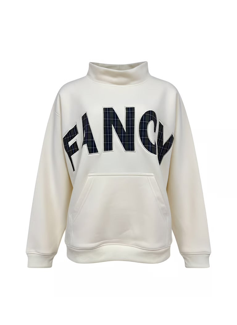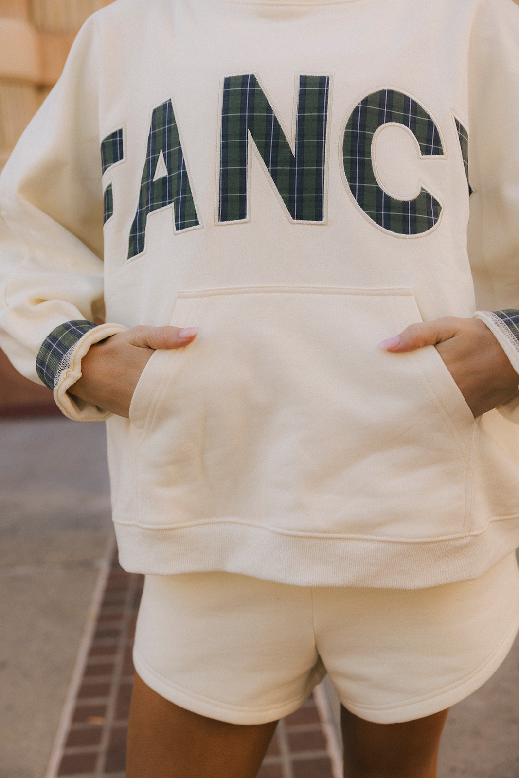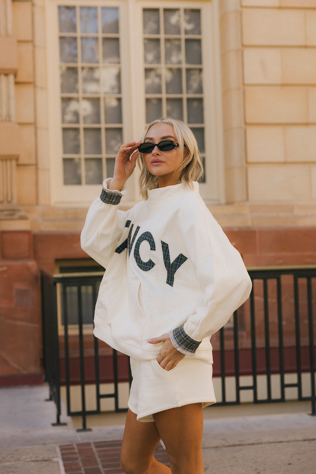 Fancy Oversized Fleece PocketCloud Mockneck - Cream/Plaid (PREORDER)