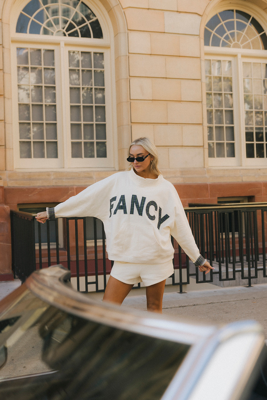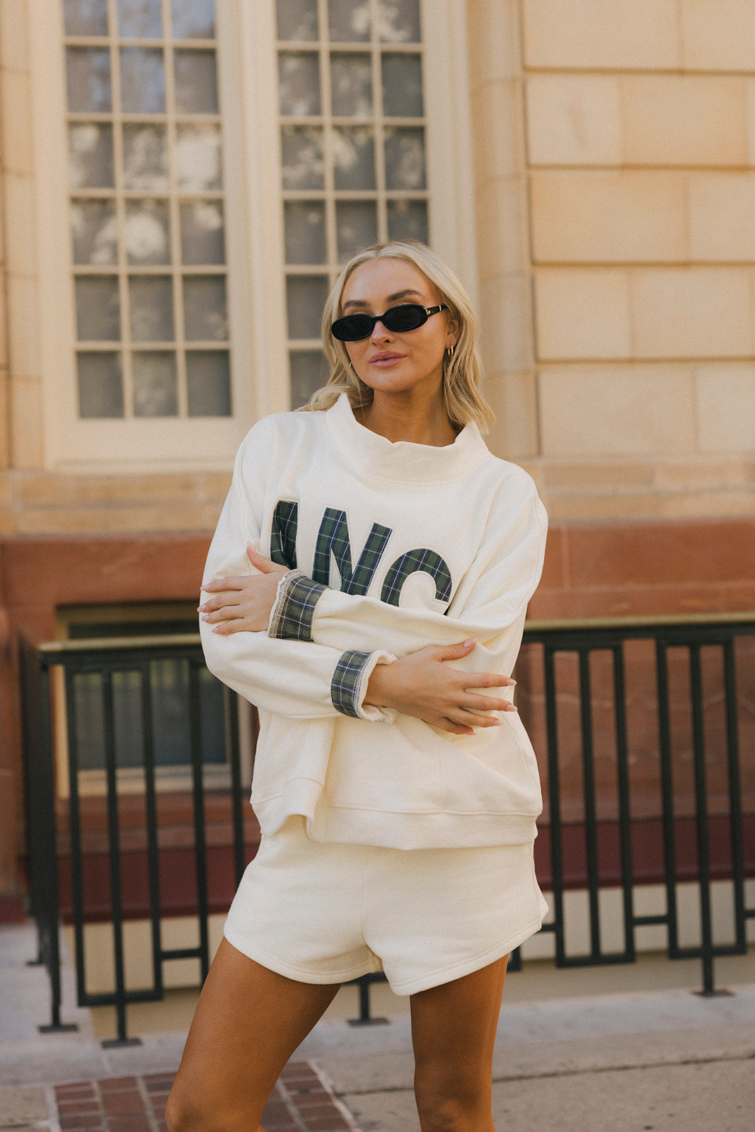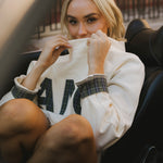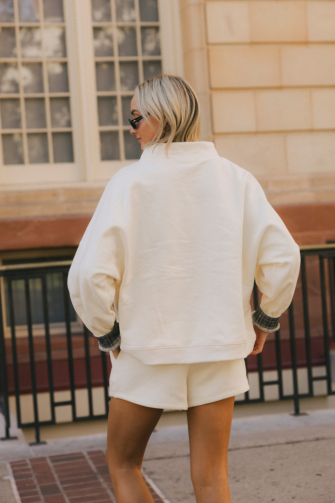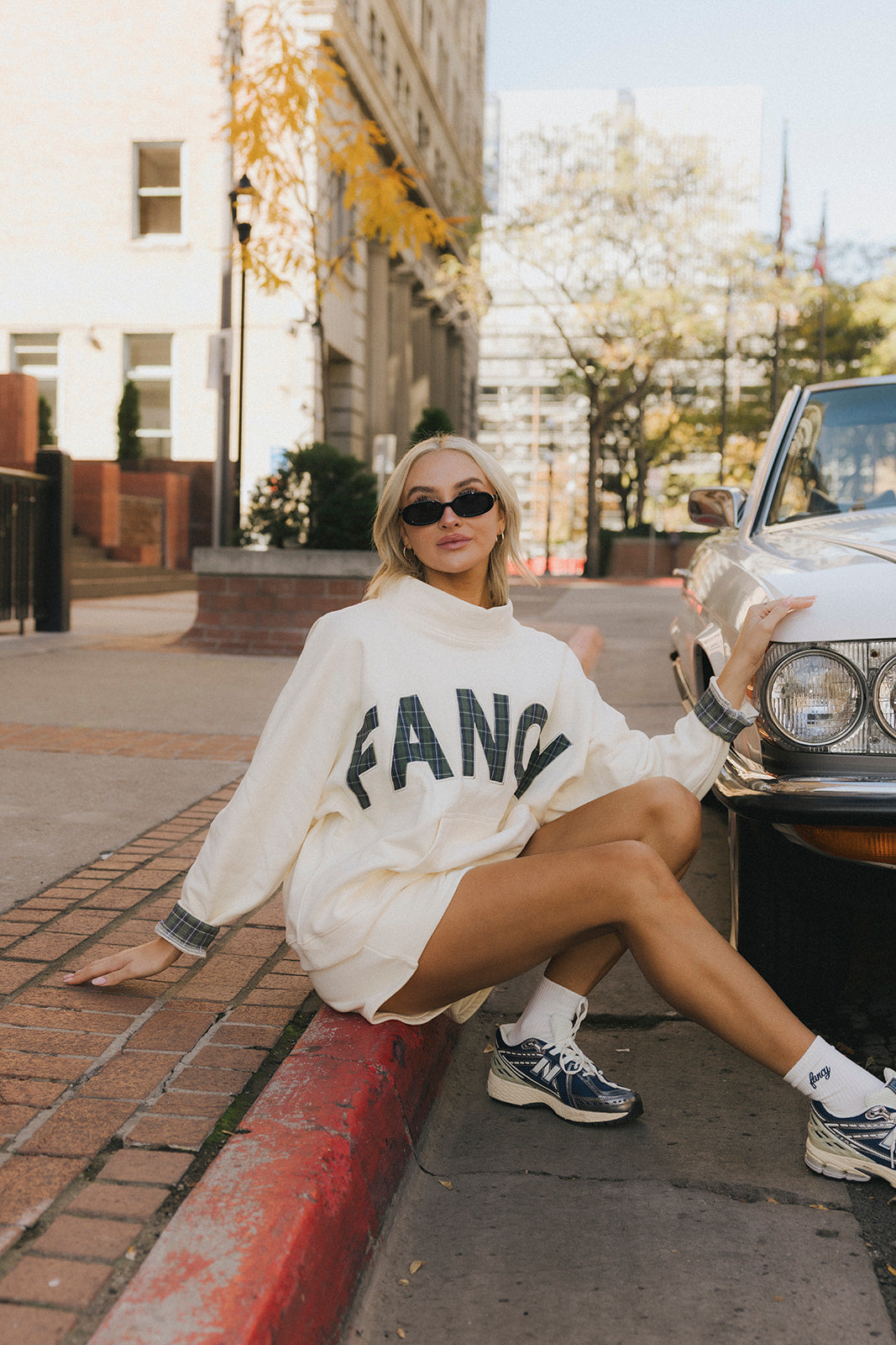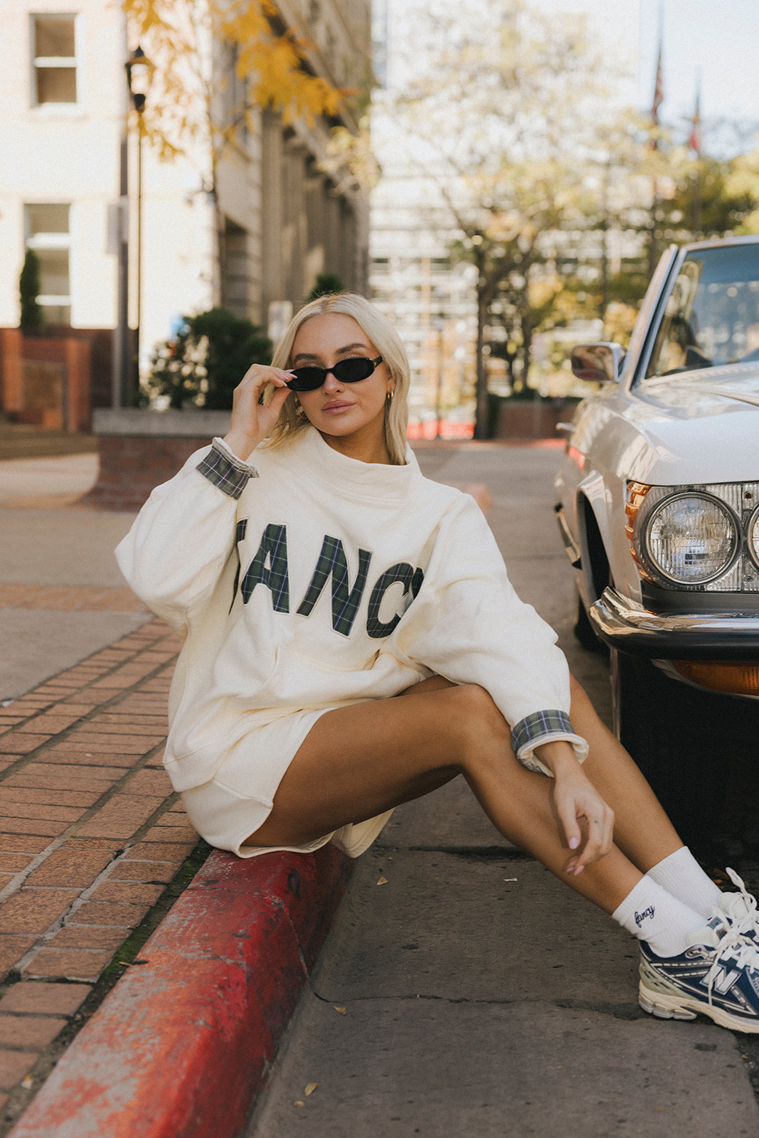 Fancy Oversized Fleece PocketCloud Mockneck - Cream/Plaid (PREORDER)