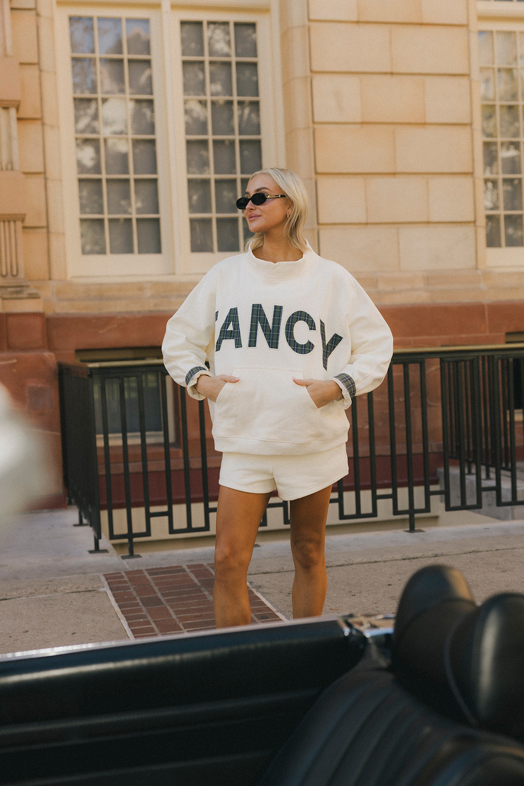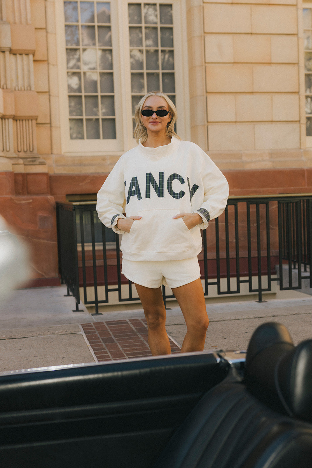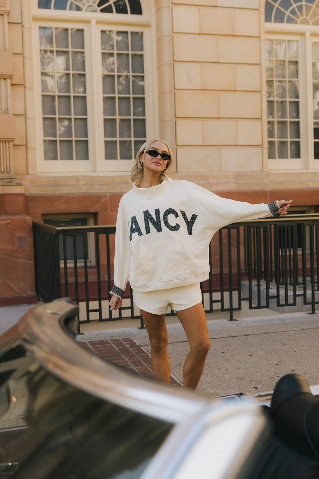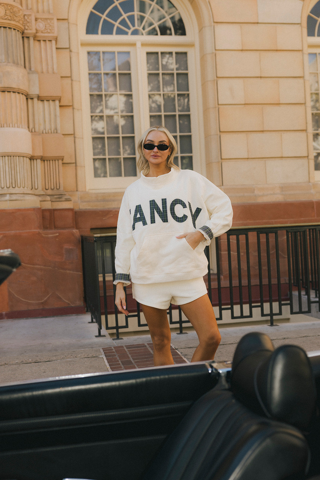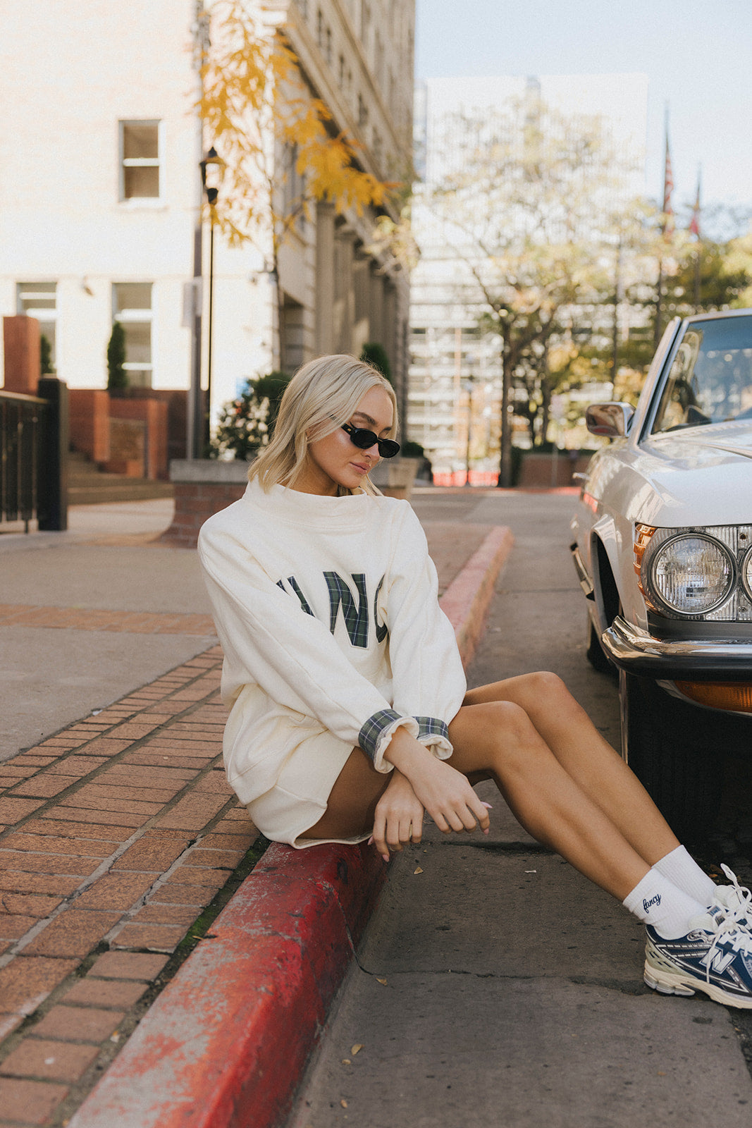 Fancy Oversized Fleece PocketCloud Mockneck - Cream/Plaid (PREORDER)