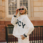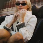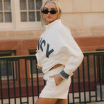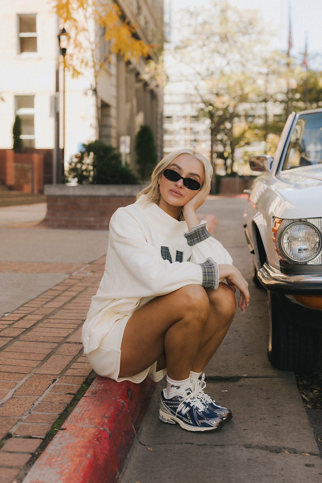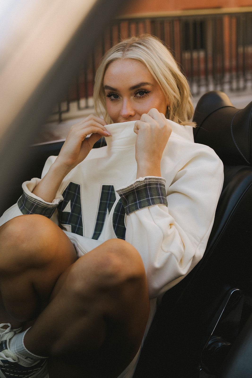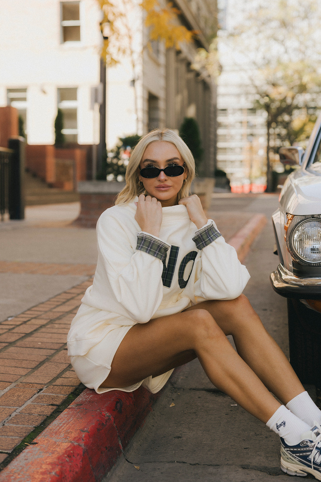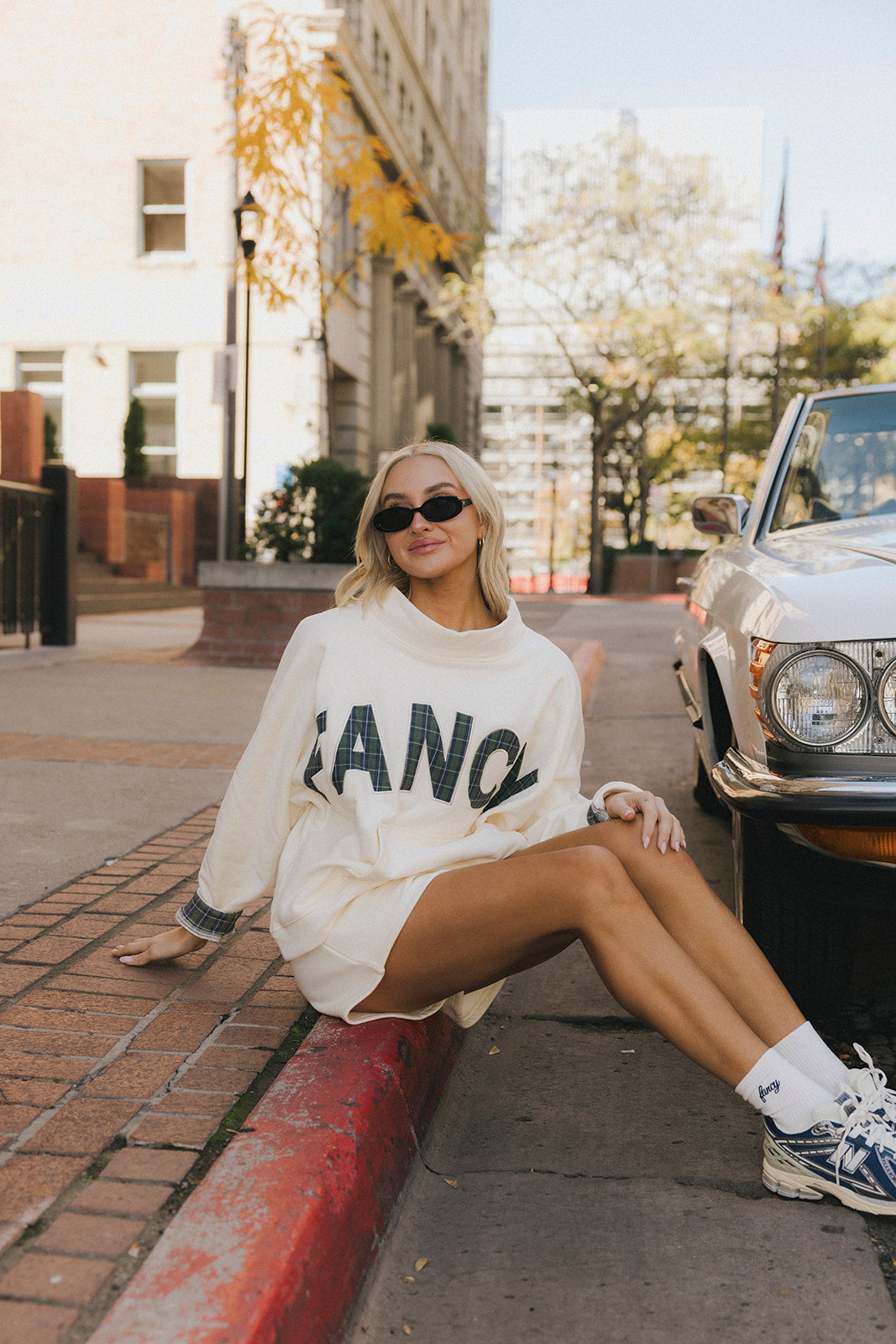 Fancy Oversized Fleece PocketCloud Mockneck - Cream/Plaid (PREORDER)