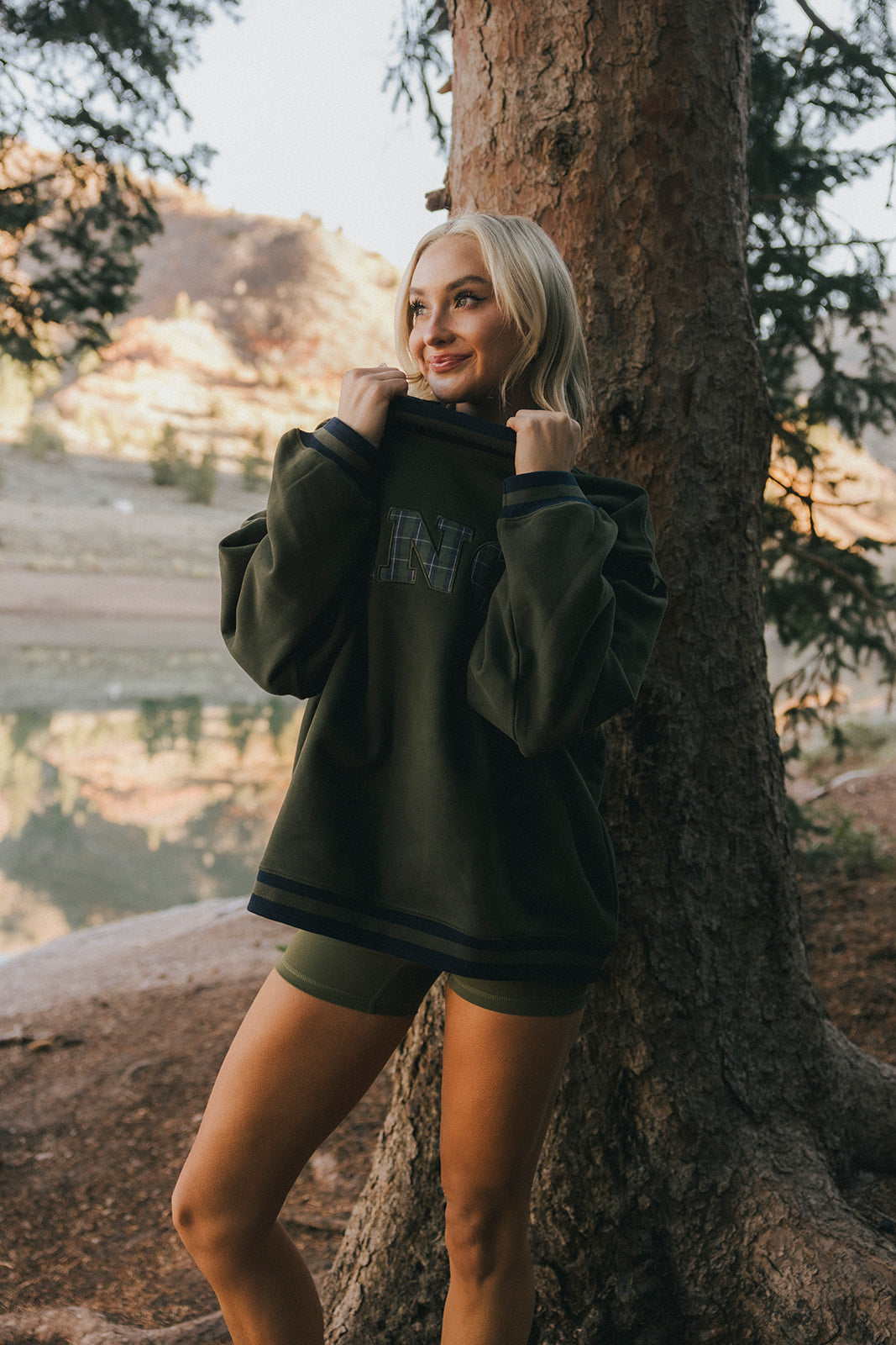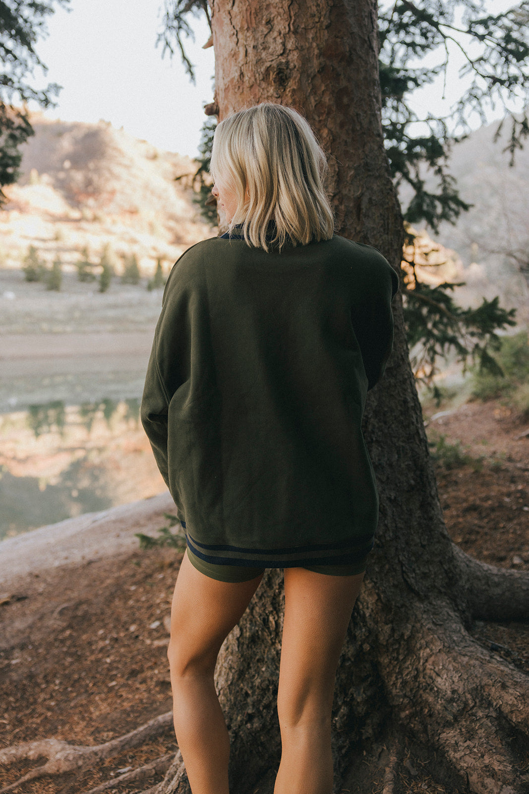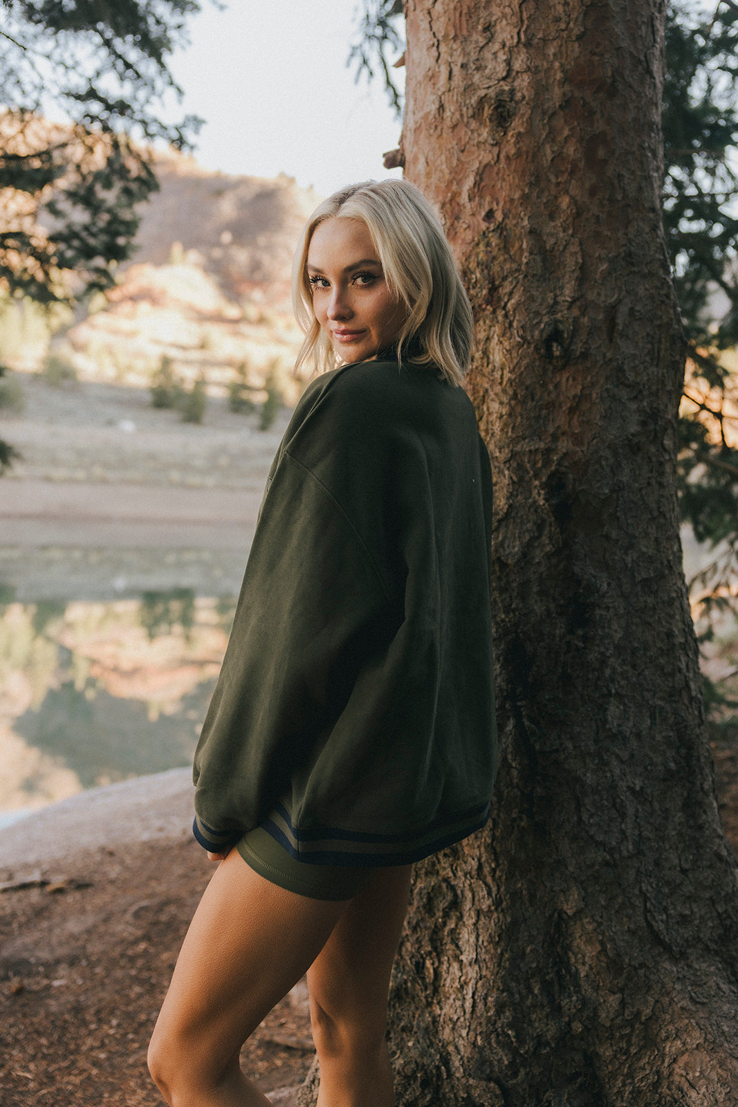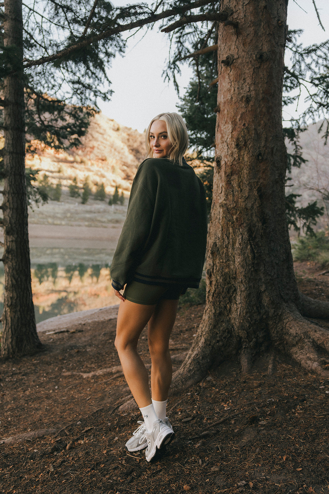 Model is wearing a XS/S mockneck and XS/S shorts.
