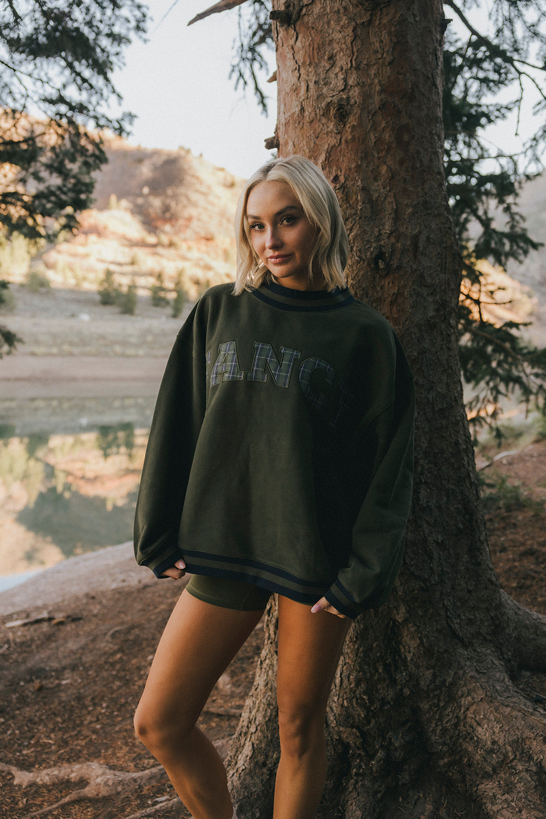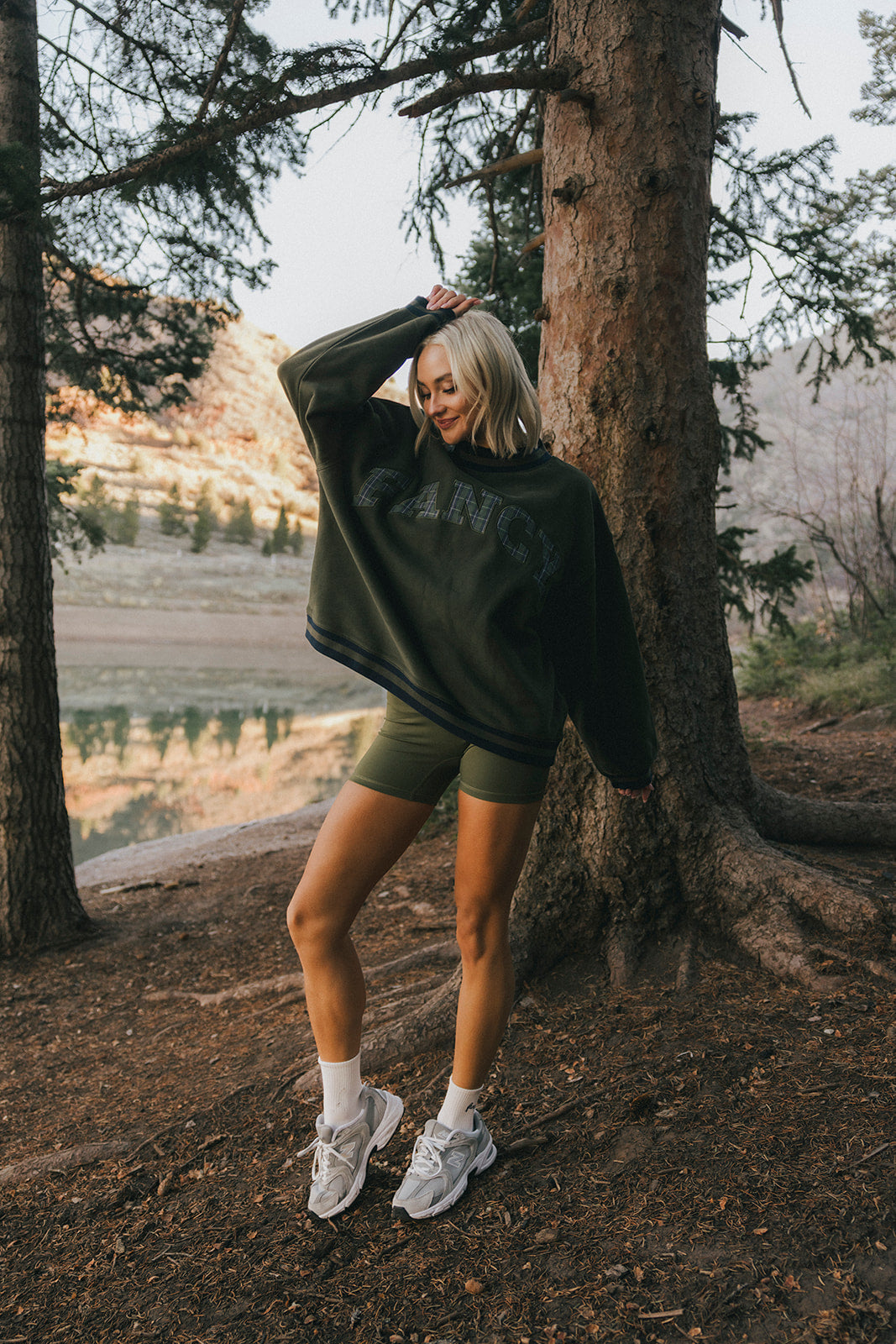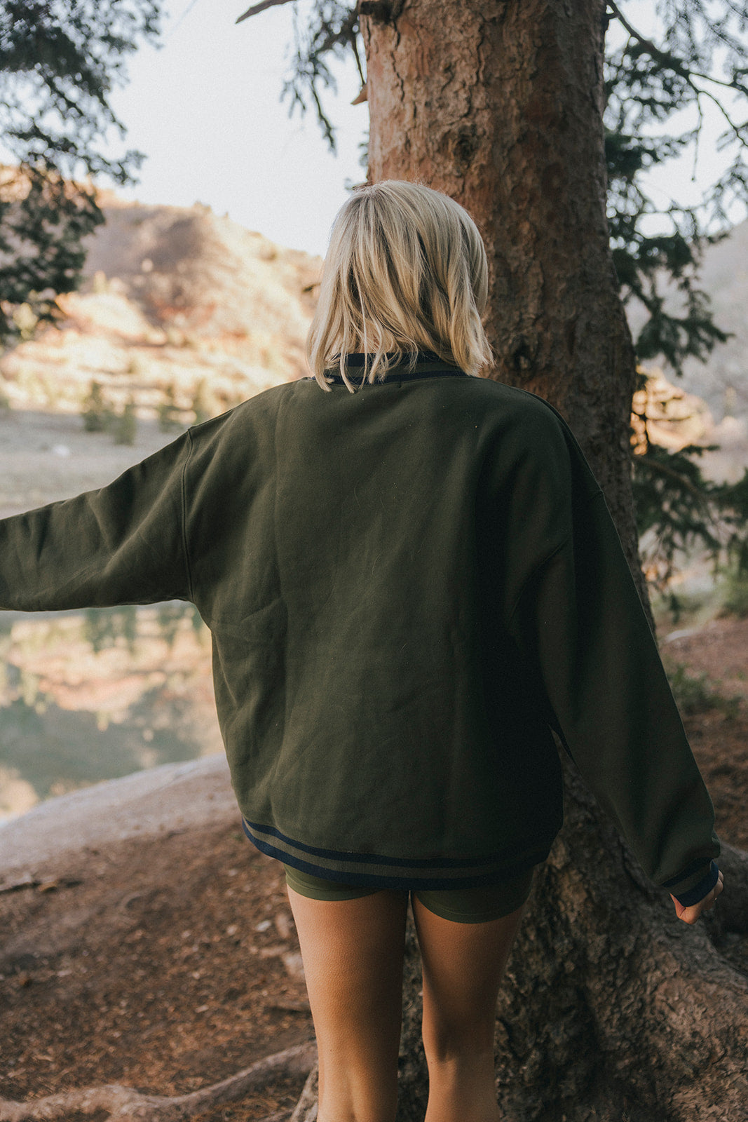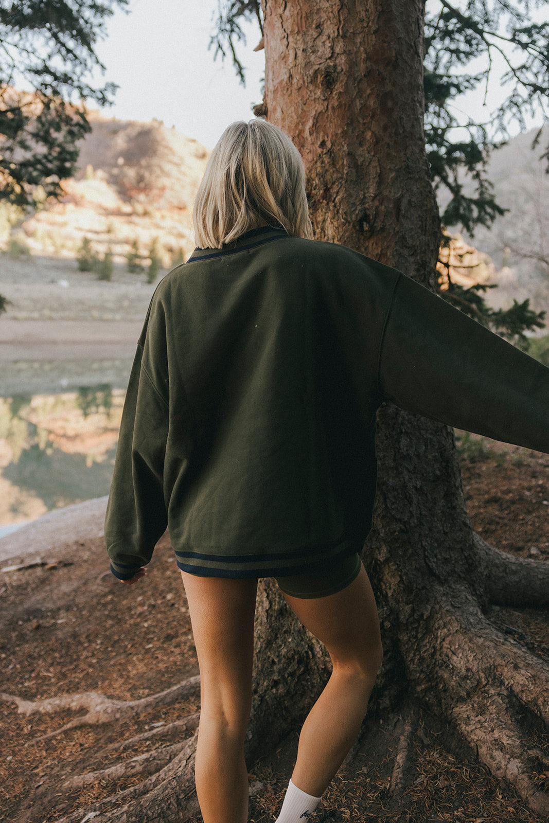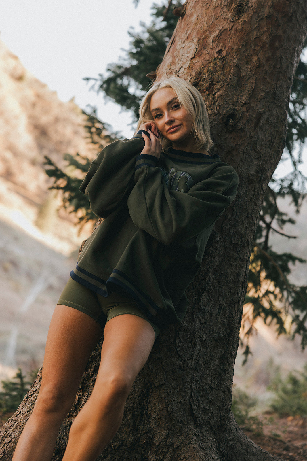 Model is wearing a XS/S mockneck and XS/S shorts.