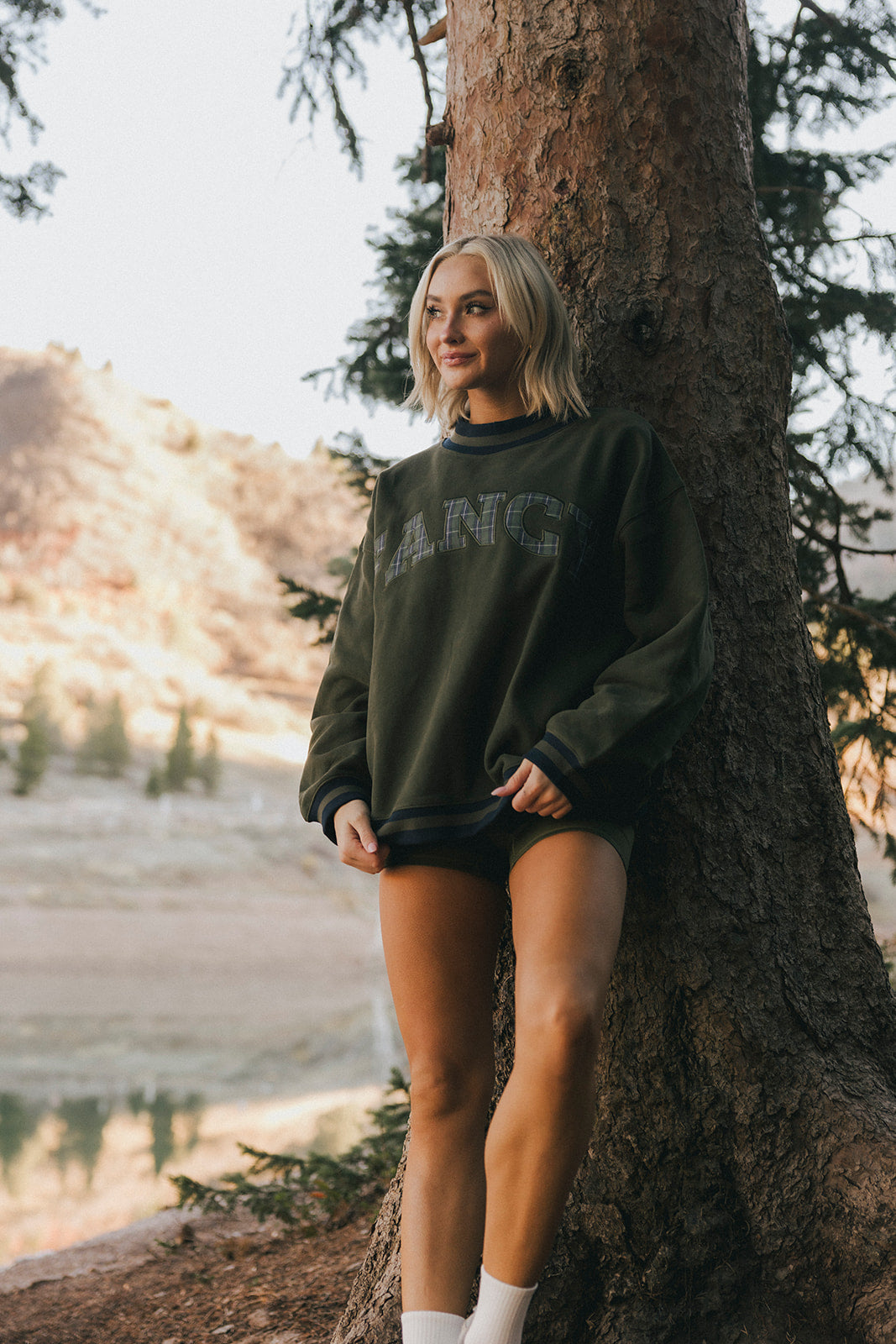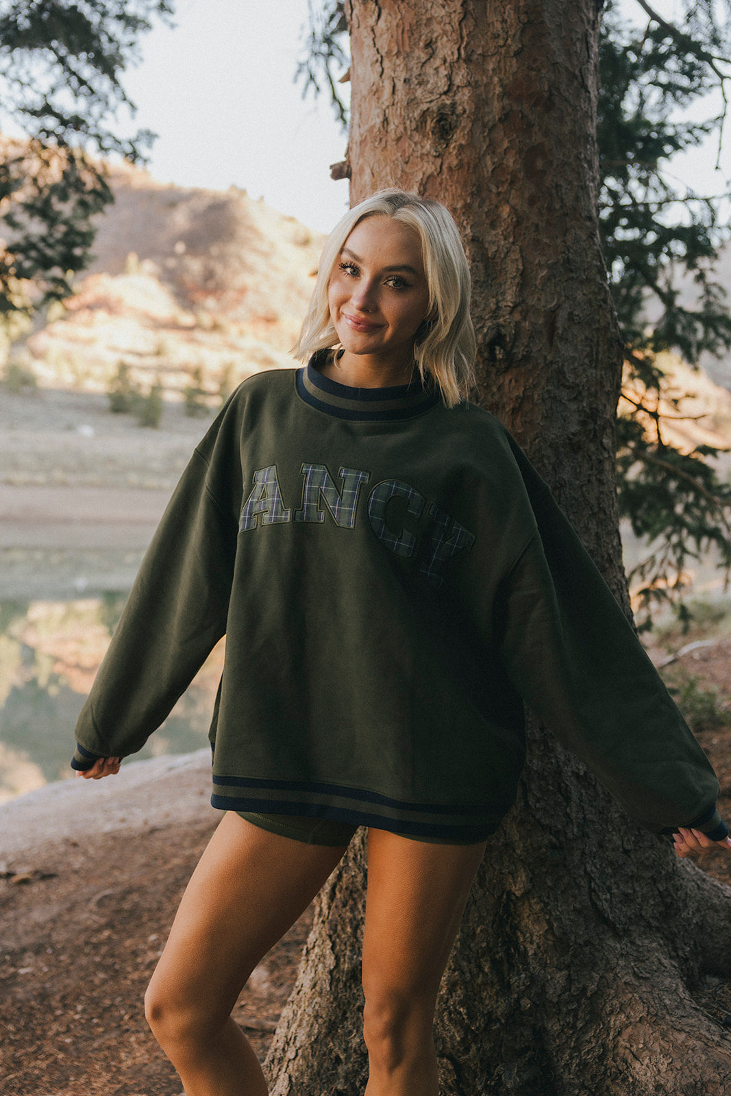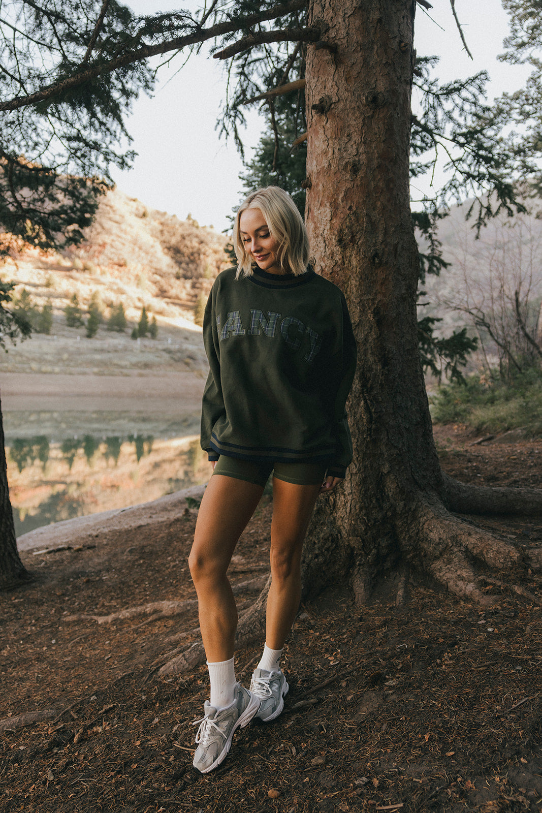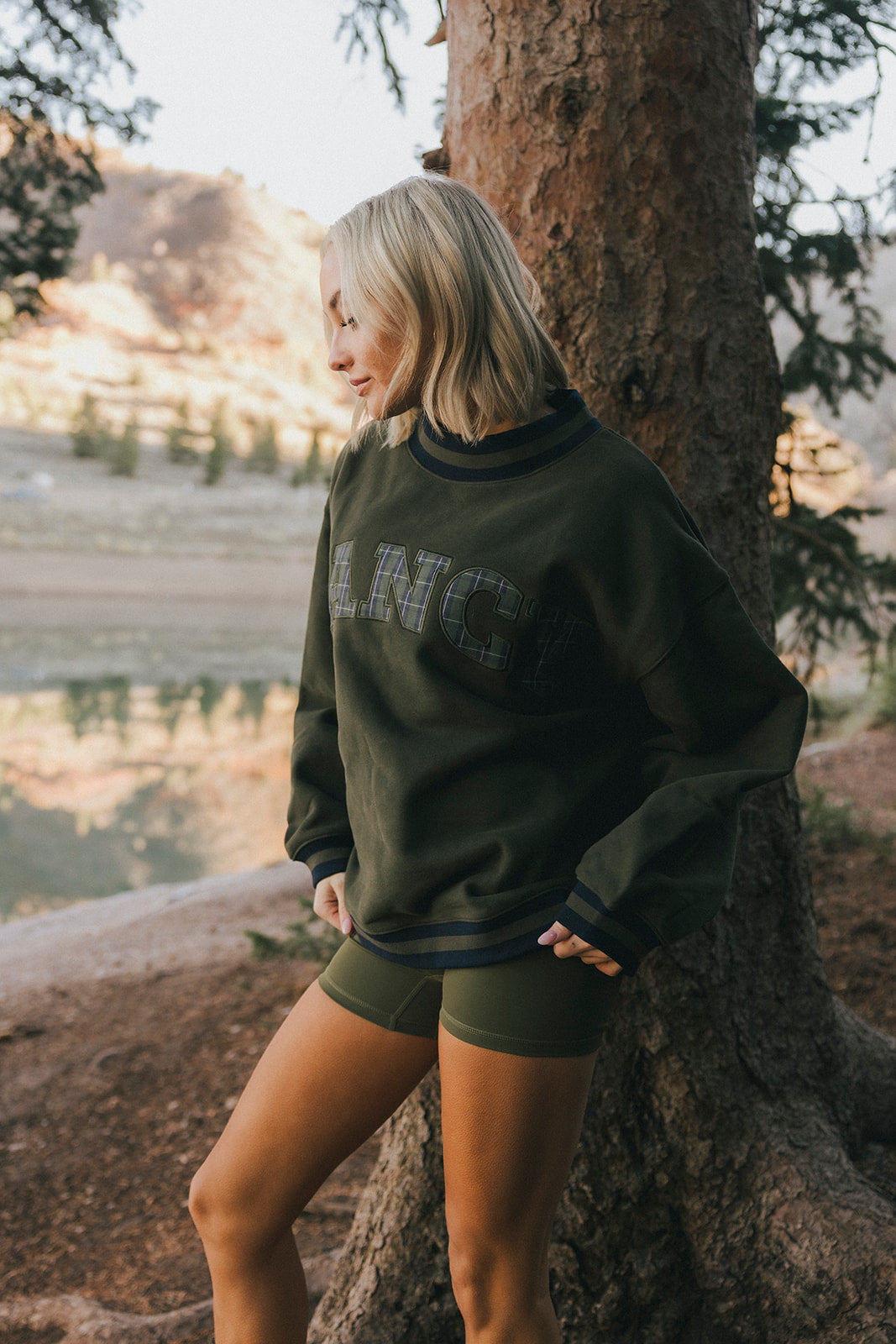 Model is wearing a XS/S mockneck and XS/S shorts.