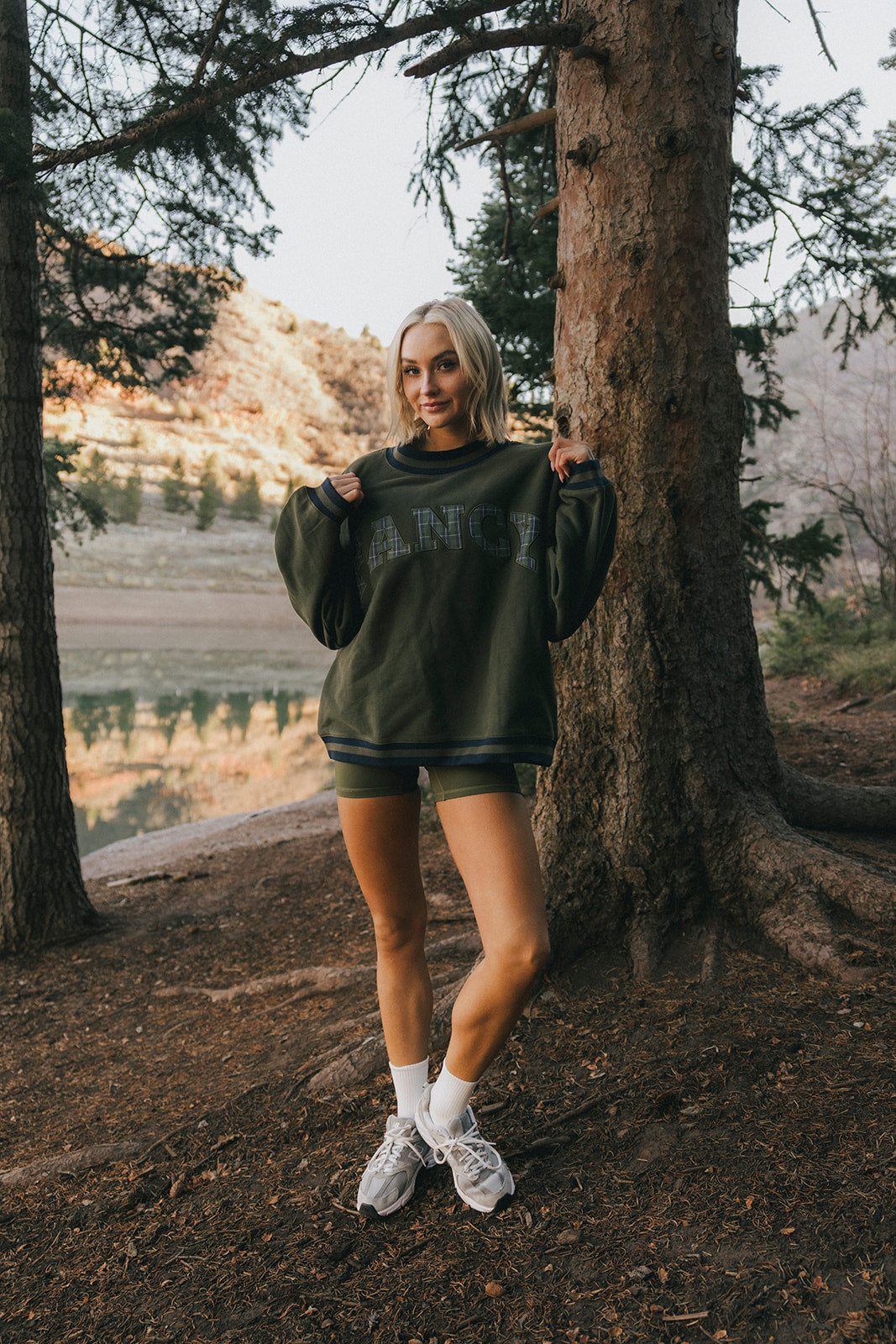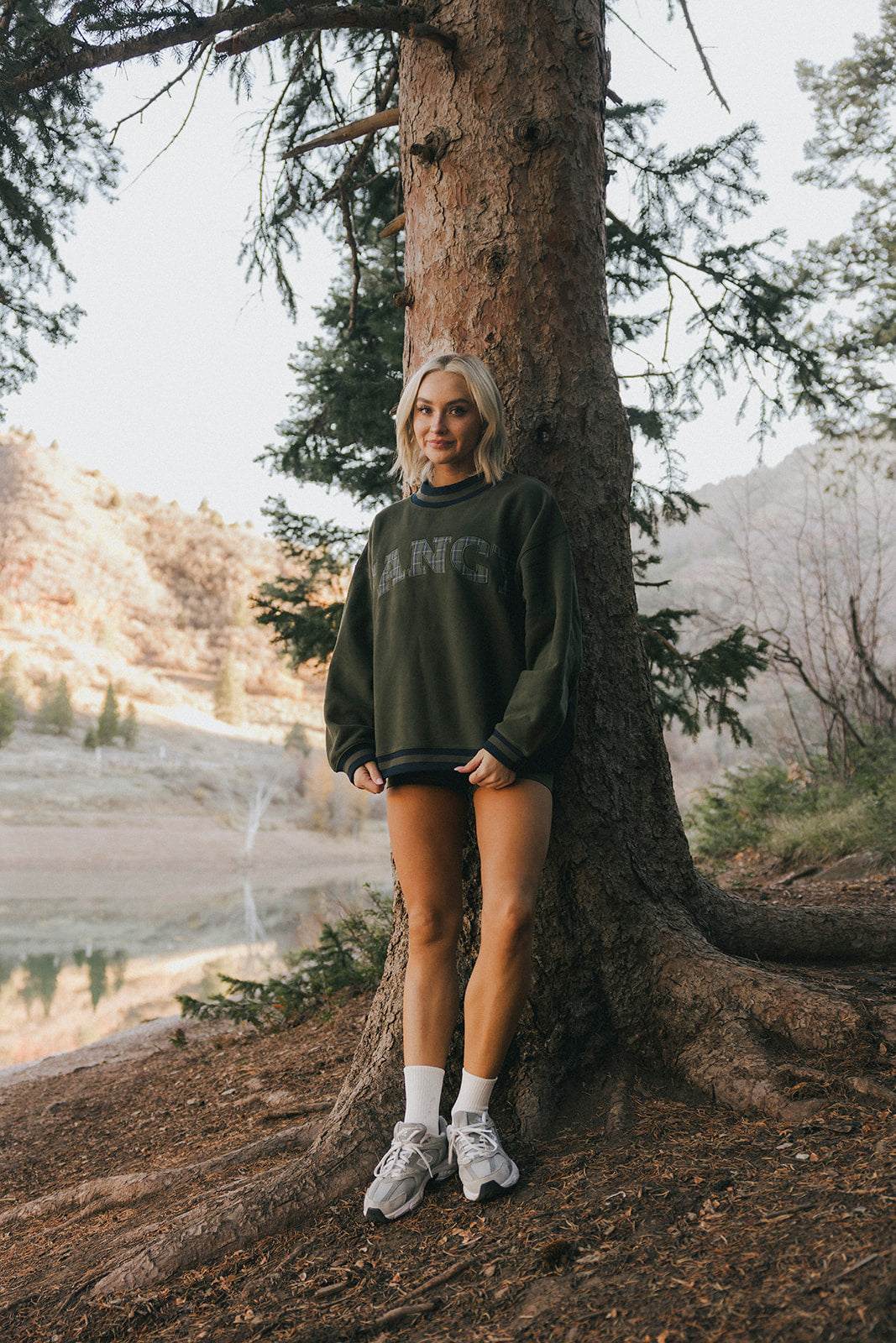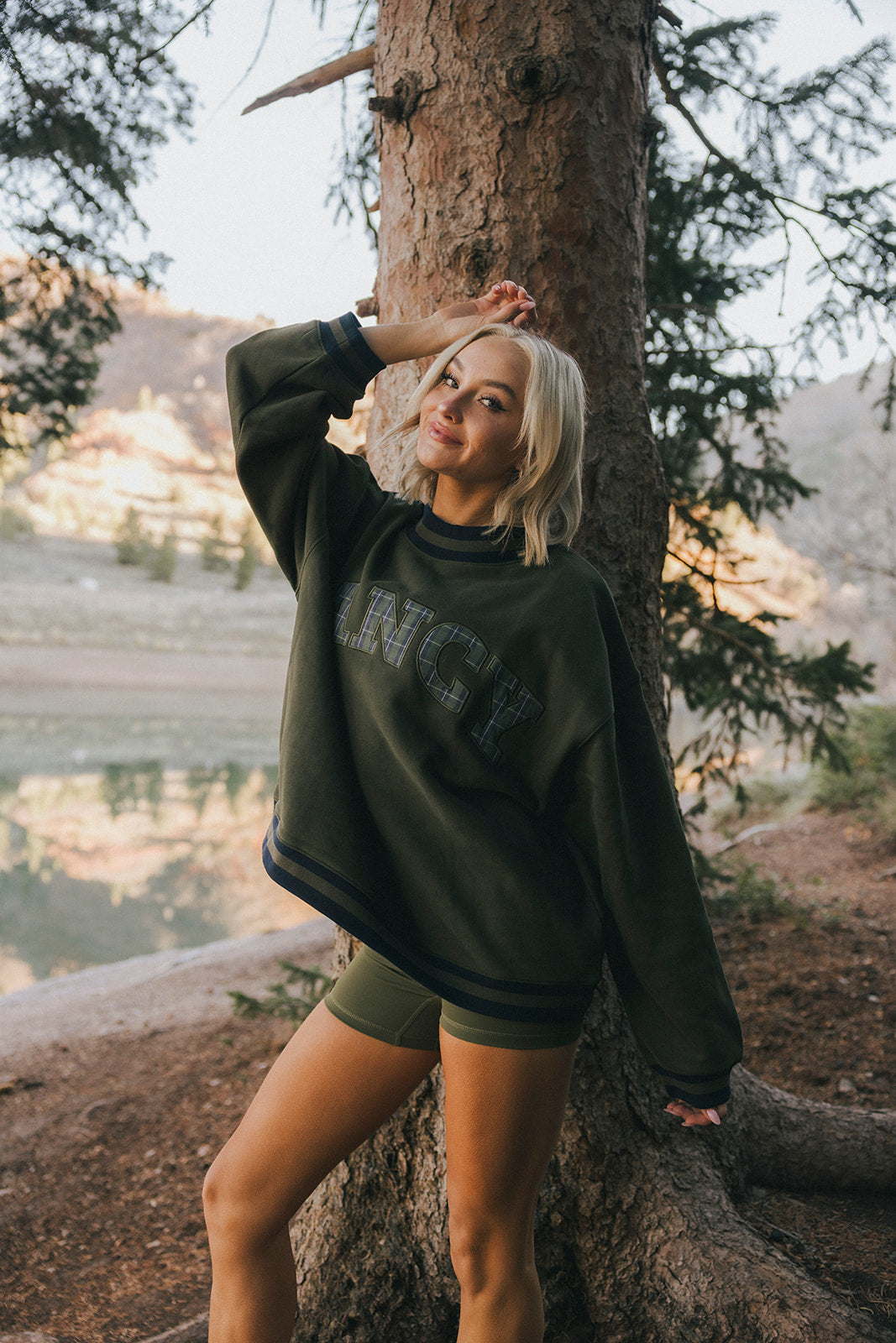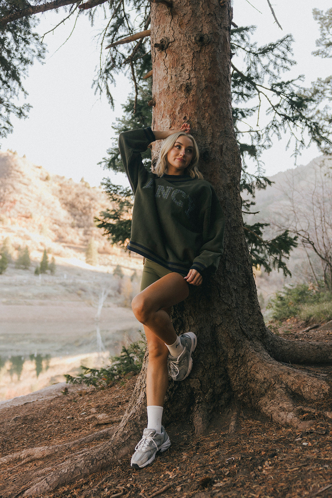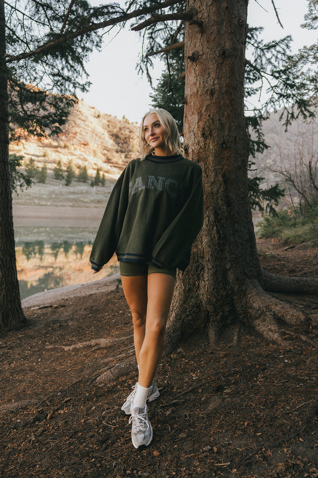 Model is wearing a XS/S mockneck and XS/S shorts.