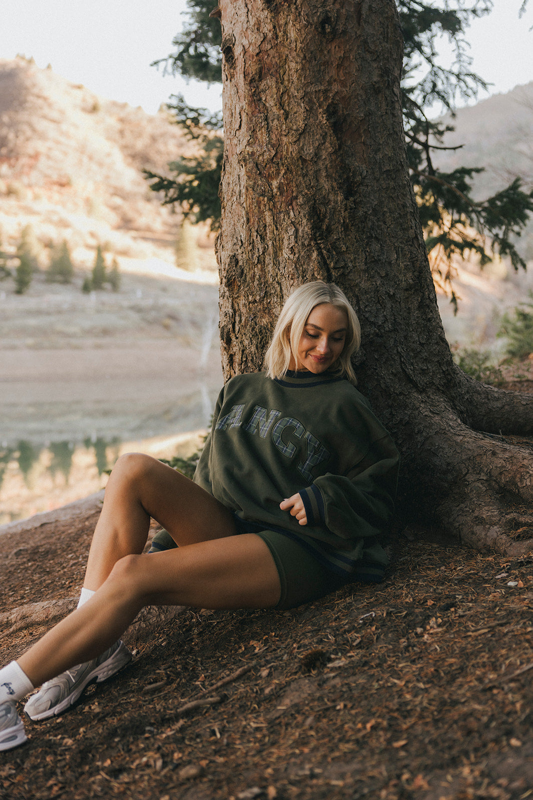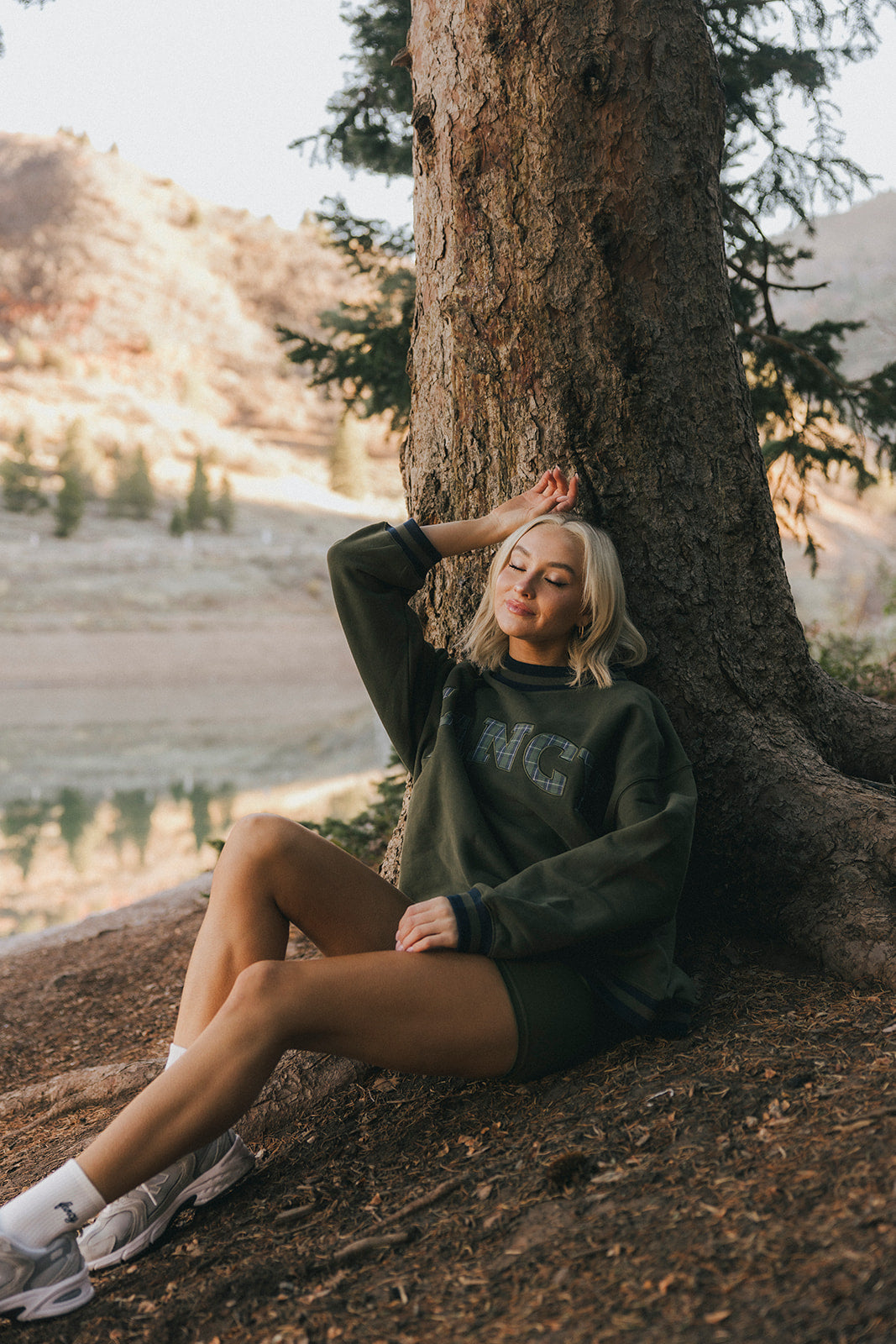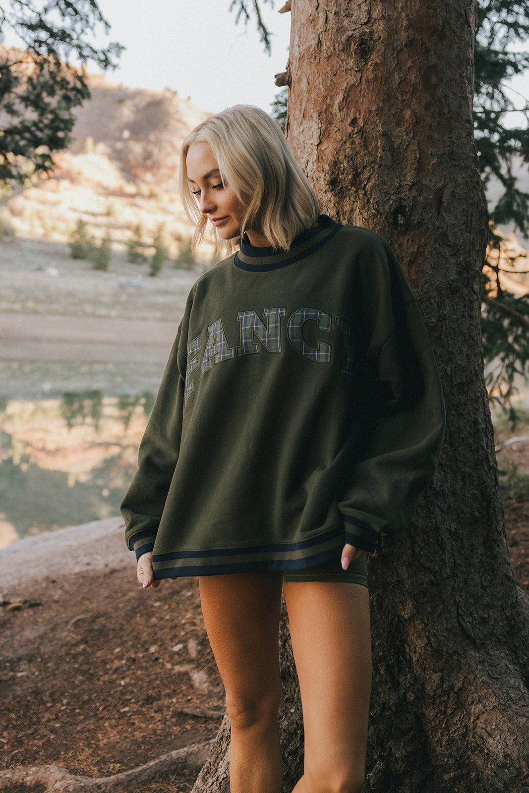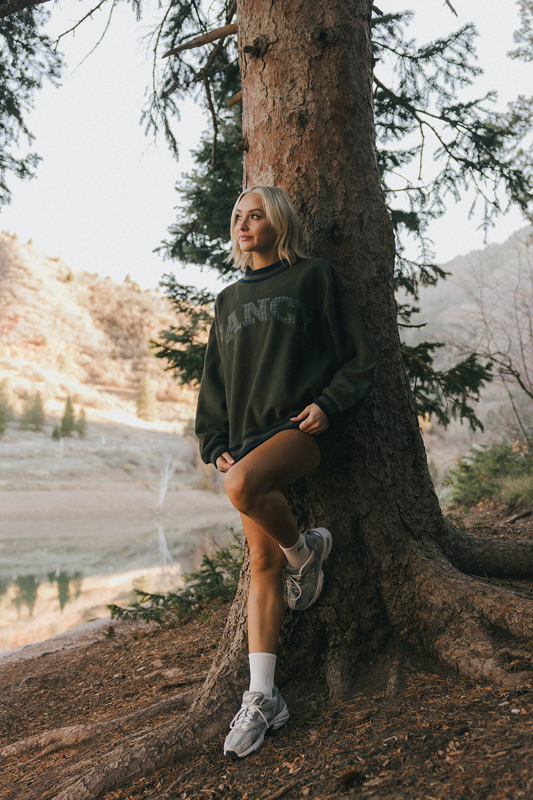 Model is wearing a XS/S mockneck and XS/S shorts.