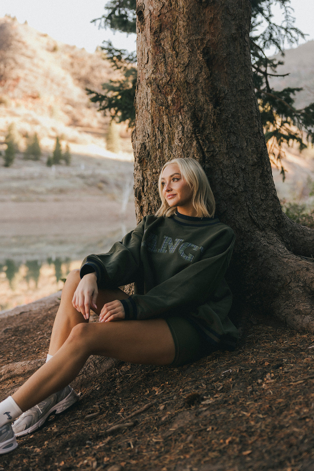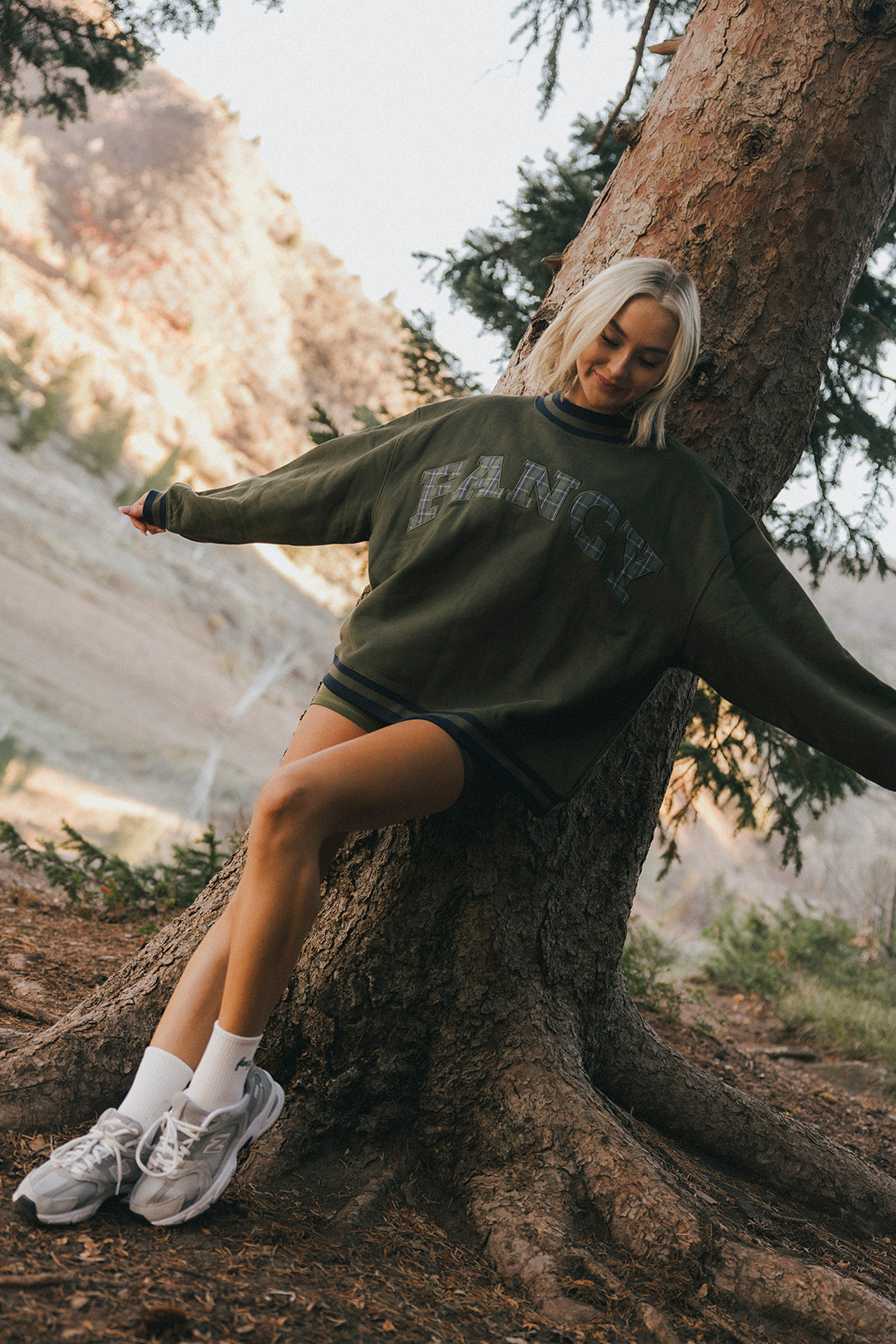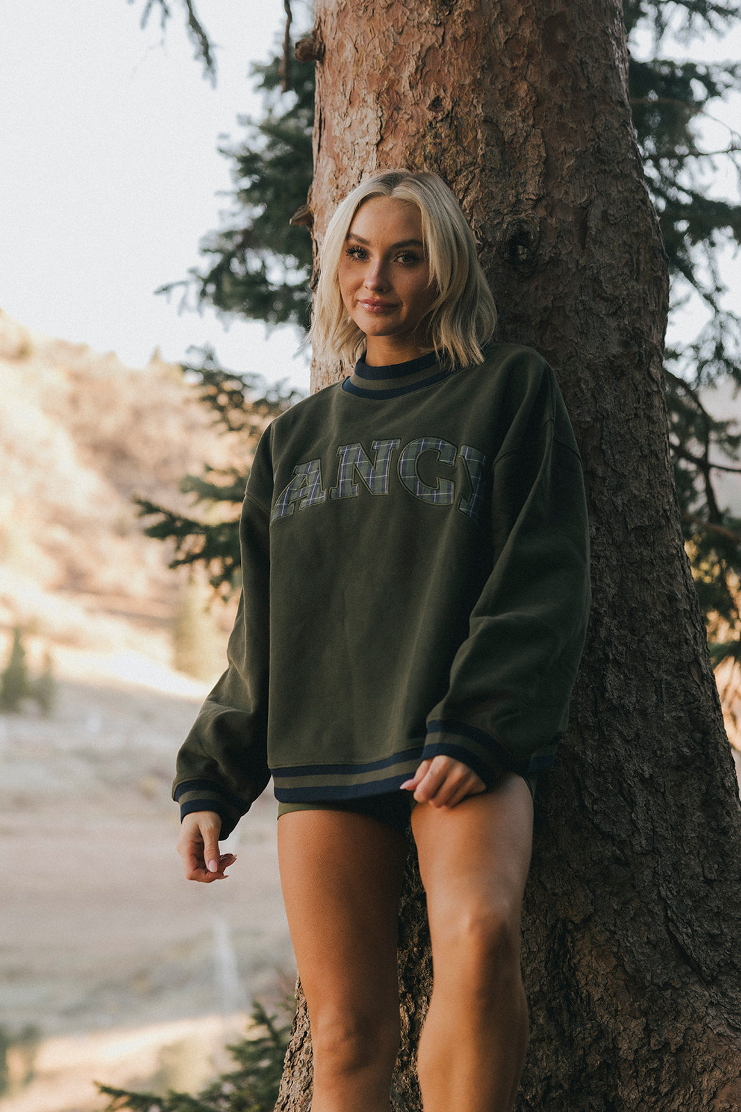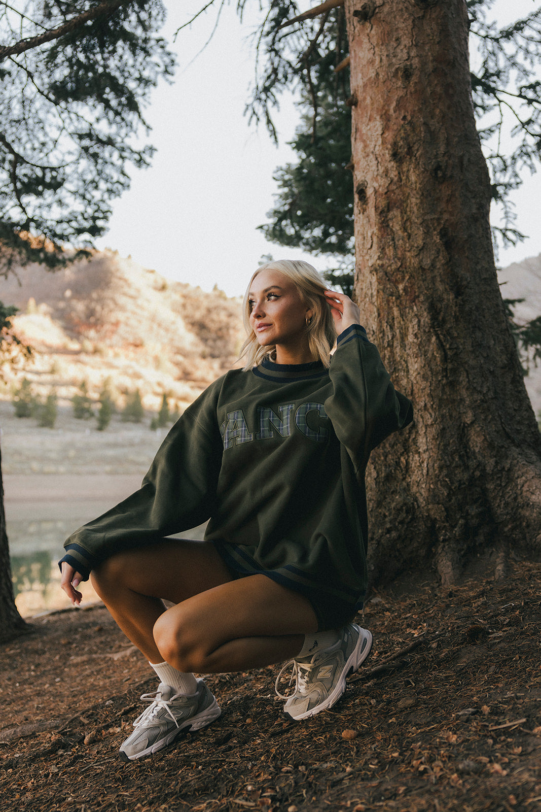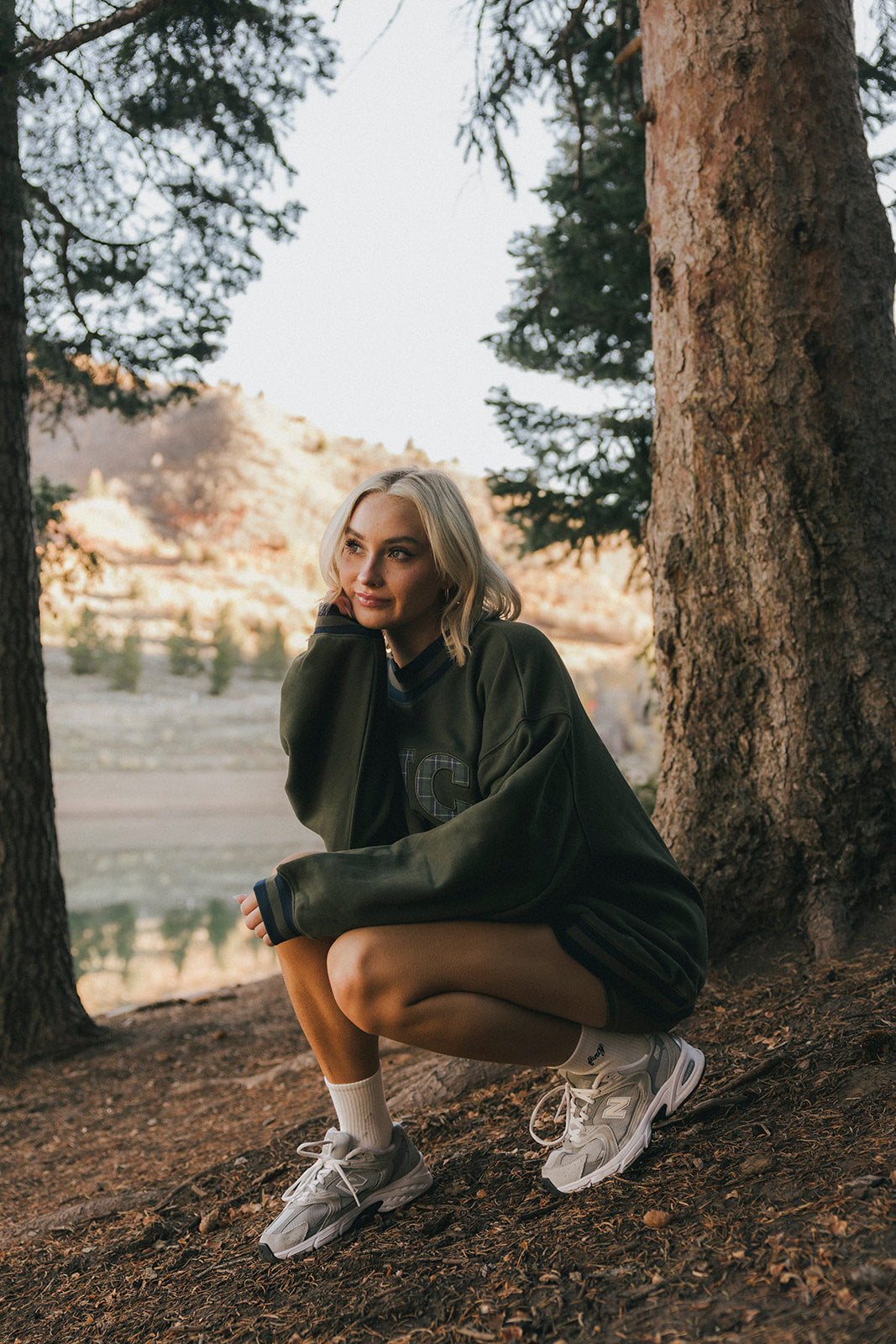 Model is wearing a XS/S mockneck and XS/S shorts.