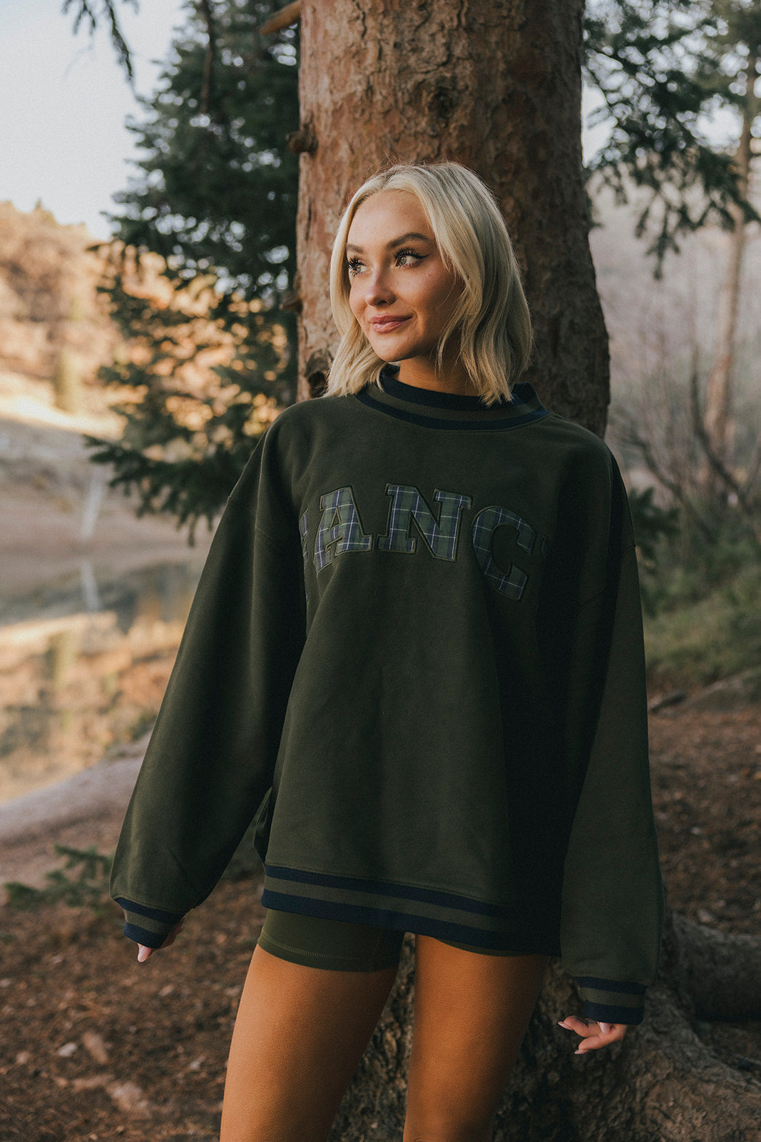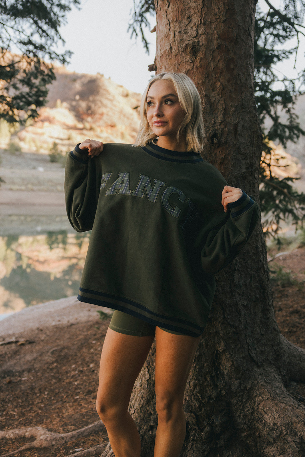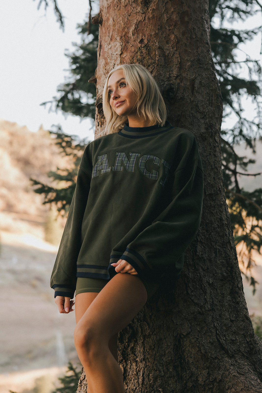 Fancy Oversized Fleece Varsity Mockneck - Alpine Green/Plaid