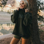 This fleece lined mock neck features an oversized fit for a relaxed, cozy vibe. Crafted with soft, lightweight fleece, it's perfect for lounging, study days, or casual coffee runs, ideal for easing into colder weather.