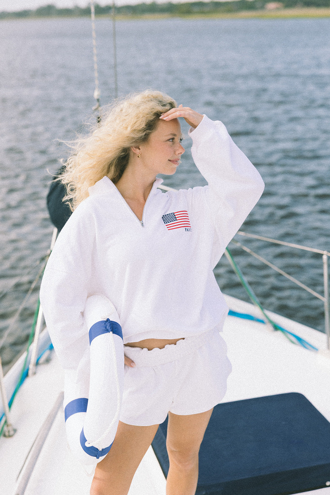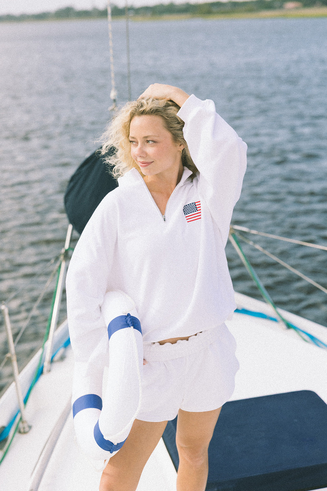Designed with an oversized fit for a relaxed, comfortable feel. Soft, lightweight French terry lining makes this quarter zip pullover perfect for summer.