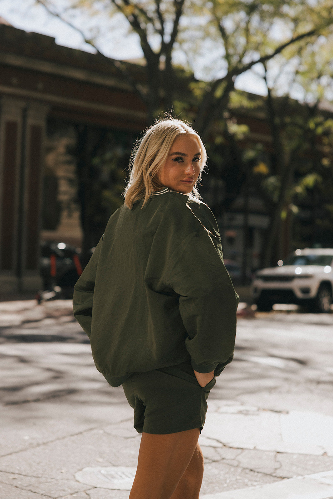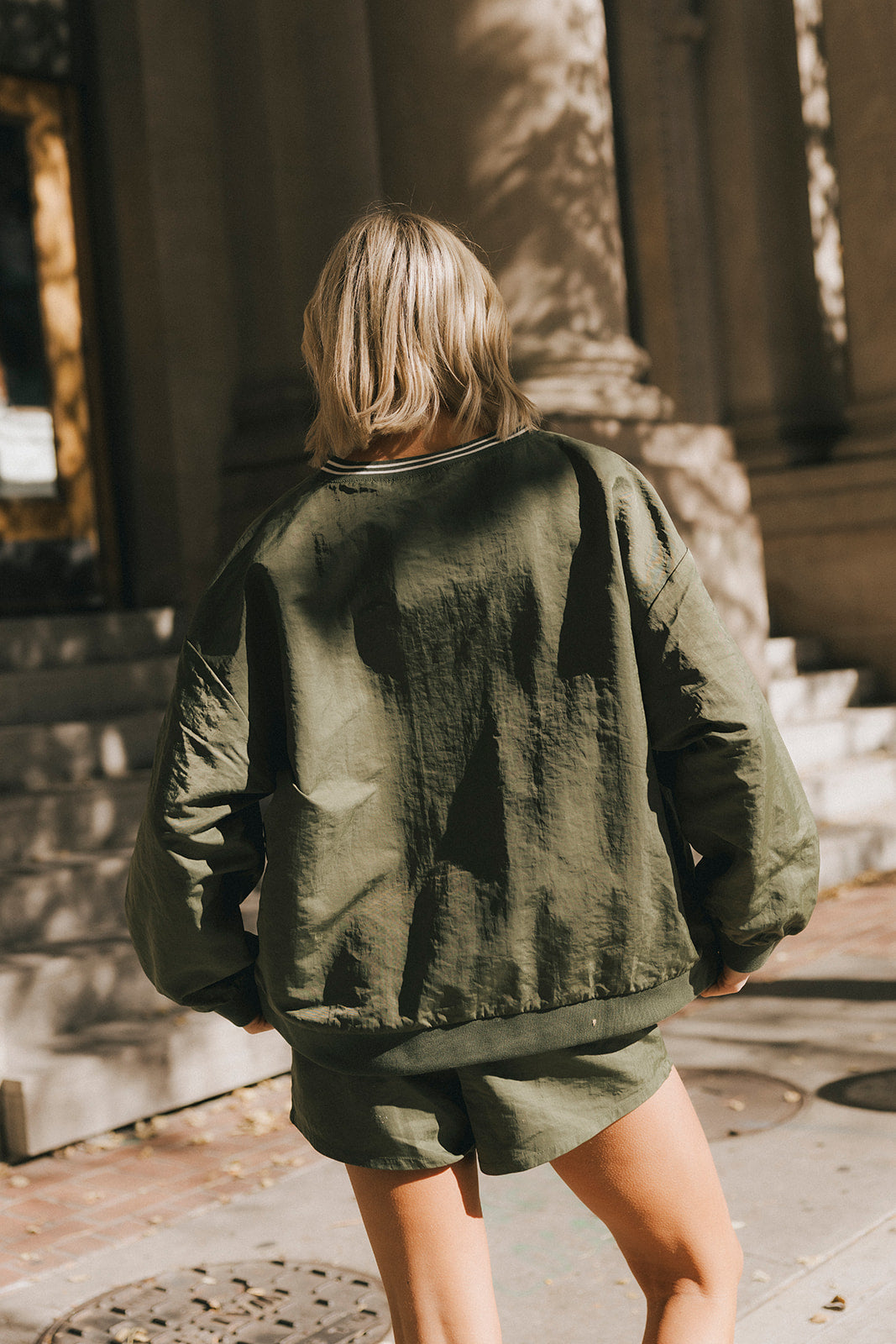 This varsity pullover combines lightweight nylon construction with understated sophistication. Its relaxed fit and breathable material make it an ideal choice for everyday wear—whether you're tackling errands or simply taking time to slow down. The forest green hue pairs seamlessly with your existing wardrobe, layering beautifully under jackets or over fitted pieces. Designed for those who value comfort without compromising on style, this pullover transitions effortlessly from season to season.