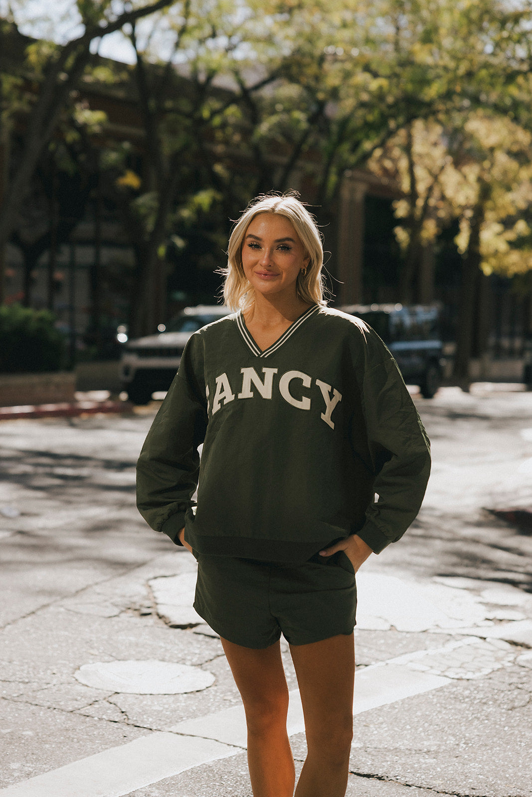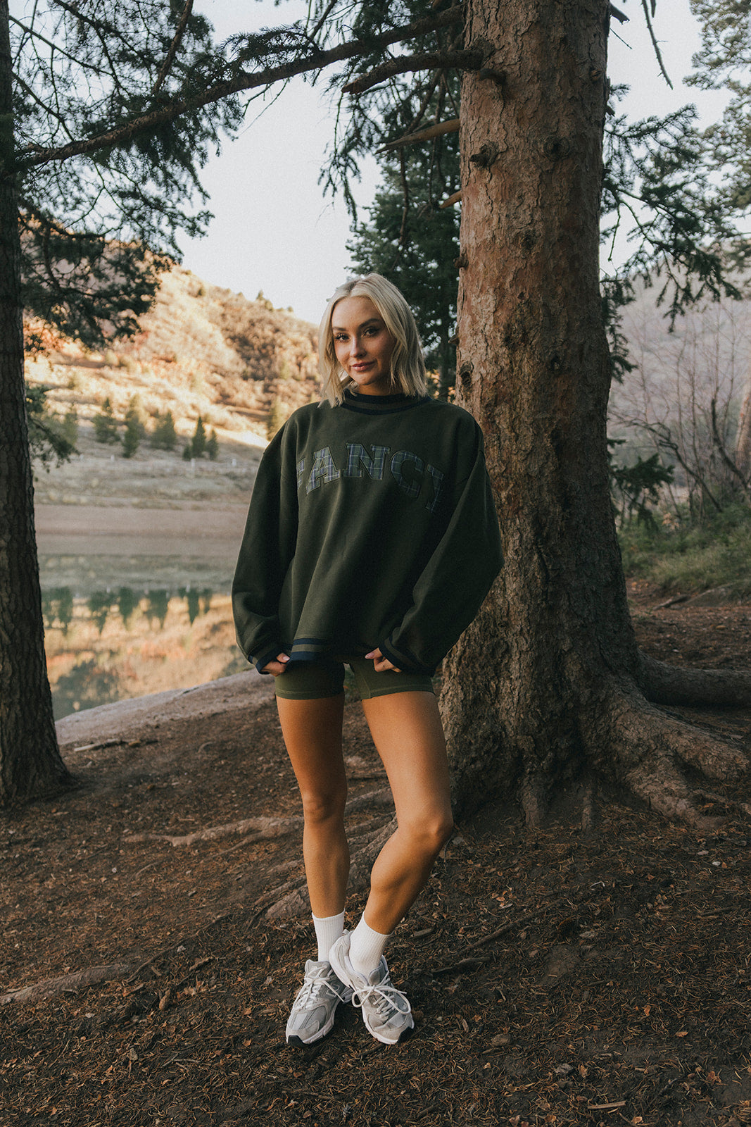 Fancy Oversized Fleece Varsity Mockneck - Alpine Green/Plaid