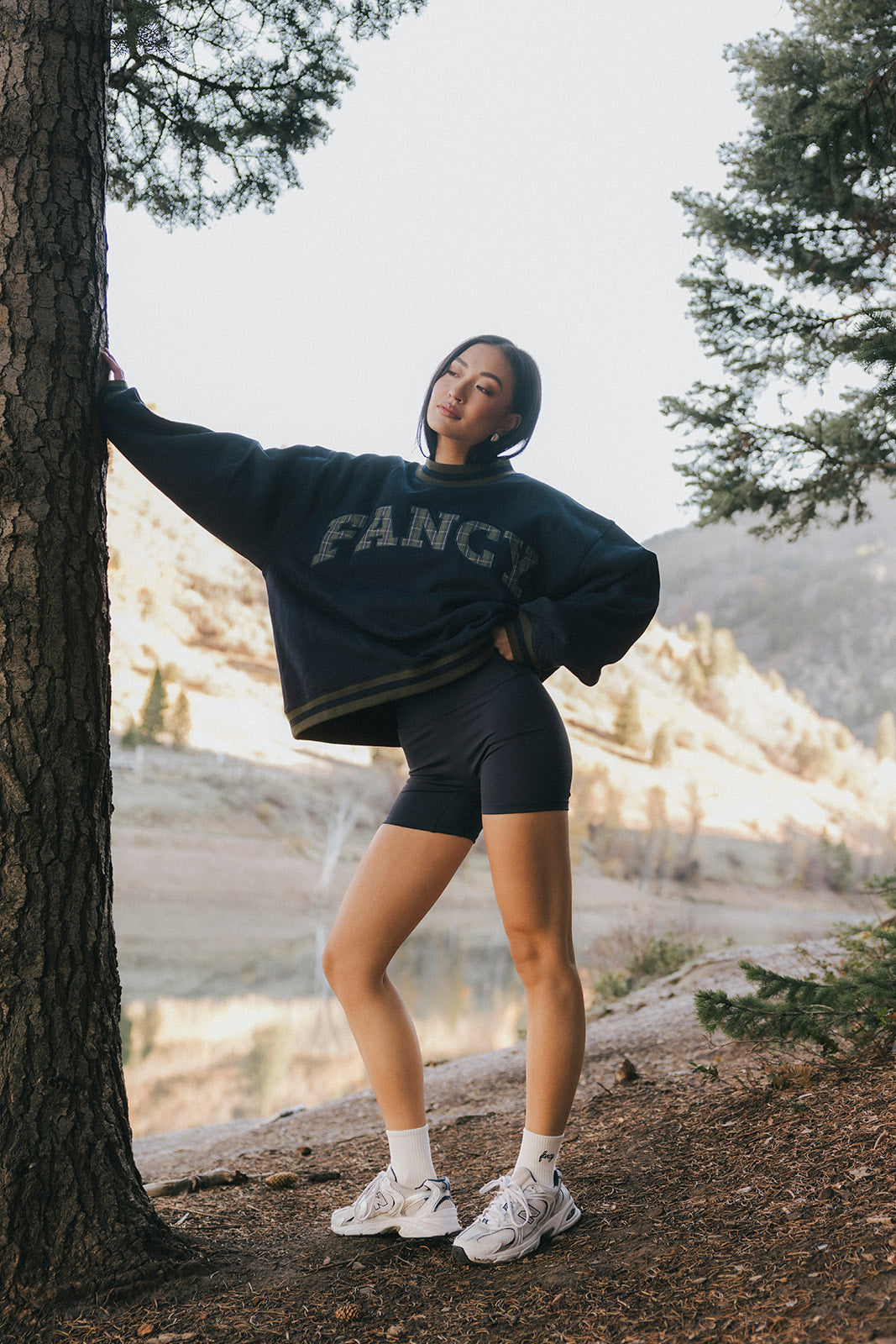 Fancy Oversized Fleece Varsity Mockneck - Autumn Navy/Plaid
