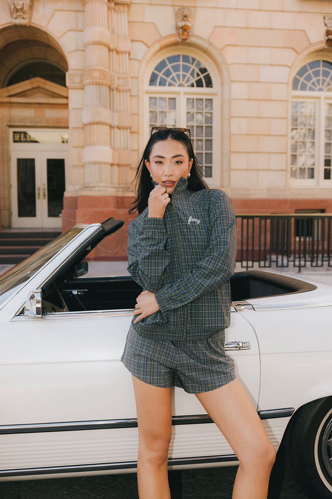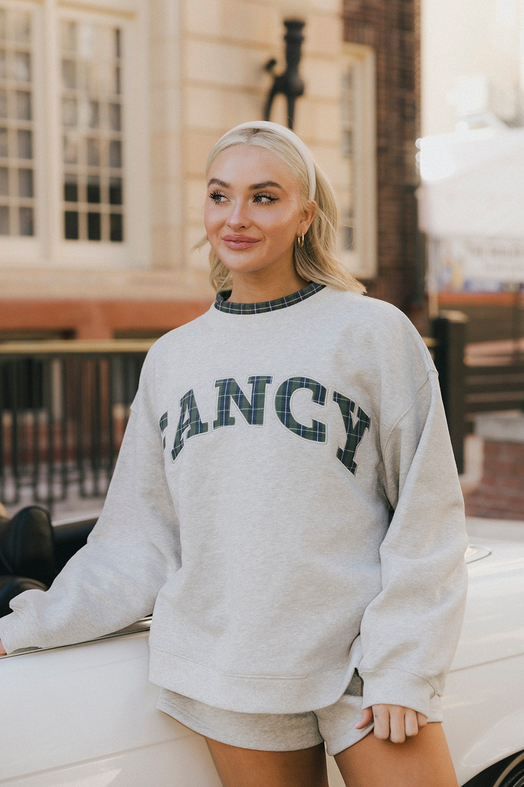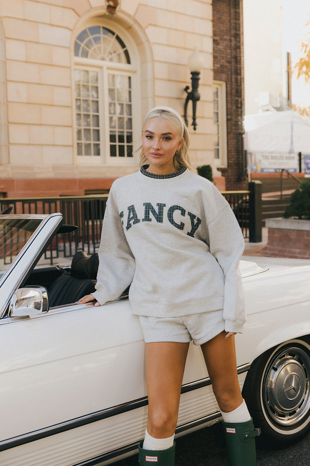 Fancy Oversized Fleece Plaid Collar Mockneck - Heather Grey/Plaid (PREORDER)