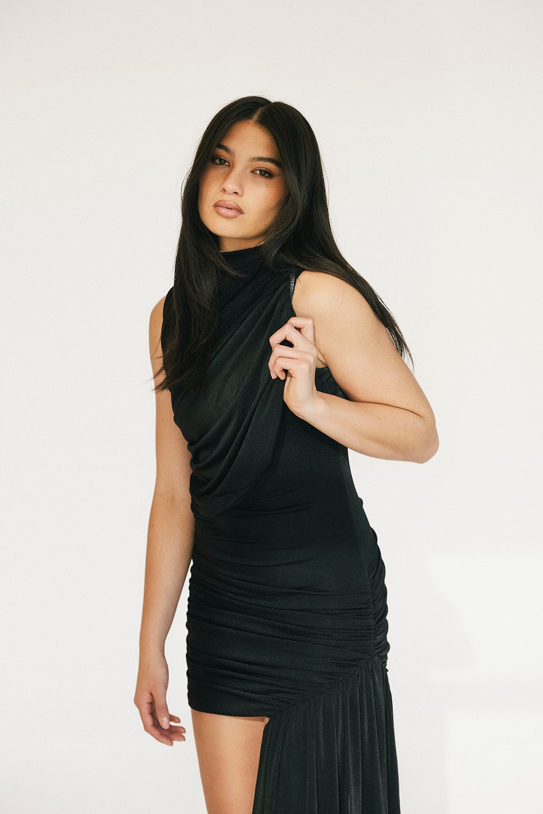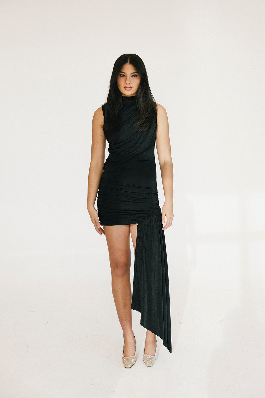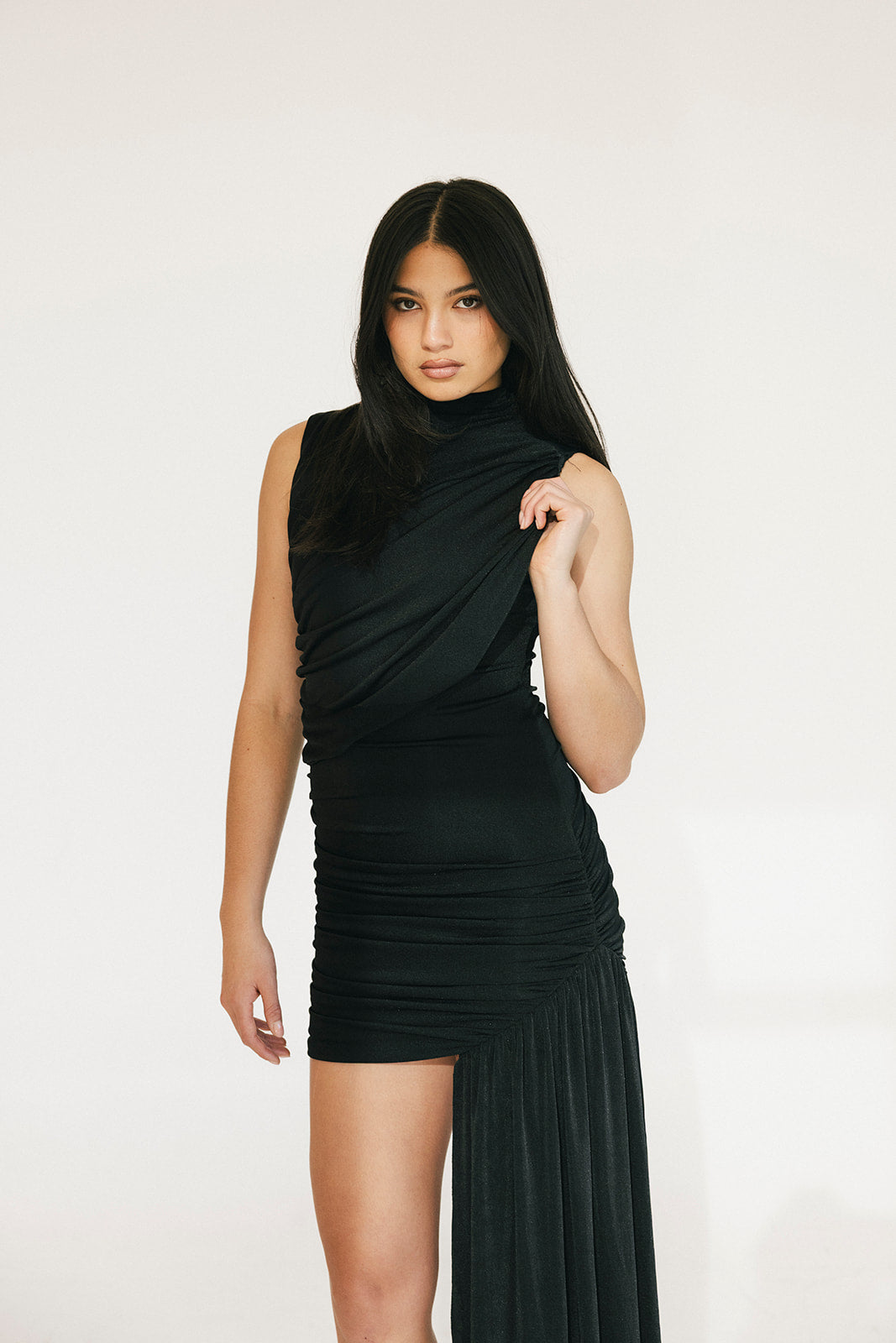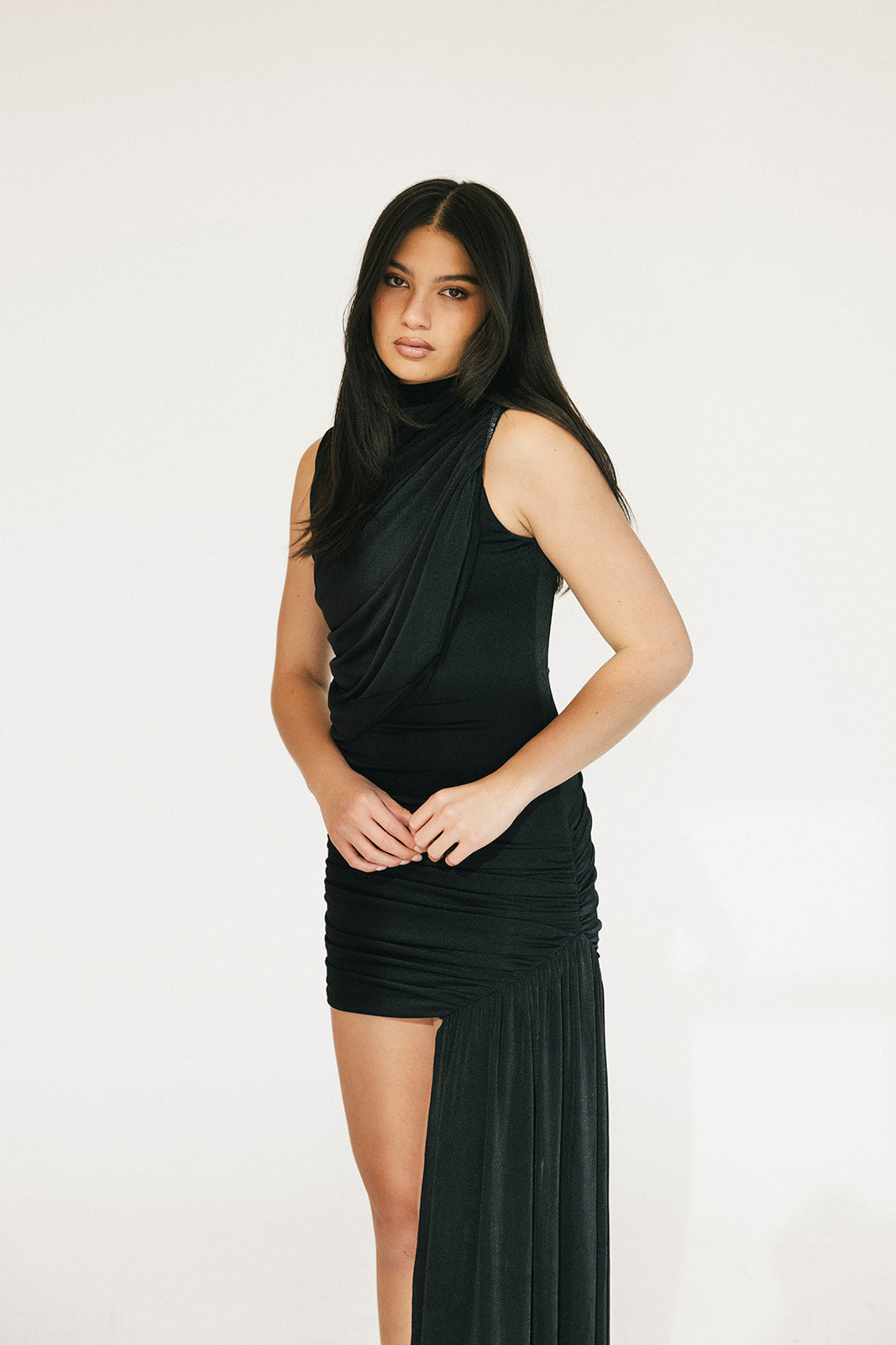 The Ariana Ruched Mini Dress in Black is a stunning one-shoulder design that brings effortless elegance to any occasion. The strategic ruching creates a flattering silhouette while the draped detail adds movement and sophistication. Perfect for date nights, cocktail events, or when you want to feel confident and put-together, this versatile piece transitions beautifully from season to season. The rich mocha tone complements all skin tones and pairs easily with your favorite accessories.