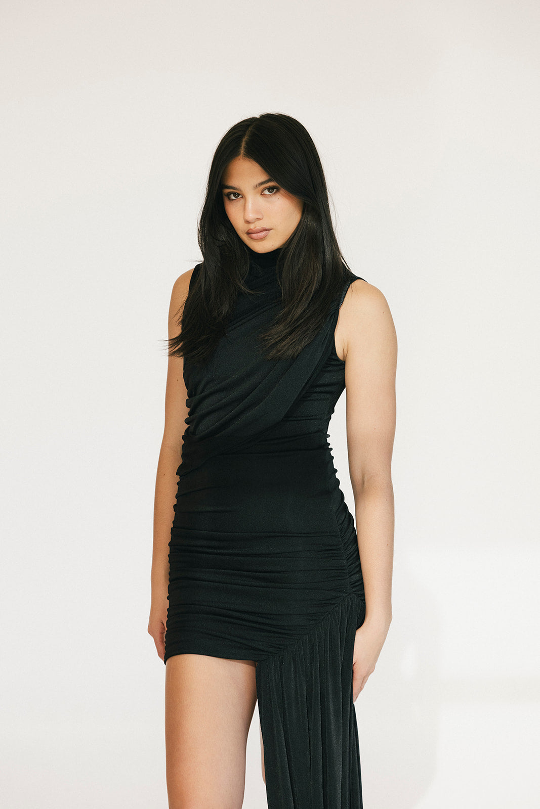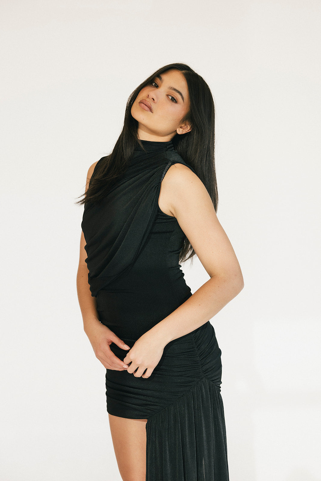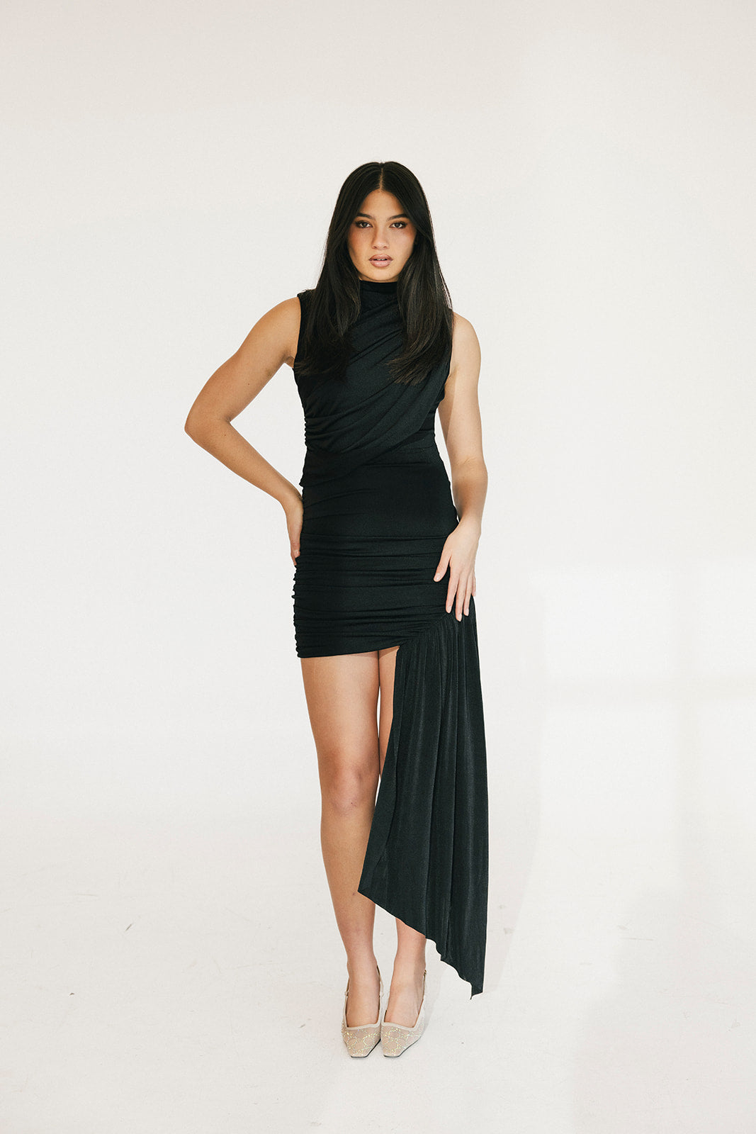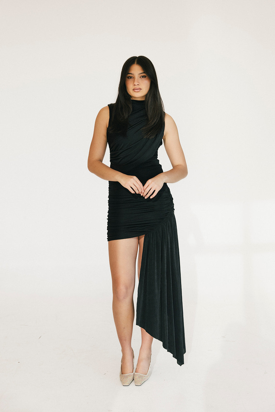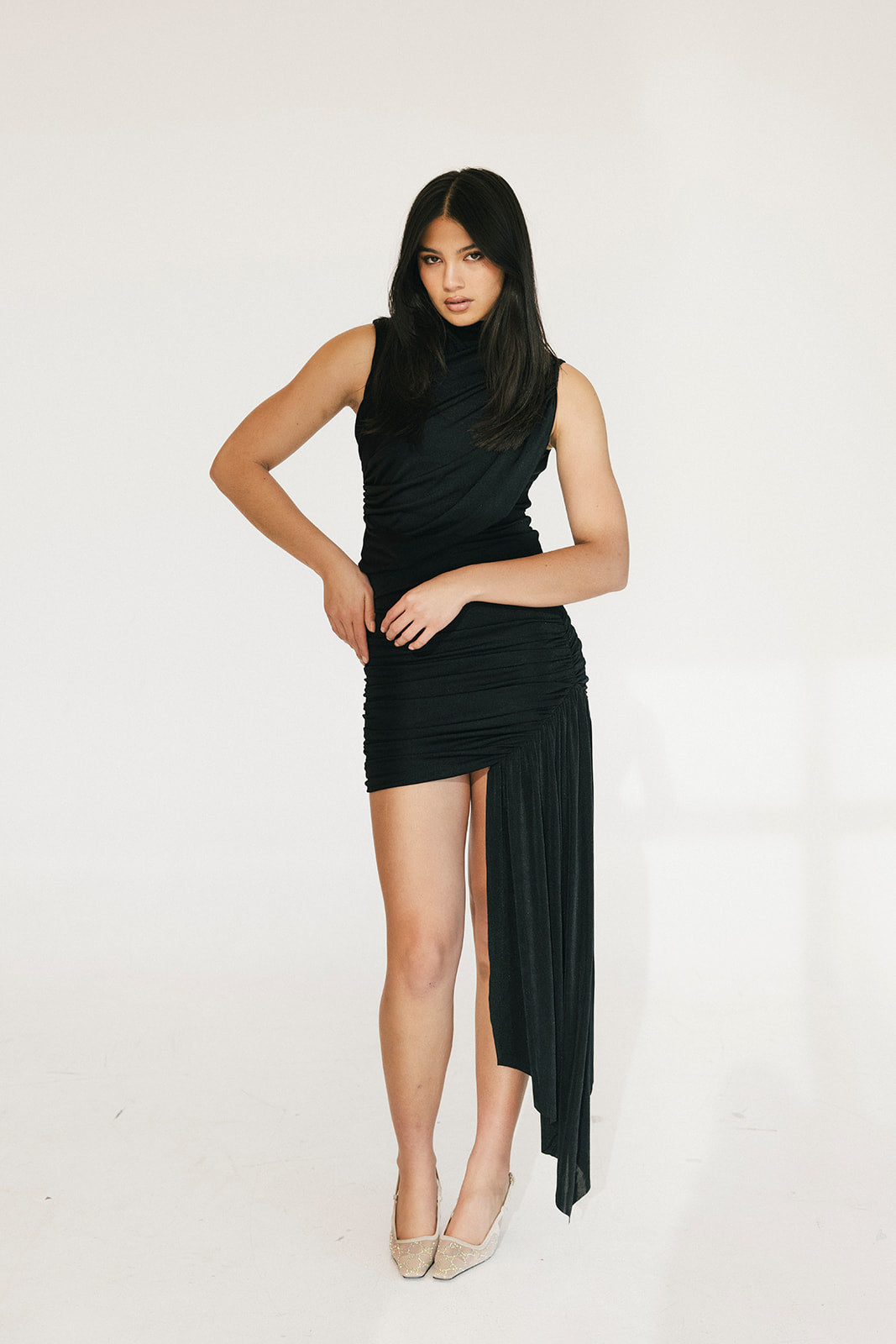 The Ariana Ruched Mini Dress in Black is a stunning one-shoulder design that brings effortless elegance to any occasion. The strategic ruching creates a flattering silhouette while the draped detail adds movement and sophistication. Perfect for date nights, cocktail events, or when you want to feel confident and put-together, this versatile piece transitions beautifully from season to season. The rich mocha tone complements all skin tones and pairs easily with your favorite accessories.