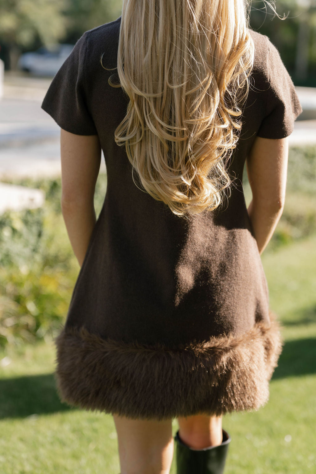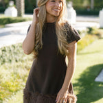 Emmy Faux Fur Knit Mini Dress - Brown