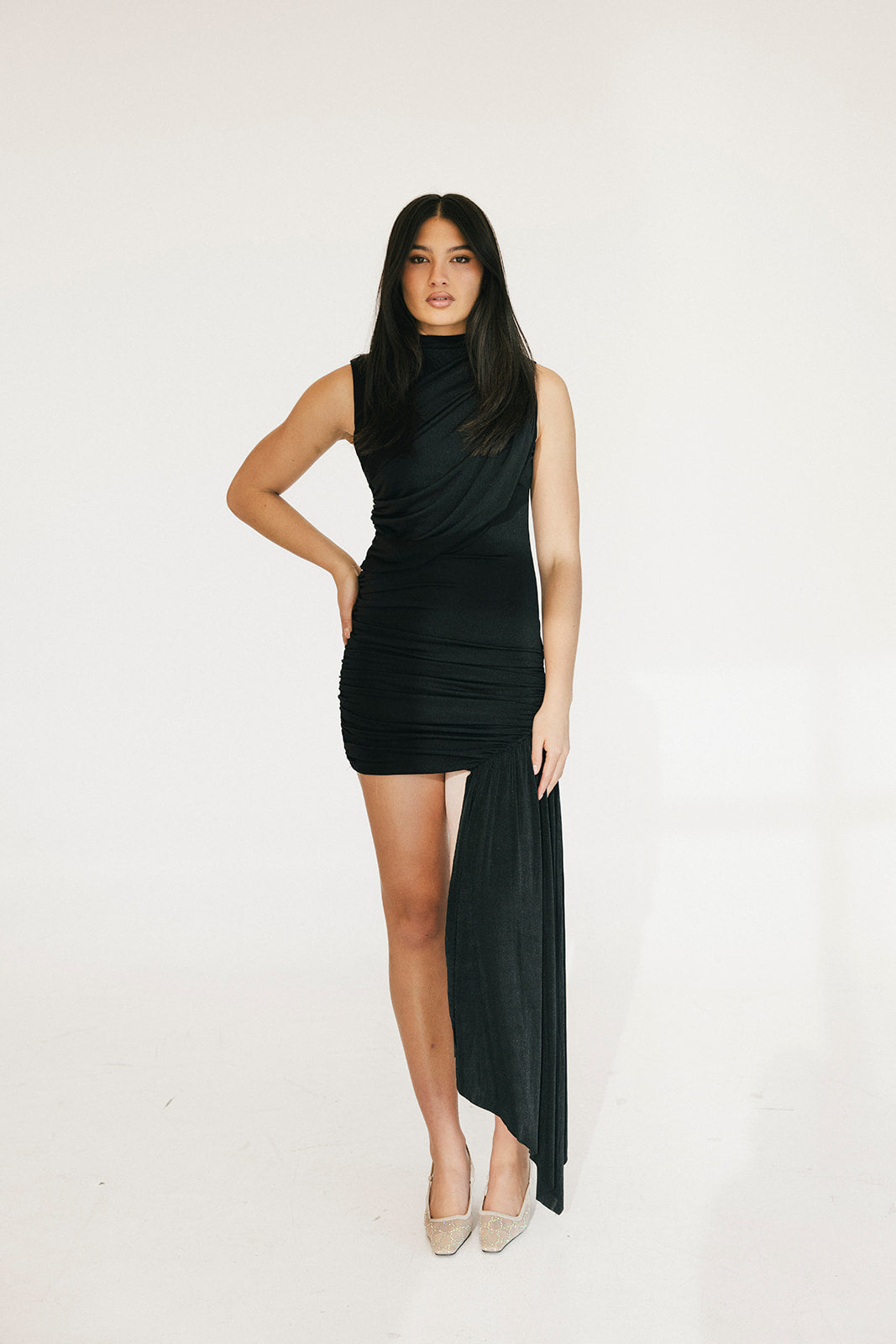 Jocelyn Puff Sleeve Bubble Mini Dress - Black