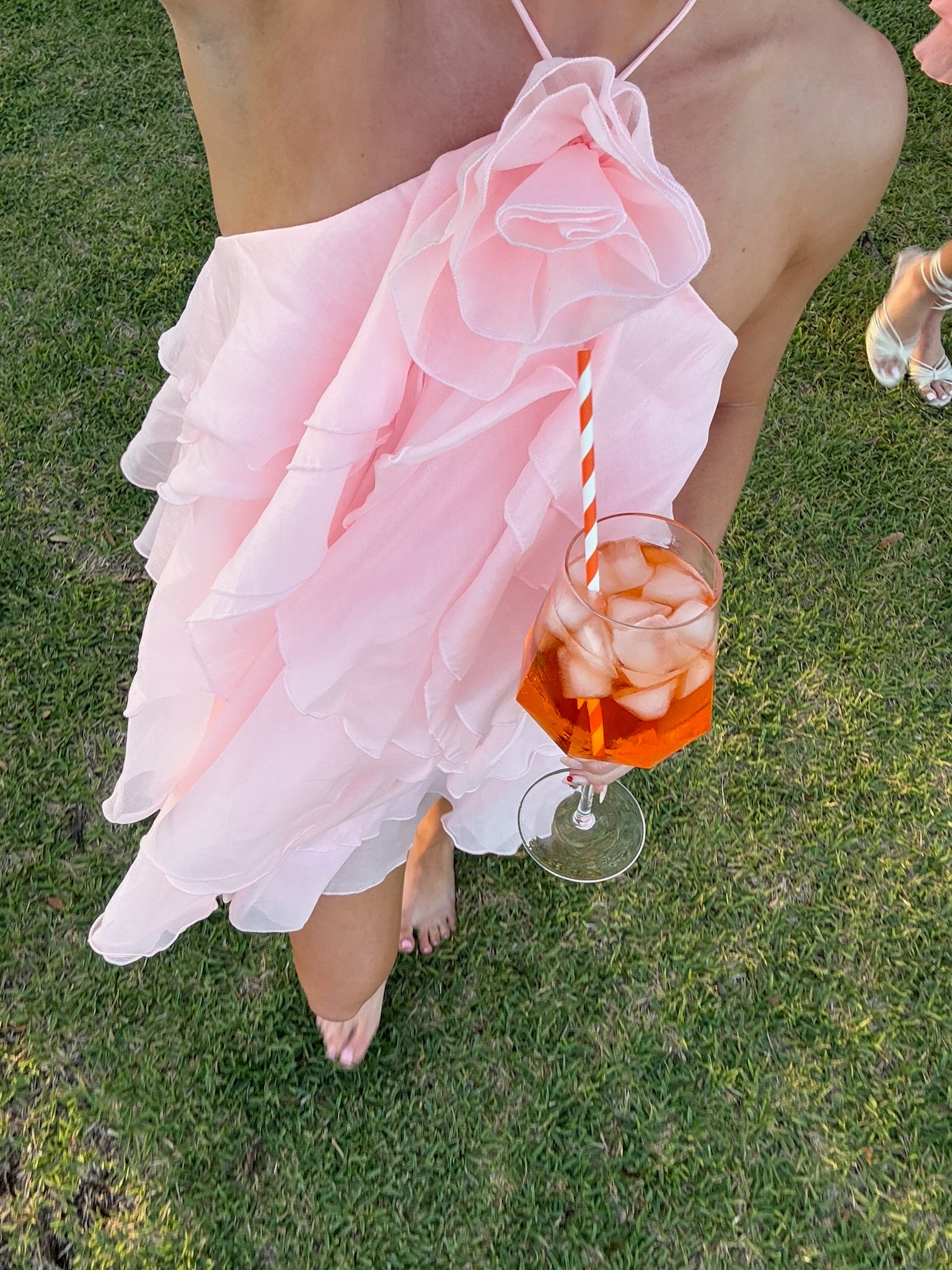 Merlot Floral Ruffle Mini Dress - Light Pink
