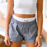 Introducing the Emmy Boxer Shorts in black. Designed with double elastic waistband and boxer stripe, these shorts offer maximum comfort and style. Made from high-quality materials, they are durable and long-lasting. Enhance your wardrobe with these versatile and trendy shorts.