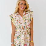 Erin Floral Button Down Romper - Powder Pink Flower
