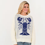 Evelyn Chunky Knit Lobster Sweater-Cream/Blue