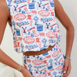 The Game Day Mini Skirt Set in powder blue and red features built-in shorts for added comfort and confidence. This stylish set supports your active game day celebrations while providing a secure fit, so you can focus on enjoying every moment without worry. Perfect for showing your team spirit with ease and flair.