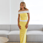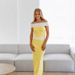 This Indie Contrast Two Piece Set in pretty lemon is the perfect addition to your wardrobe. It features a flattering contrast design that accentuates your curves, providing a sophisticated and stylish look. Its versatile two-piece style allows for effortless mix and match options, making it a must-have for any fashion-forward individual.