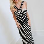 The Jordyn Striped Knit Midi Dress features a flattering criss-cross top and a classic black and white striped pattern. Its soft knit fabric provides comfortable wear throughout the day, while the midi length offers a versatile style suitable for both casual outings and dressier occasions. This dress combines effortless elegance with cozy comfort to support your confidence in any setting.