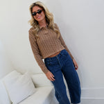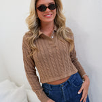 This long sleeve button-down knit top features a classic collar for a polished look. Its soft, stretchy fabric ensures comfortable all-day wear, while the button-down front offers easy styling and adjustable coverage. Perfect for layering or wearing on its own, this versatile piece supports a seamless transition from casual to refined outfits.
