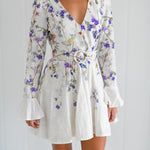 Kiera Long Puff Sleeve Floral Mini - White Multi