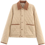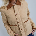 Kiley Corduroy Collar Quilted Jacket - Khaki