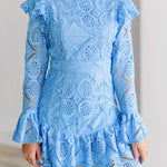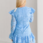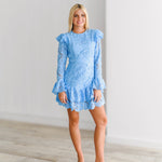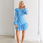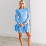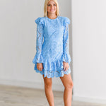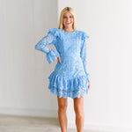 Kimmy Lace Ruffle Long Sleeve Mini Dress-Skyblue