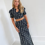Lauren Bubble Sleeve Maxi Skirt Set- Black/Cream