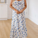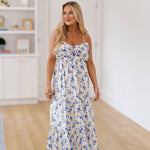 Lilly Bow Midi Dress-Cream/Blue Floral