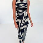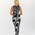 Maddie Abstract Fitted Maxi Dress- Black/White