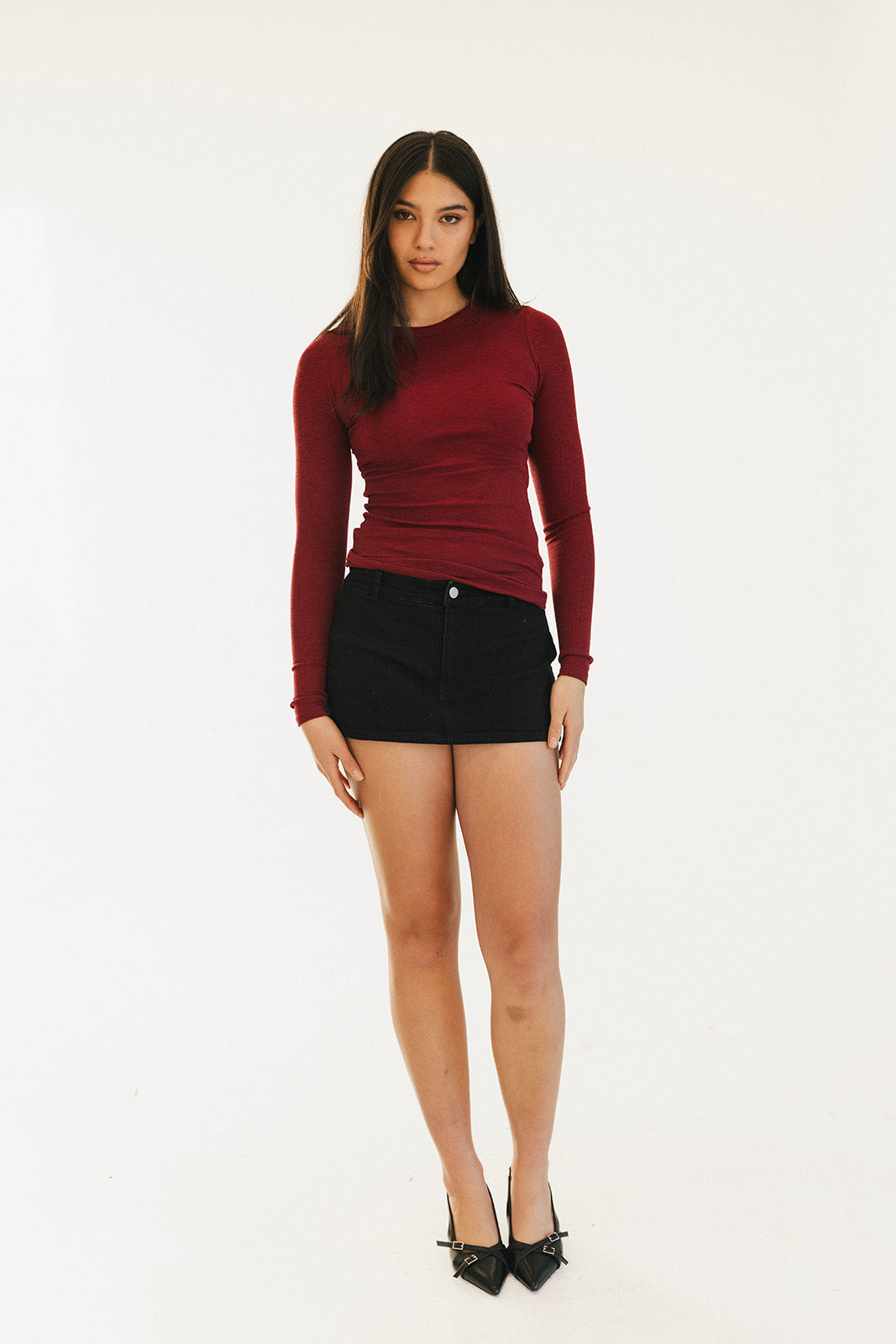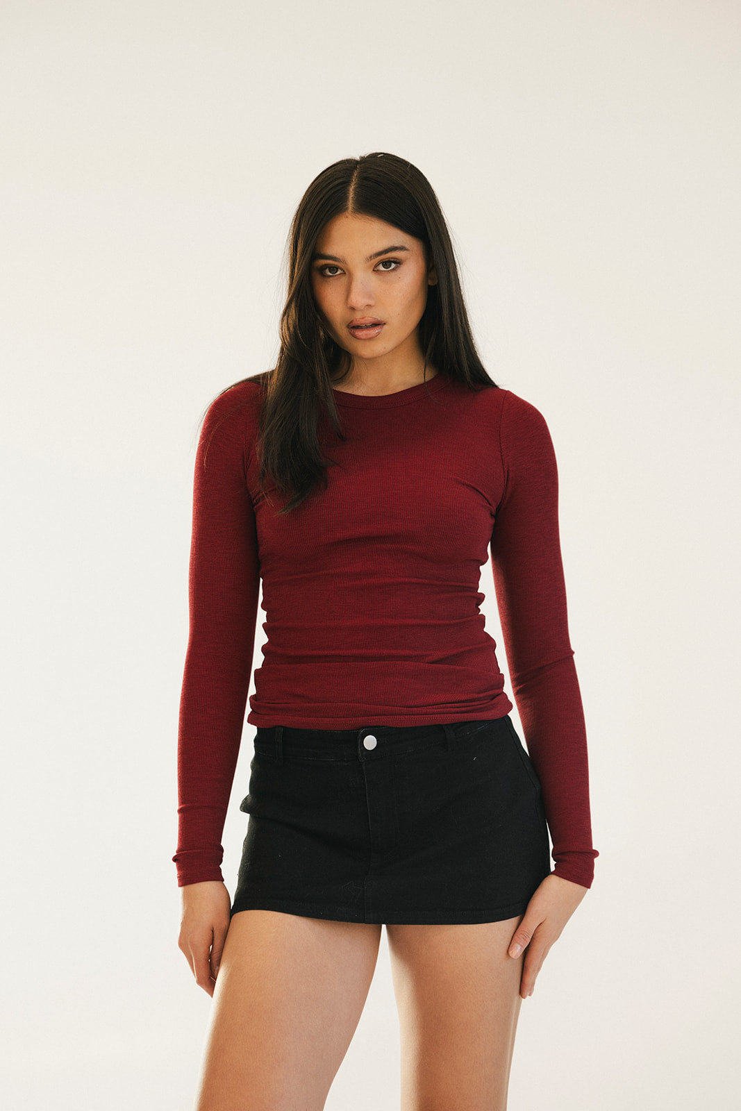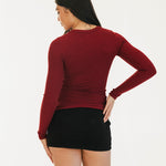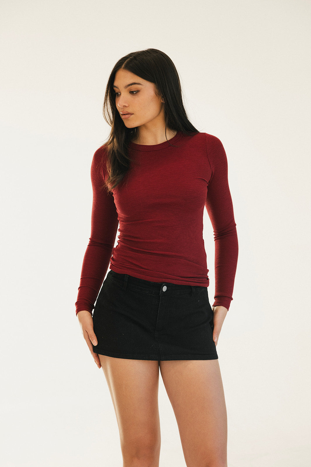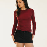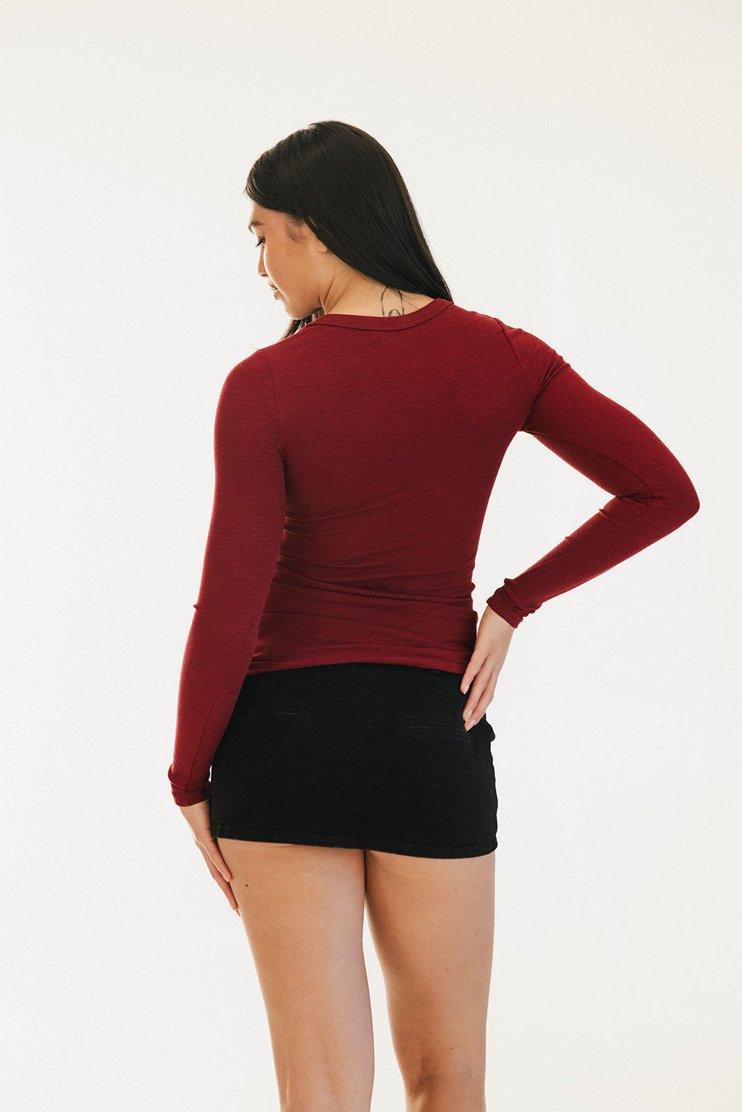 Embrace effortless elegance with the Abbey Long Sleeve Top in Scarlet. This thoughtfully designed piece combines a soft ribbed knit fabric that hugs your silhouette beautifully with generously long sleeves that add a contemporary touch. Perfect for layering or wearing solo, the Abbey delivers both comfort and style for your everyday wardrobe. Whether you're dressing up or keeping it casual, this versatile top supports your personal style with its flattering fit and cozy appeal.