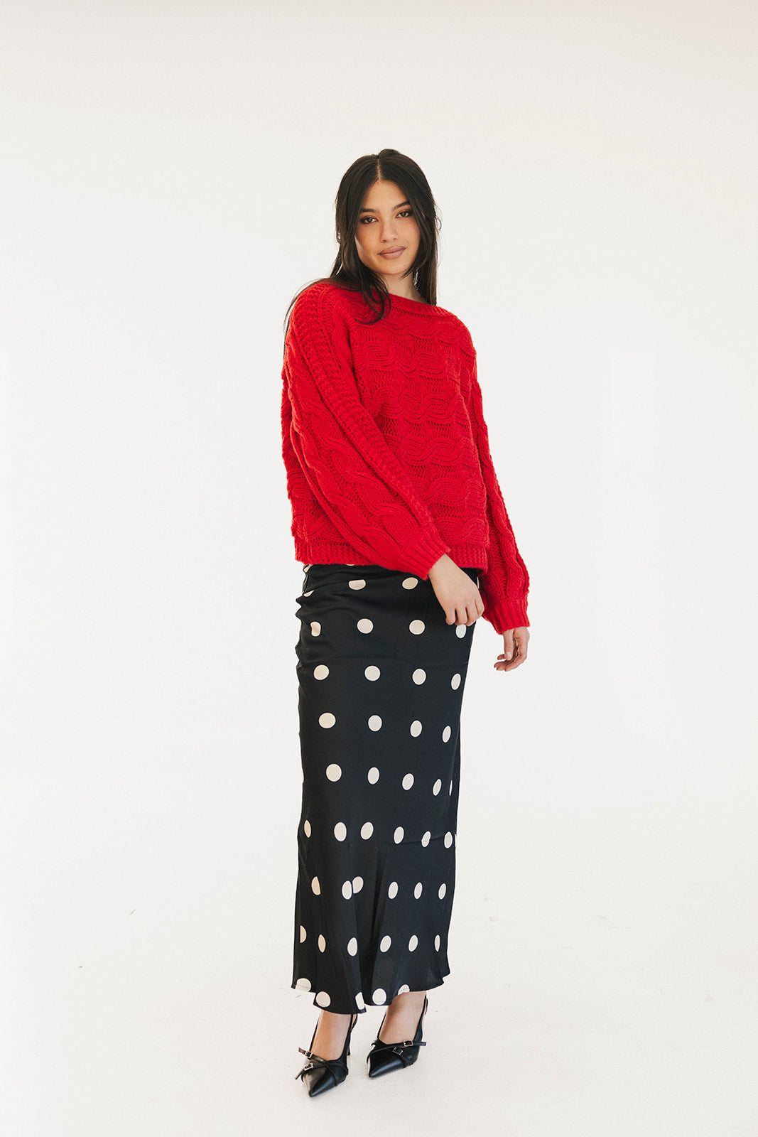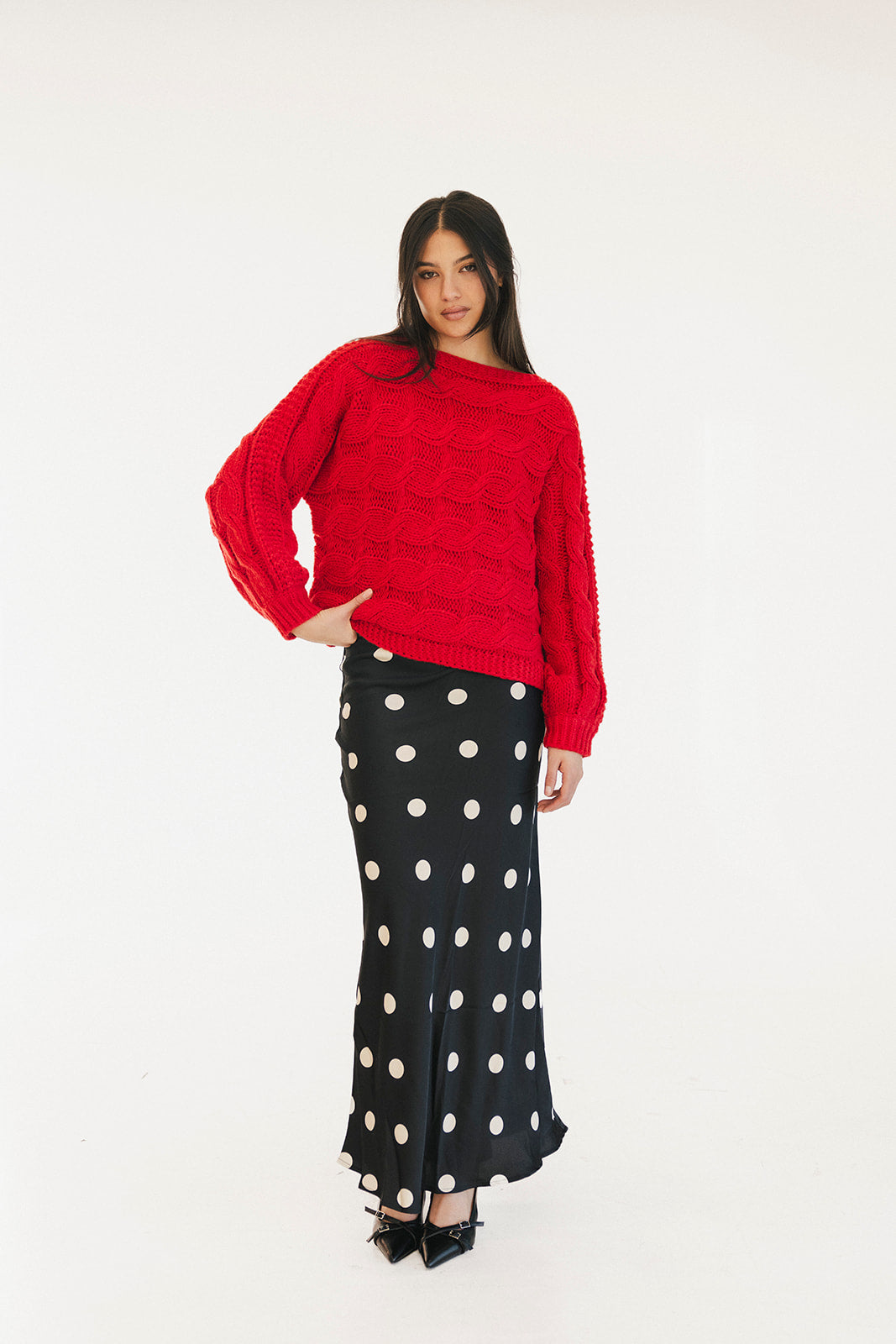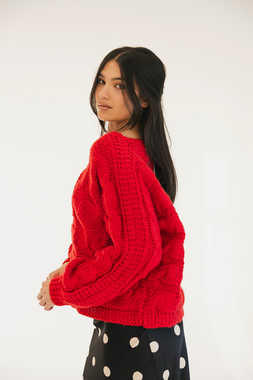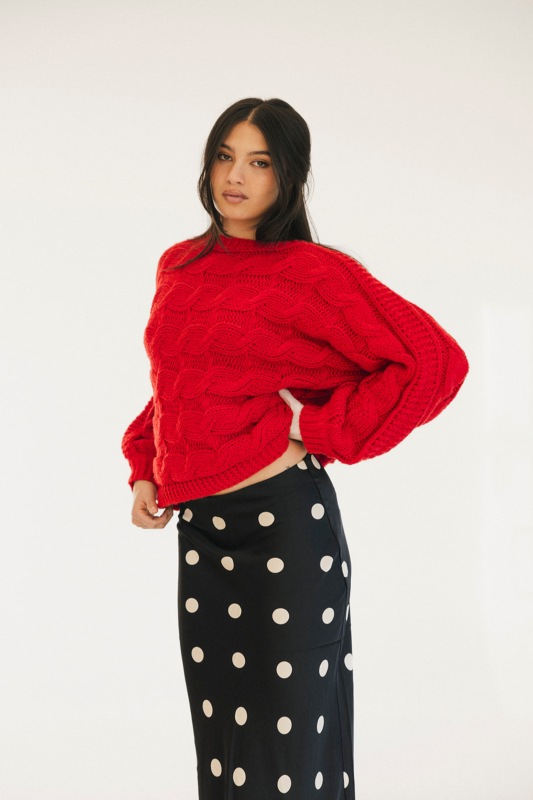 Wrap yourself in comfort with the Catie Braided Knit Sweater Top. This cozy essential features a textured braid knit design paired with ribbed detailing for a flattering, structured fit. The soft, breathable fabric makes it perfect for layering or wearing solo, whether you're heading to the office or enjoying a relaxed weekend. The timeless red shade pairs effortlessly with any wardrobe, making this sweater a versatile piece you'll reach for again and again. Embrace warmth without compromising on style.