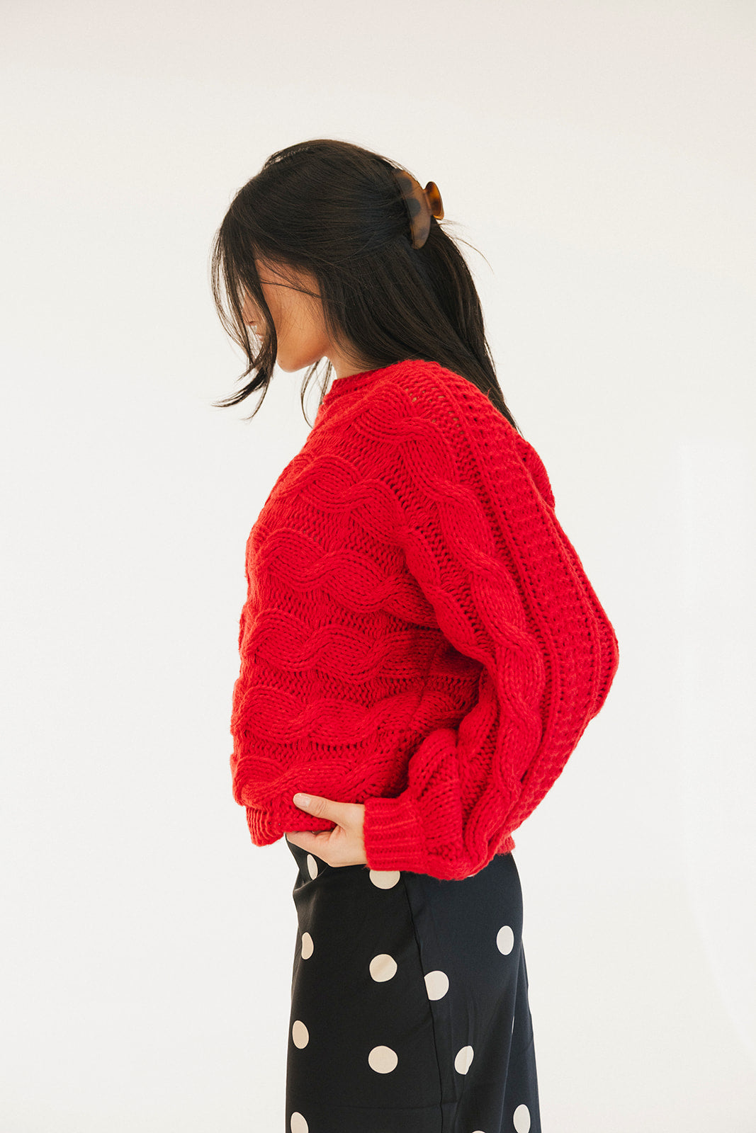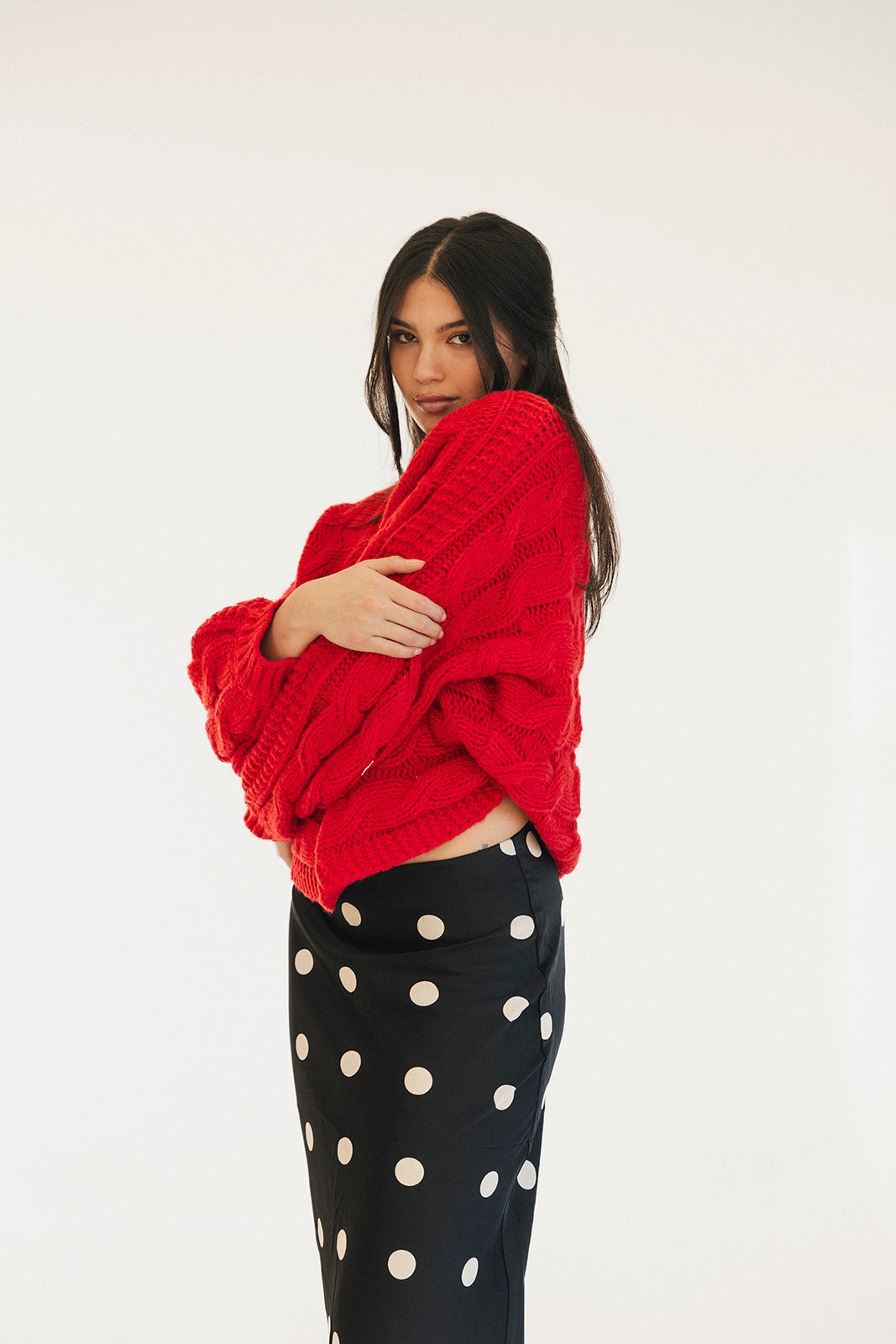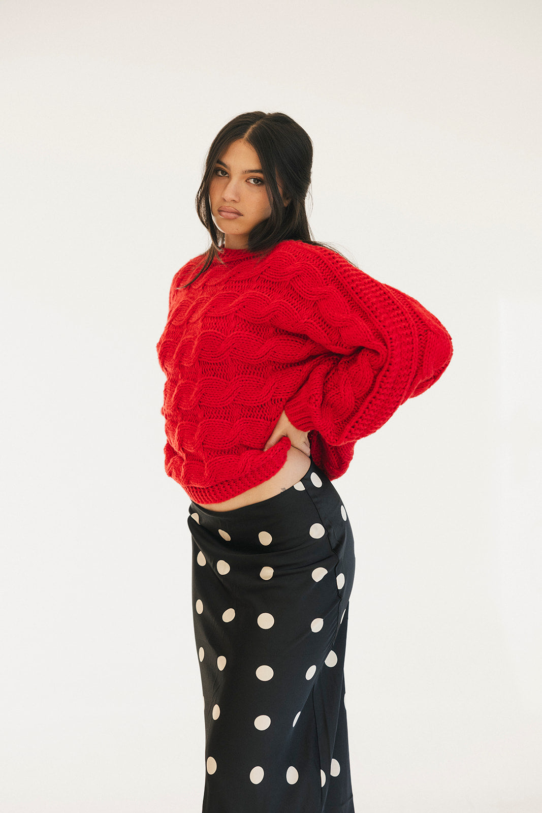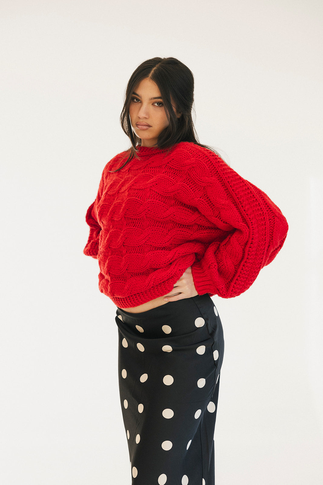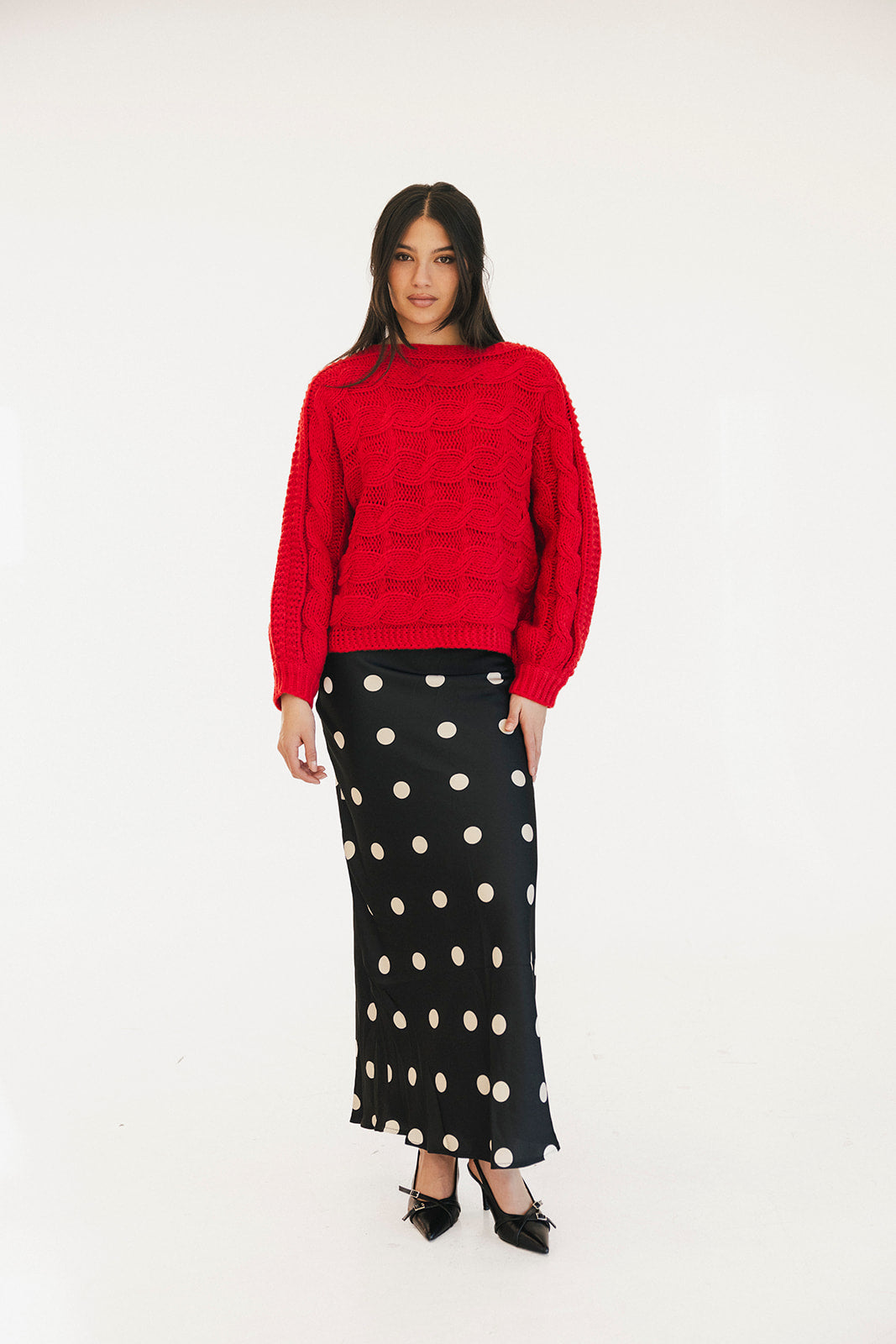 Wrap yourself in comfort with the Catie Braided Knit Sweater Top. This cozy essential features a textured braid knit design paired with ribbed detailing for a flattering, structured fit. The soft, breathable fabric makes it perfect for layering or wearing solo, whether you're heading to the office or enjoying a relaxed weekend. The timeless red shade pairs effortlessly with any wardrobe, making this sweater a versatile piece you'll reach for again and again. Embrace warmth without compromising on style.