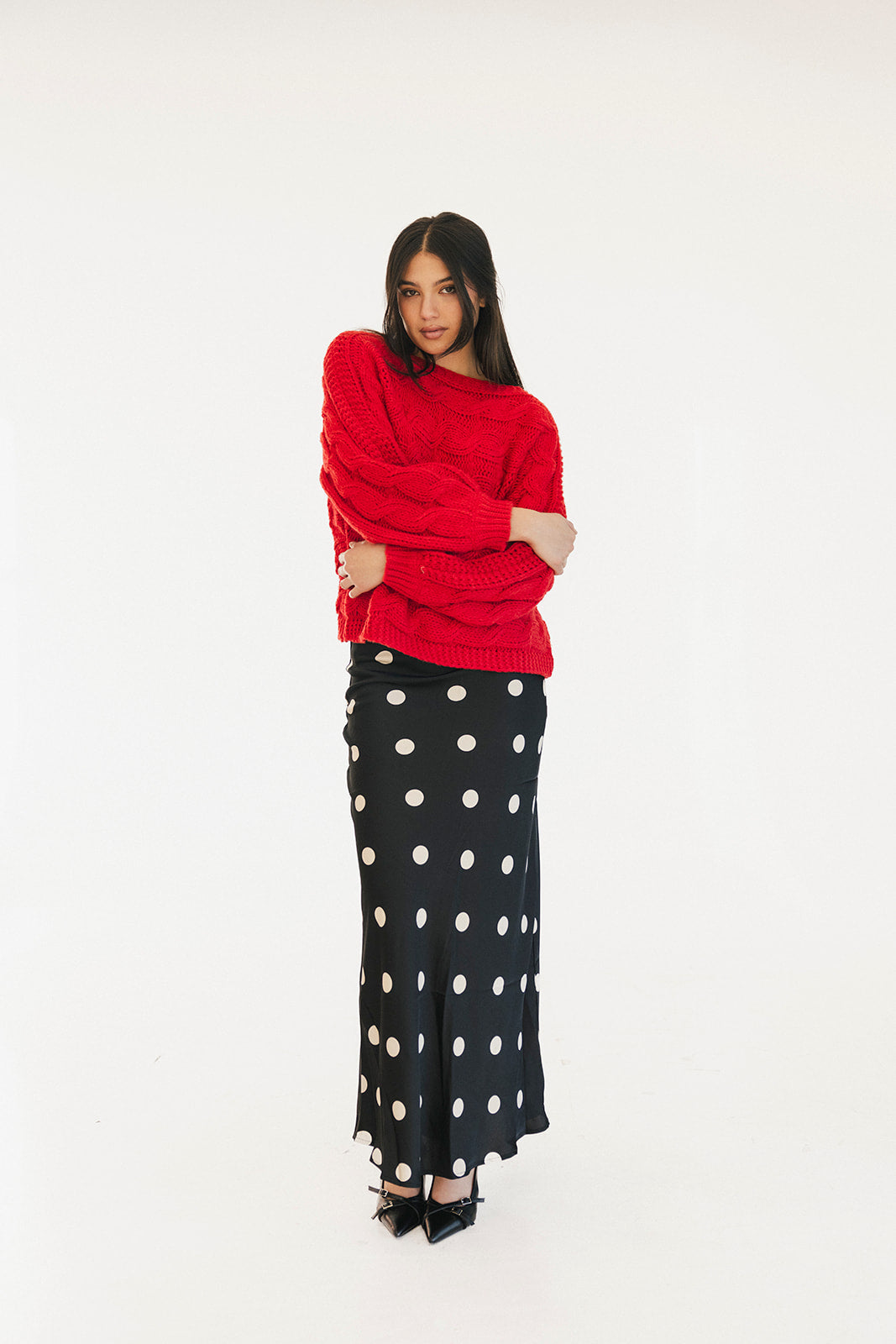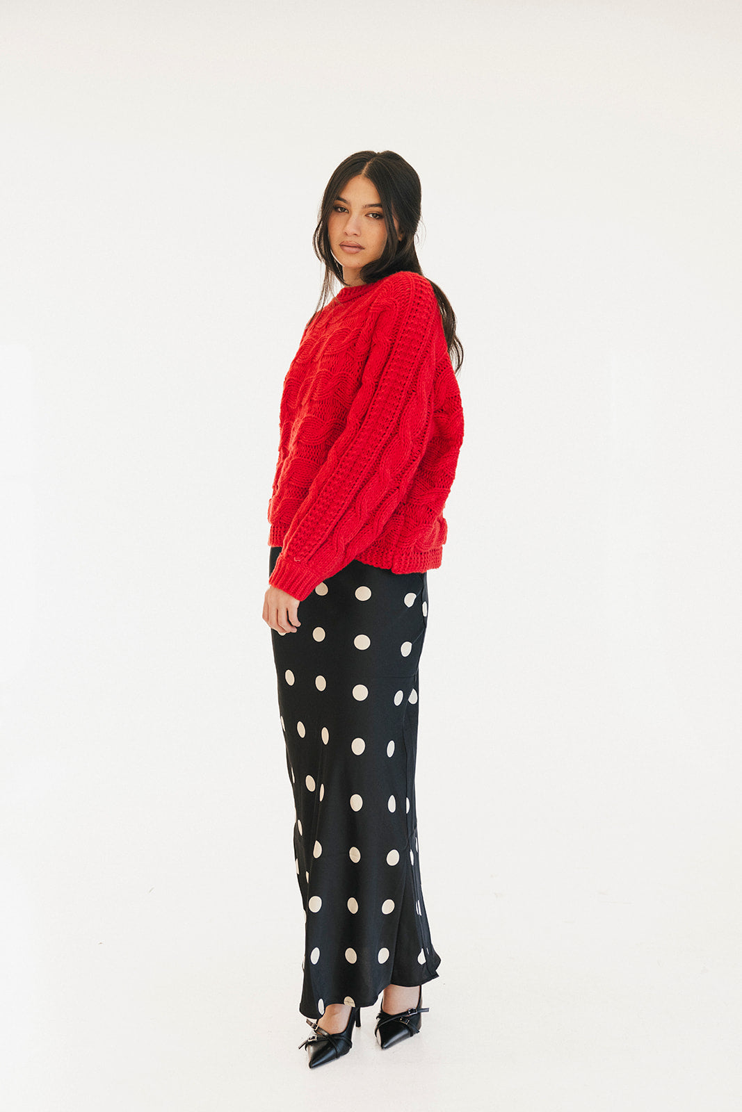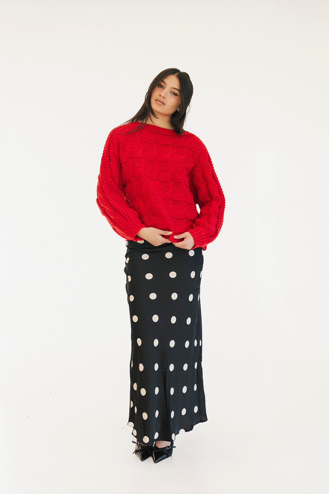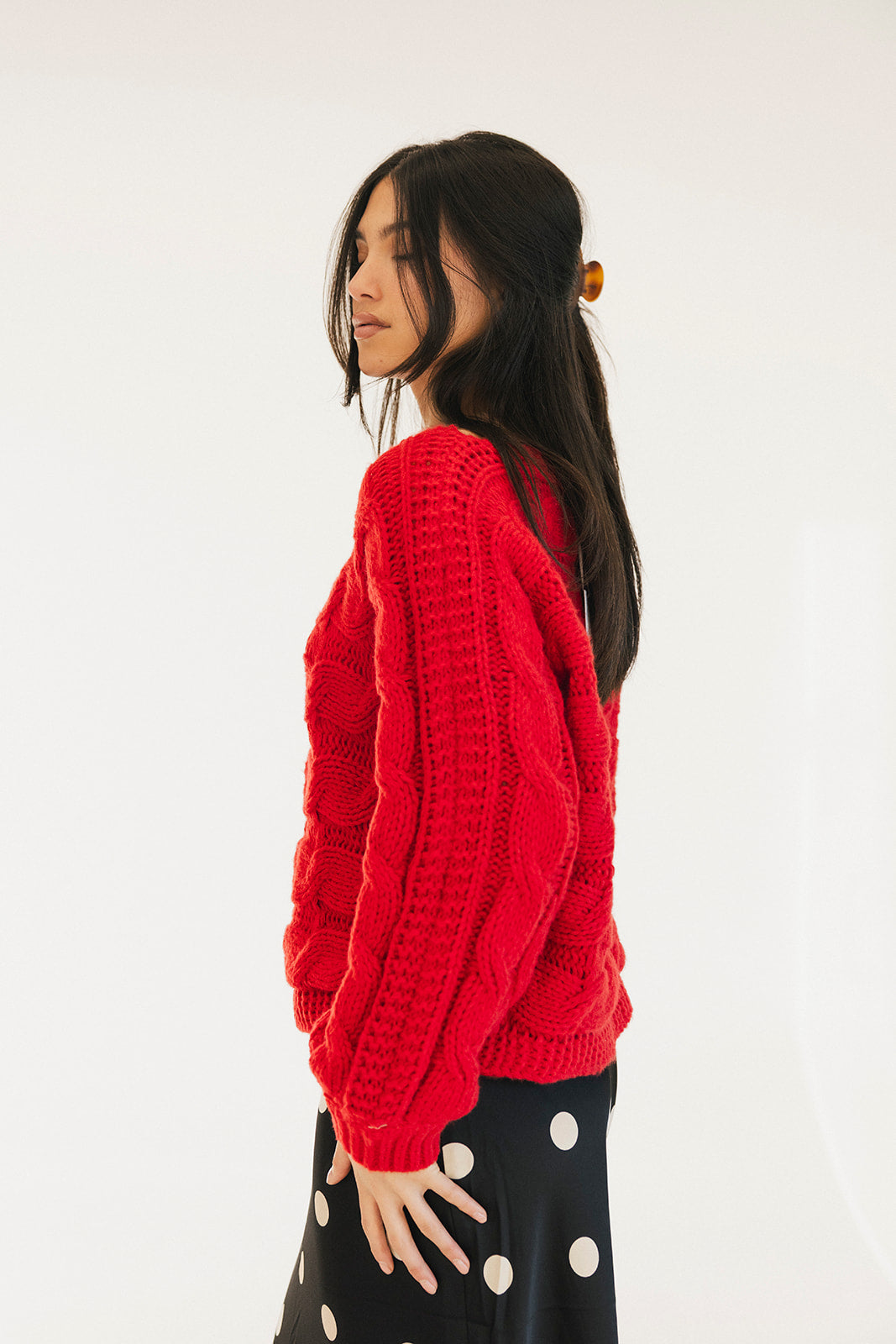 Wrap yourself in comfort with the Catie Braided Knit Sweater Top. This cozy essential features a textured braid knit design paired with ribbed detailing for a flattering, structured fit. The soft, breathable fabric makes it perfect for layering or wearing solo, whether you're heading to the office or enjoying a relaxed weekend. The timeless red shade pairs effortlessly with any wardrobe, making this sweater a versatile piece you'll reach for again and again. Embrace warmth without compromising on style.