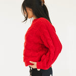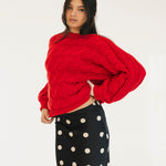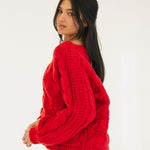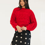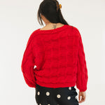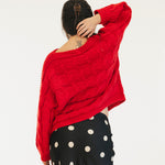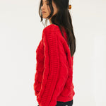 Catie Braided Knit Sweater Top - Red
