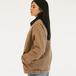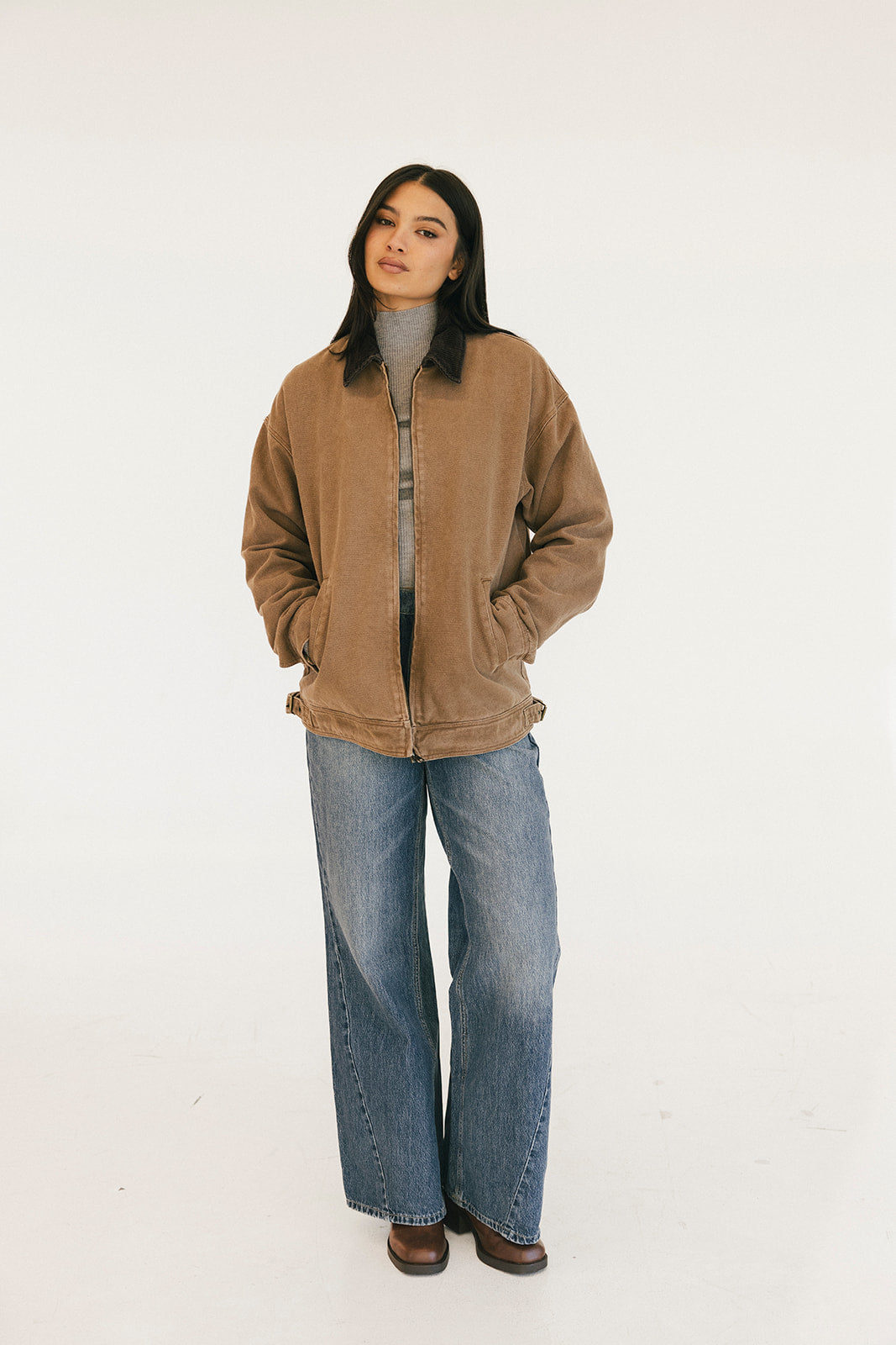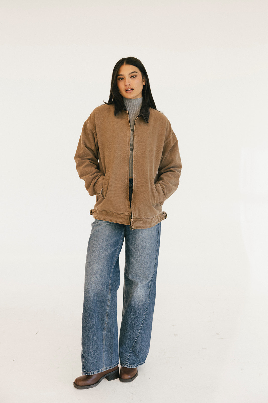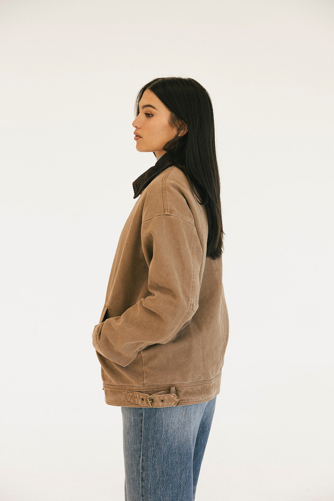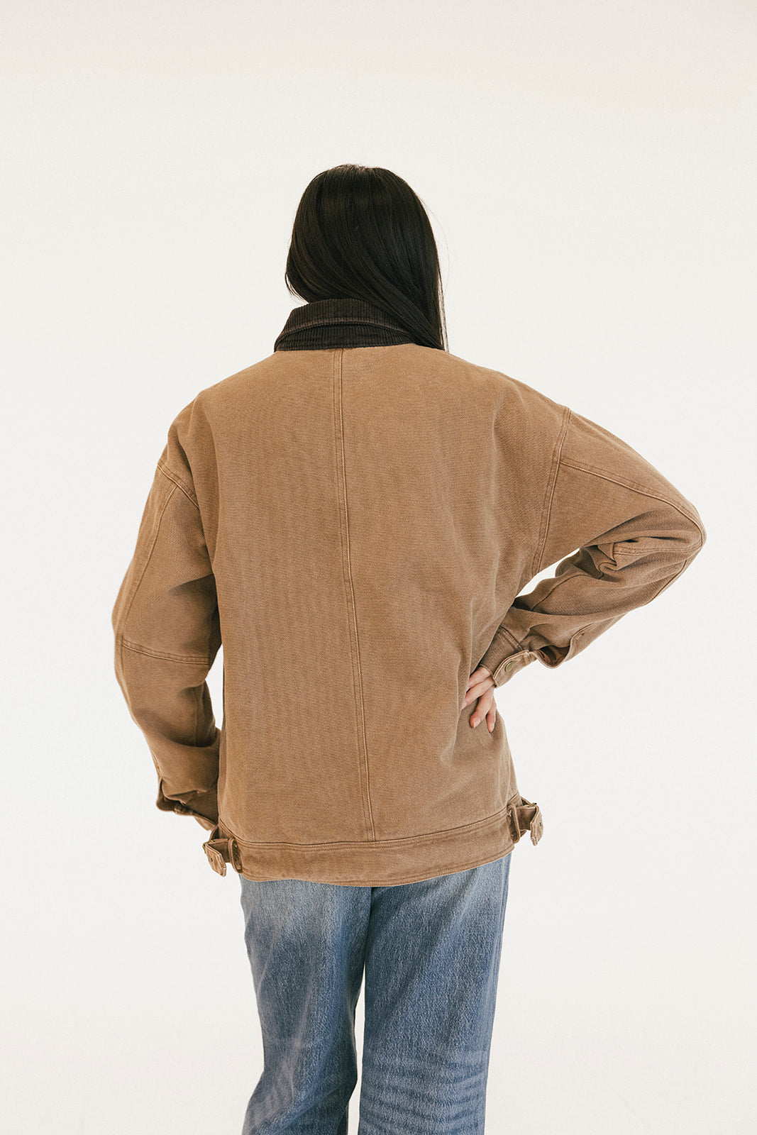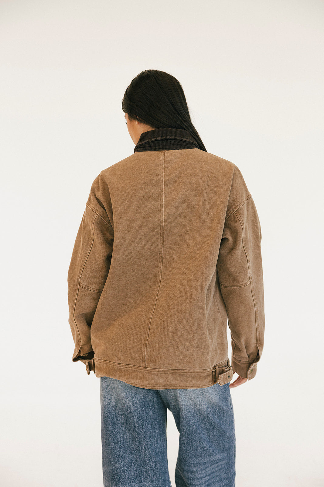 The Elliott Barn Jacket in Brown combines timeless style with everyday comfort. This classic piece showcases a beautifully aged vintage wash that gives it authentic character and charm. The distinctive corduroy collar adds a refined touch, elevating the traditional barn jacket silhouette. Perfect for layering through seasons or wearing as a standalone statement piece, this jacket brings warmth and personality to any wardrobe. Whether you're dressing up or keeping it casual, the Elliott delivers versatile style that works hard and looks great doing it.