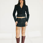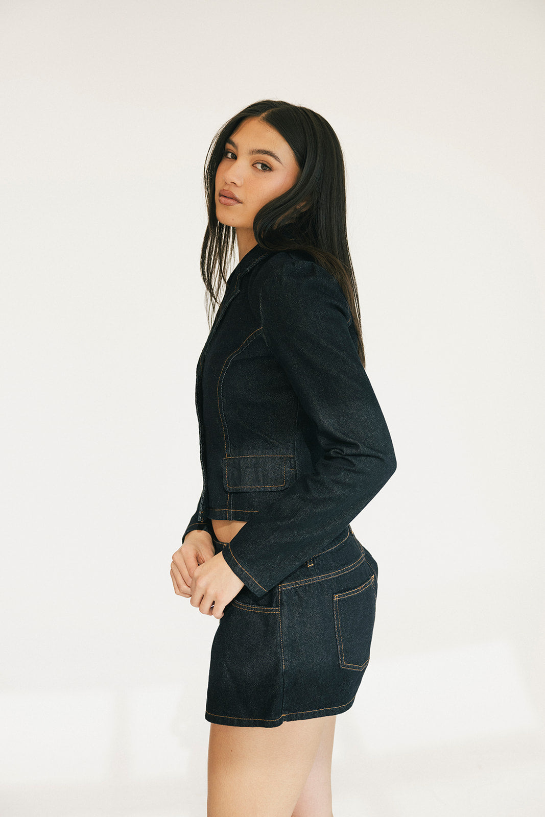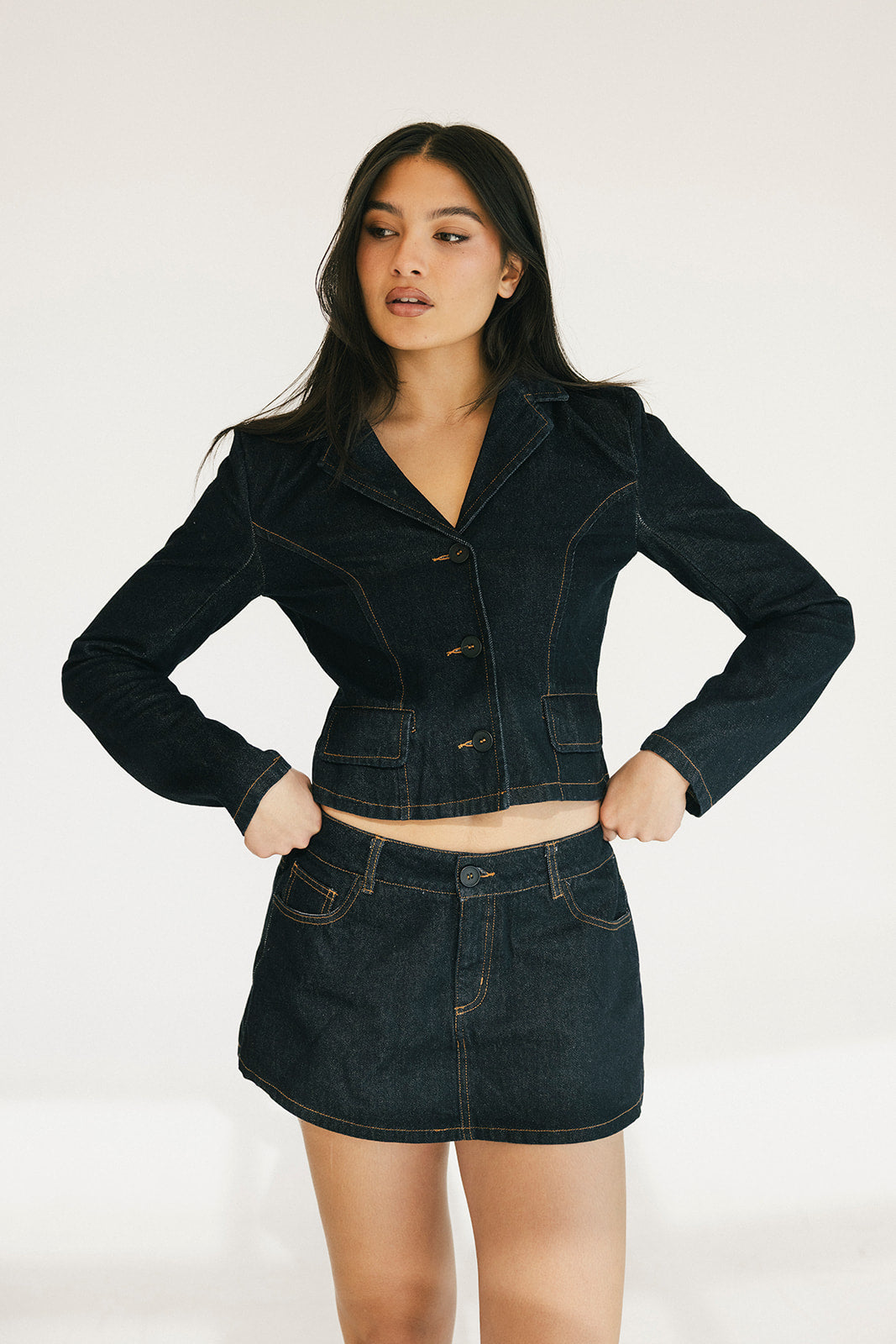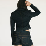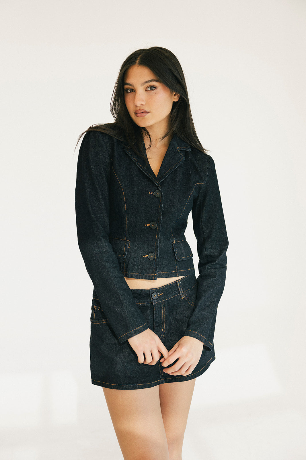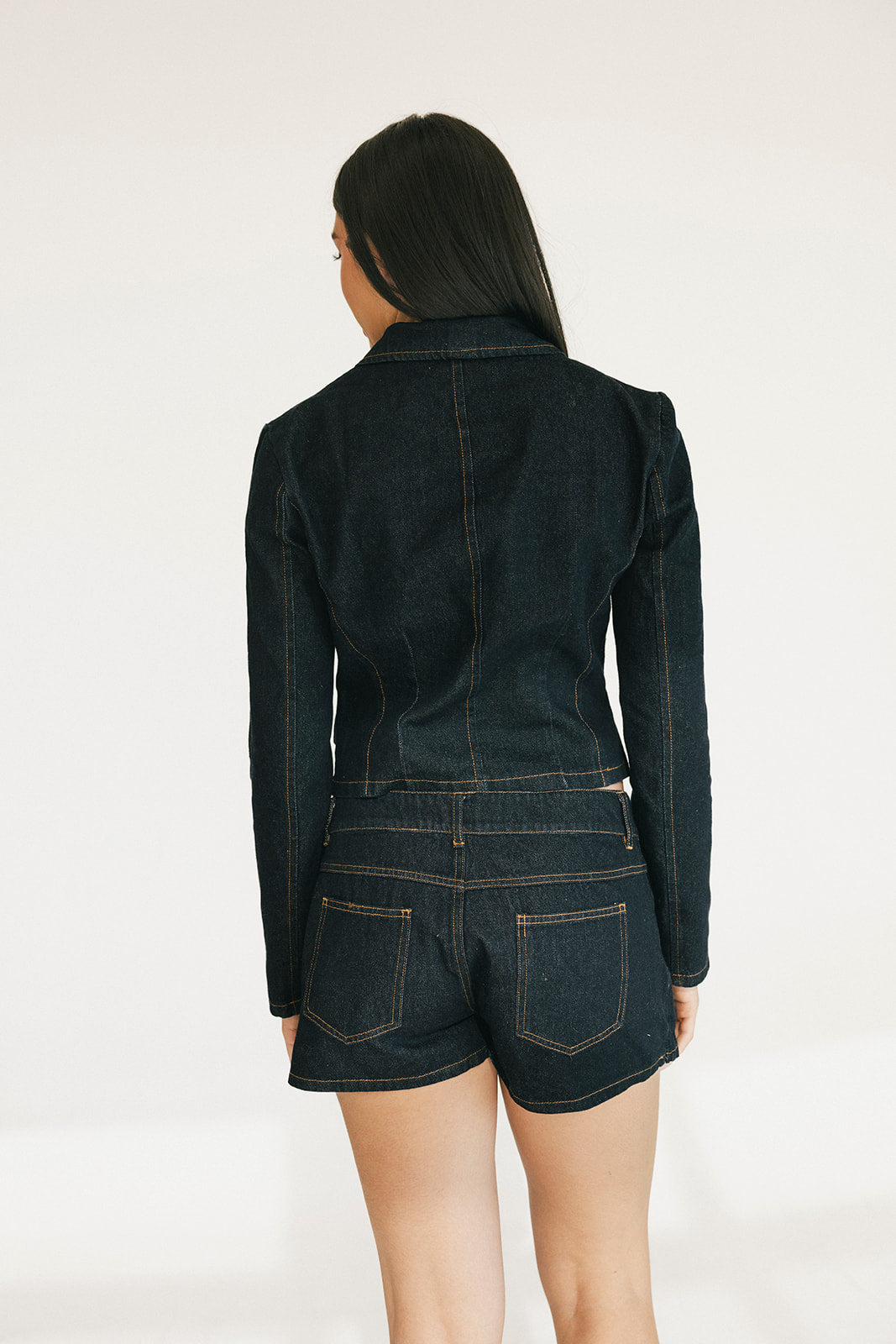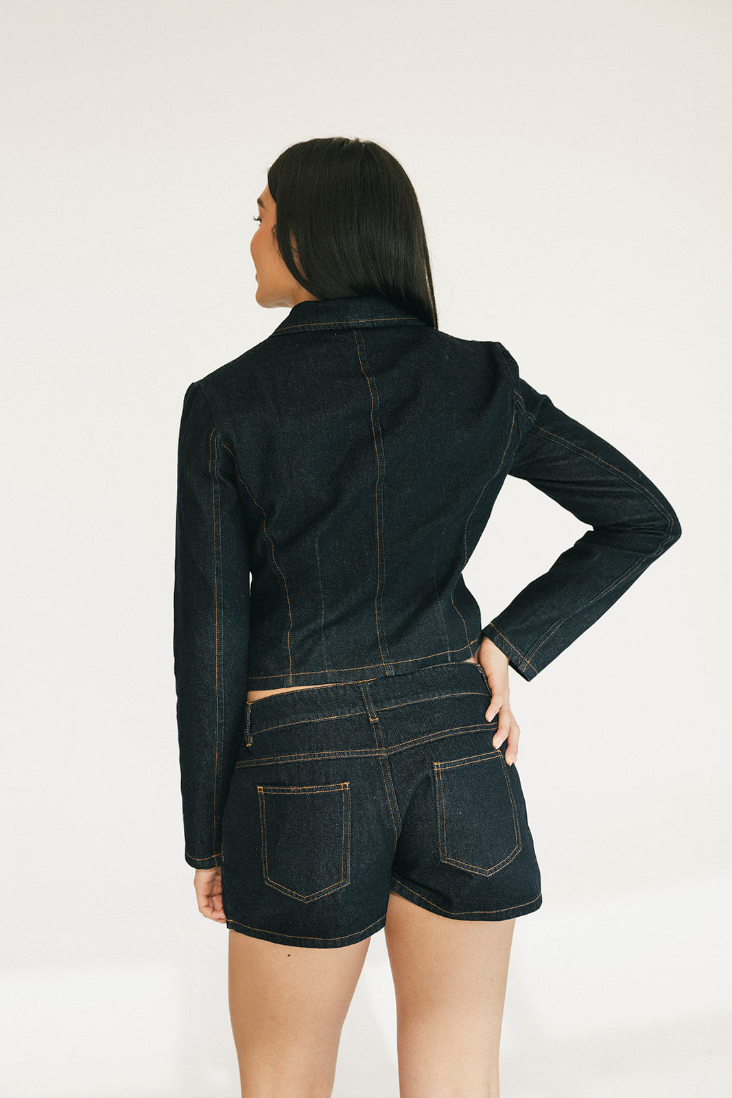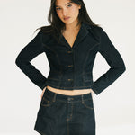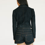 The Emely Denim Jacket in Dark Denim is a timeless wardrobe essential with a sleek, slimming waistline that flatters your silhouette. The distinctive collar detail adds character and sophistication to this versatile piece. Perfect for layering over your favorite tops, this jacket transitions seamlessly from casual weekends to dressed-up occasions. Dark denim pairs beautifully with almost everything in your closet, making it an investment piece you'll reach for again and again.
