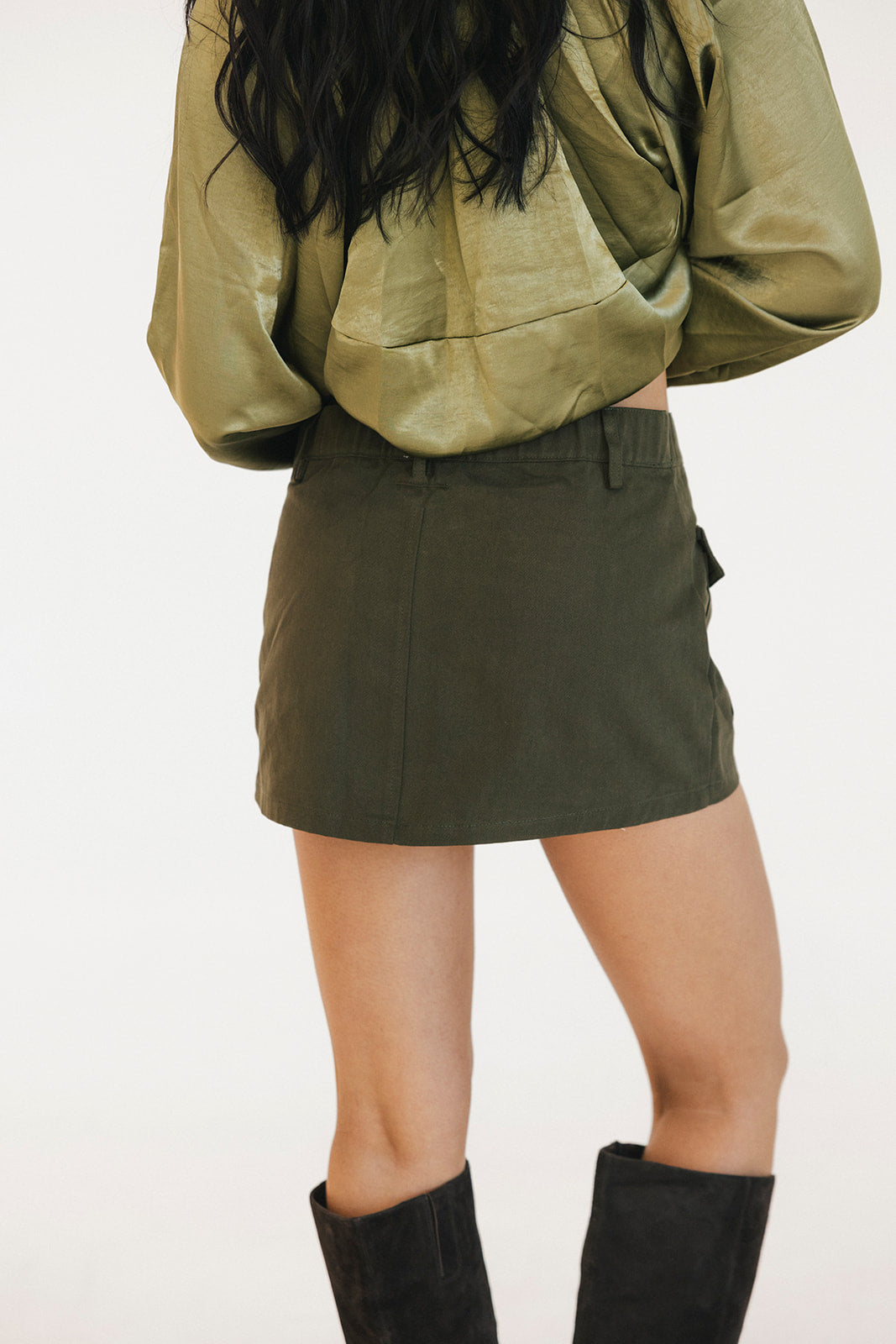Embrace effortless style with the Kyndall Mini Cargo Skirt in Dark Olive. This low-rise design features practical cargo pockets that blend functionality with contemporary fashion. The rich olive tone pairs seamlessly with your everyday wardrobe, while the mini length offers a flattering silhouette. Perfect for casual outings or weekend adventures, this skirt delivers comfort without compromising on trend-forward appeal. Make it your go-to piece for versatile, confident dressing.